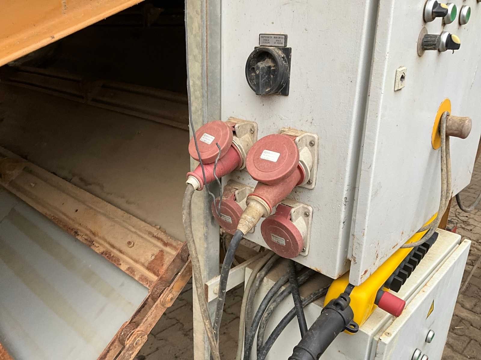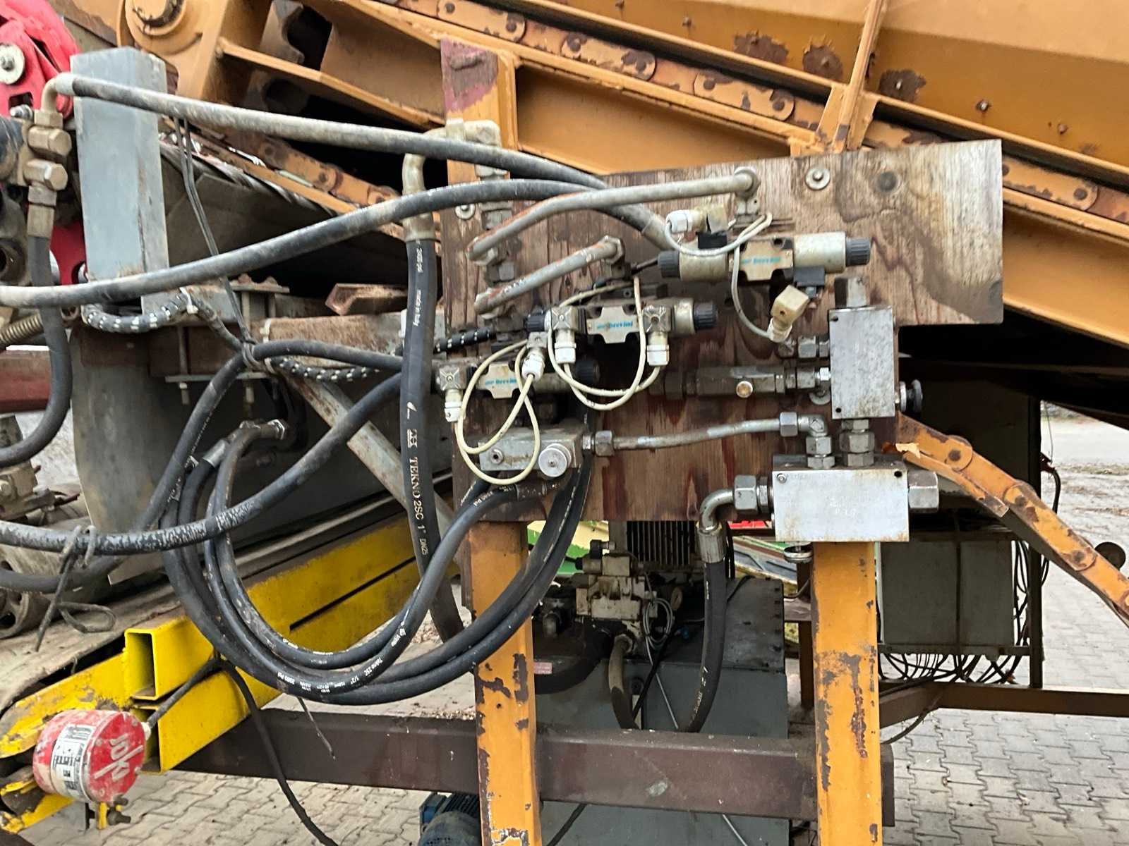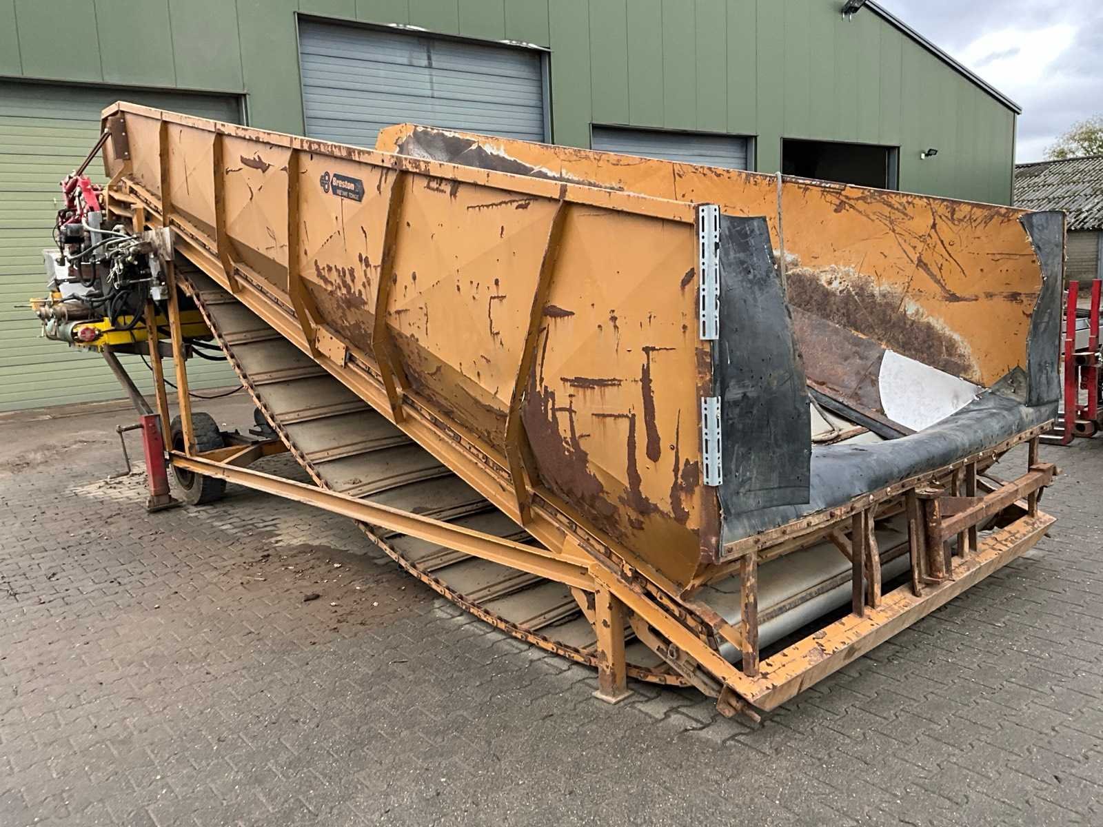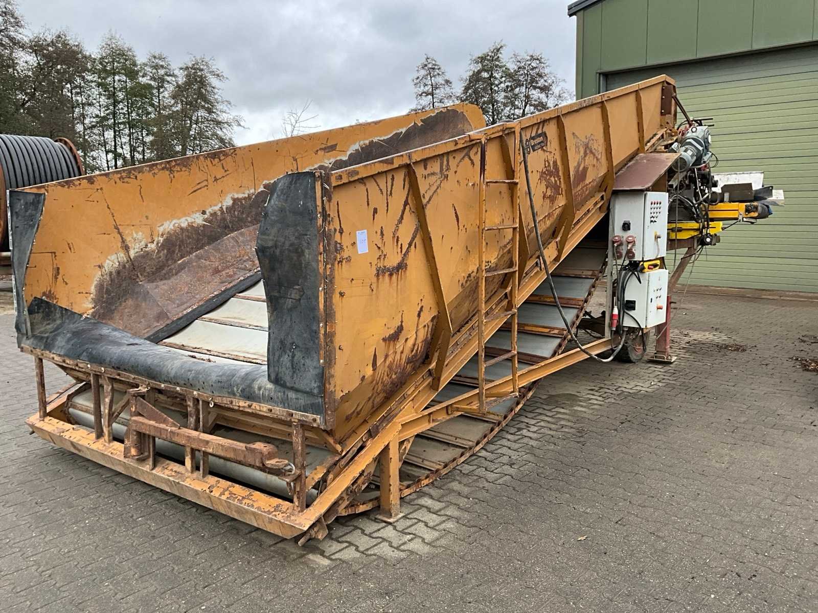 Stortbak 2700mm breed, 35mm sleepoog, 400V hydrauliekpomp, multisep deels gedemonteerd, 2x afvoerband Merk: Breston Band afm. b: 2550mm Totale afmeting L: 7750mm Totale afmeting Breedte: 3850mm Totale afmeting Hoogte: 3200mm