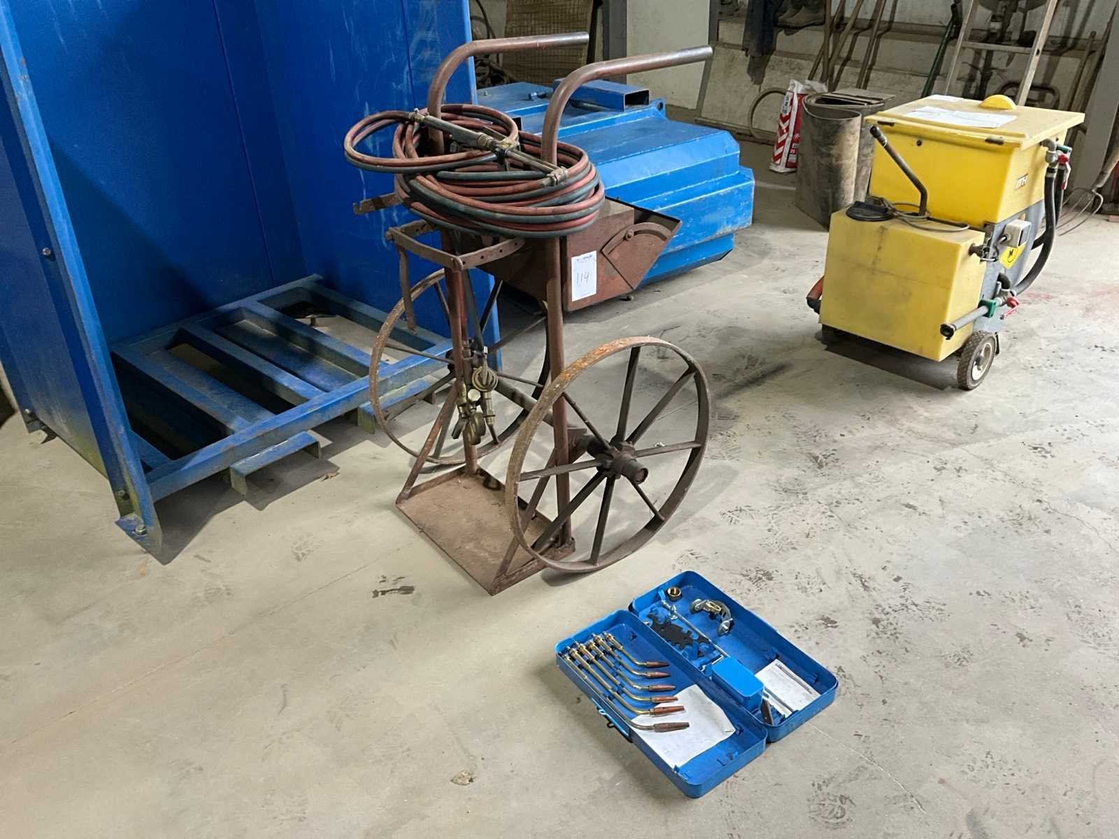 Branderkop met slangen, flessenkar, doos toebehoren Afmeting l: 800mm Afmeting b: 850mm Afmeting h: 1220mm