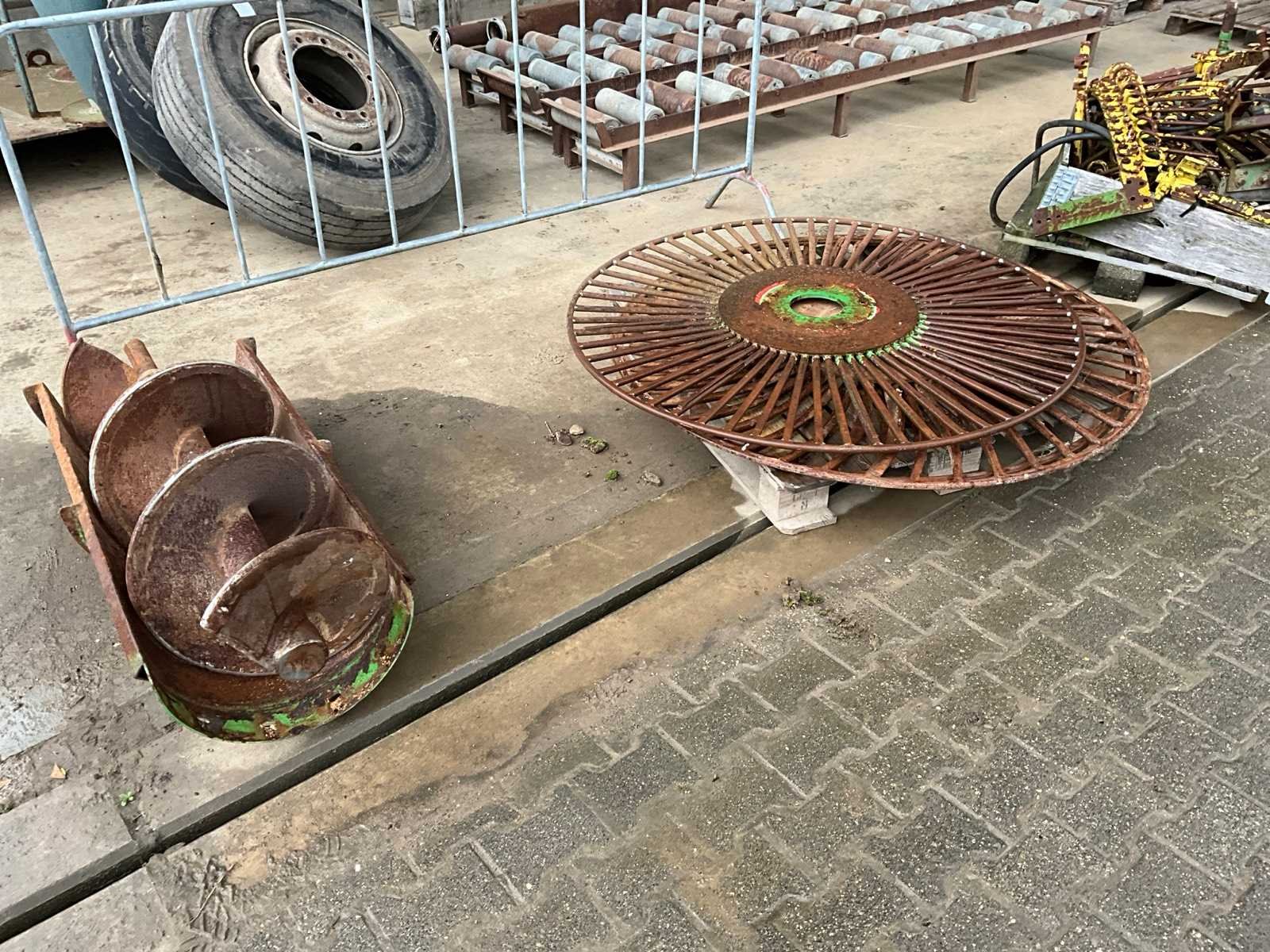 1400mm schijf 2x gebogen spijlen en 1x rechter spijlen, vijzel 1150mm, 1800mm schijf met zijkant, hydrauliek motor en diverse onderdelen Merk: Riecam
