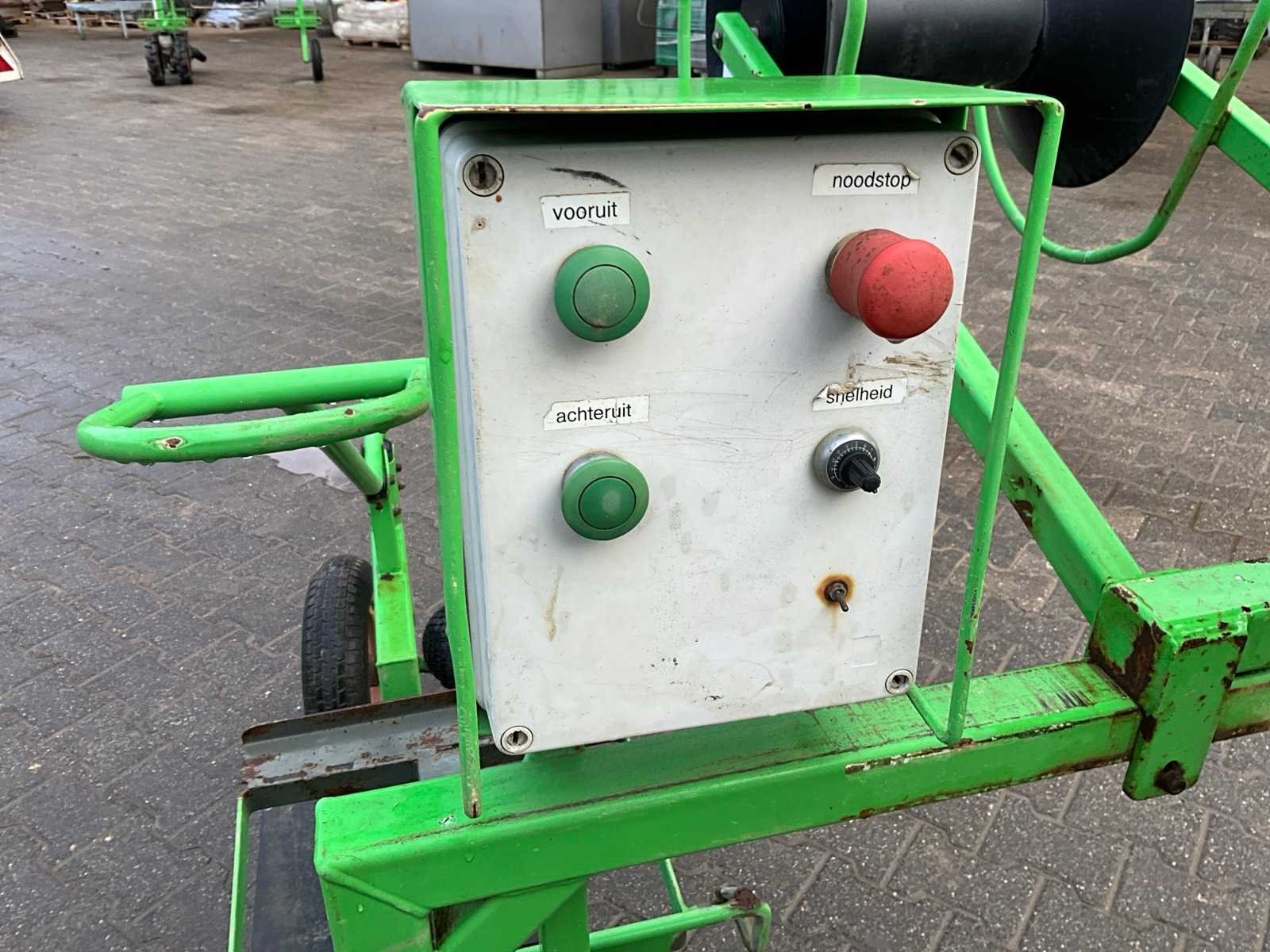 Zelf rijdend, snelheid regelbaar, kist houder aan 2 zijdes, hoogte verstelbaar Merk: Aldezee Type: Zwaluw 1 Bouwjaar: 2003 Serienummer: 03010 Eigen gewicht: 170kg Totale afmeting L: 3350mm Totale afmeting Breedte: 1900mm Totale afmeting Hoogte: 1850mm