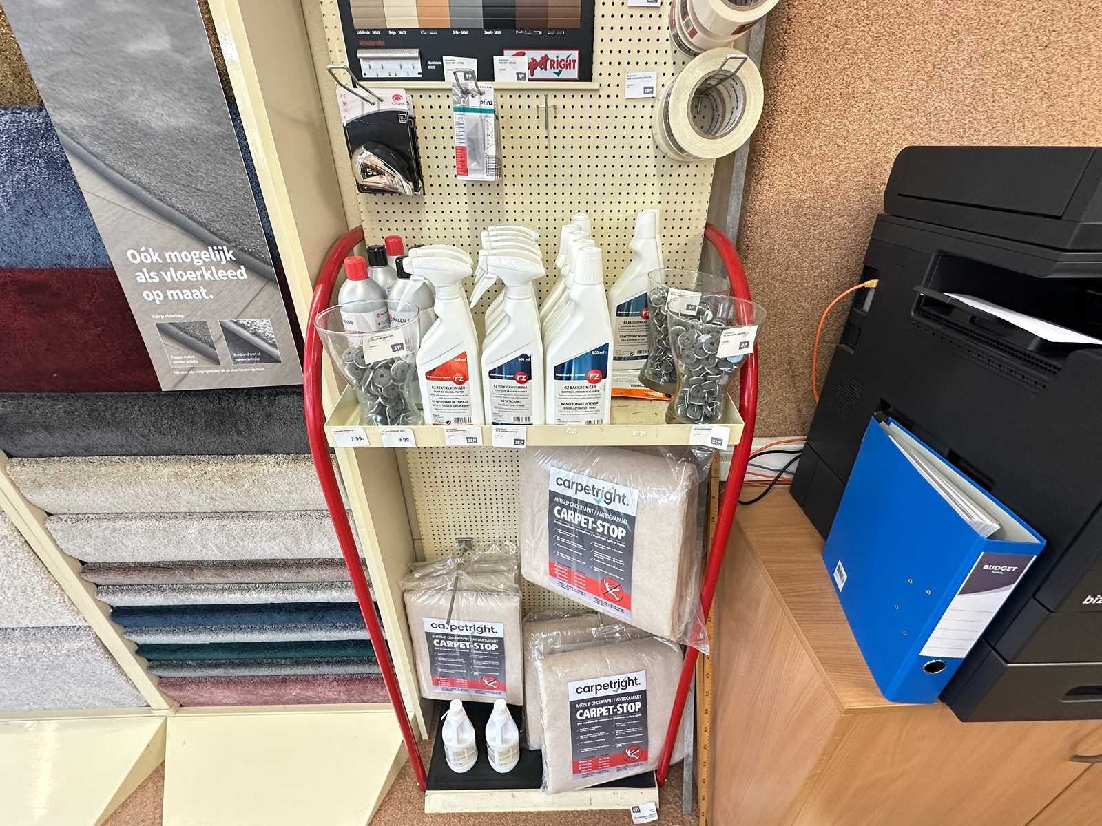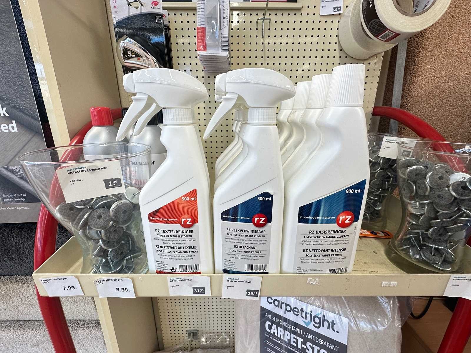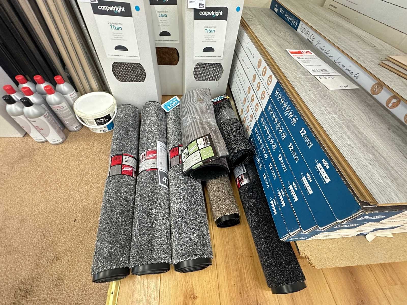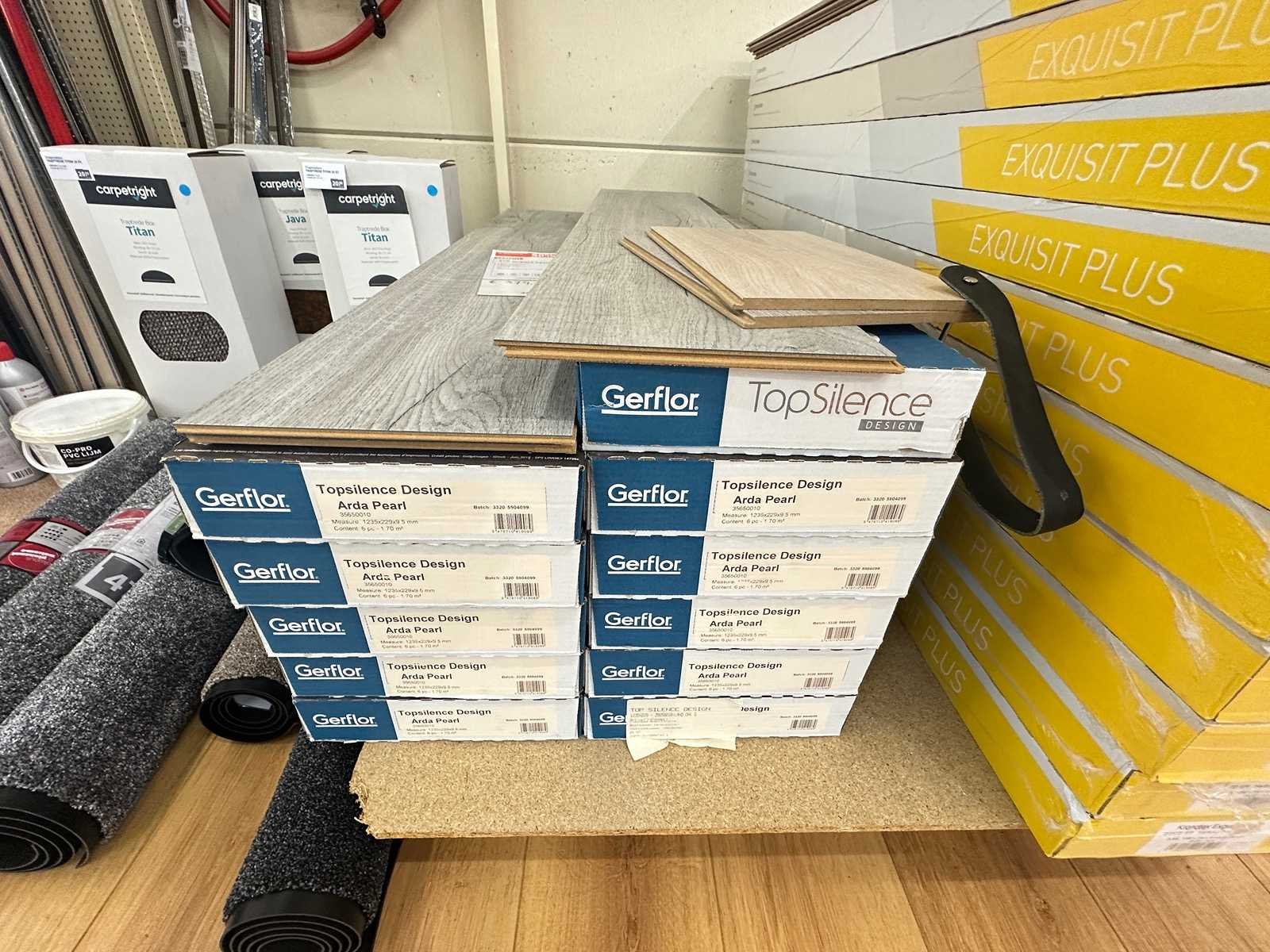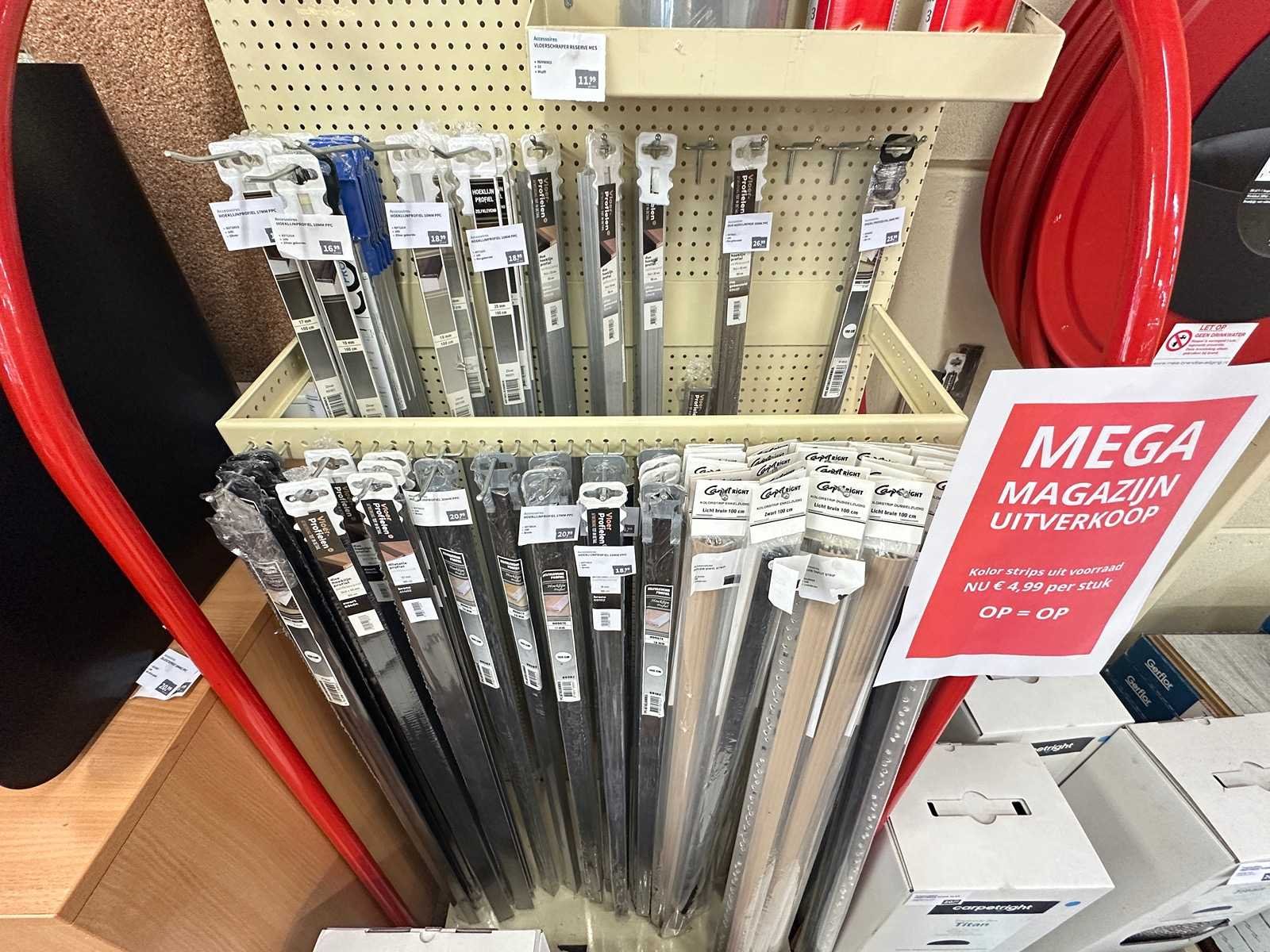 Deze partij bestaat uit onderhoudsproducten, ondervloeren, meubelvilten, bekleding voor traptrede, laminaat en plinten.