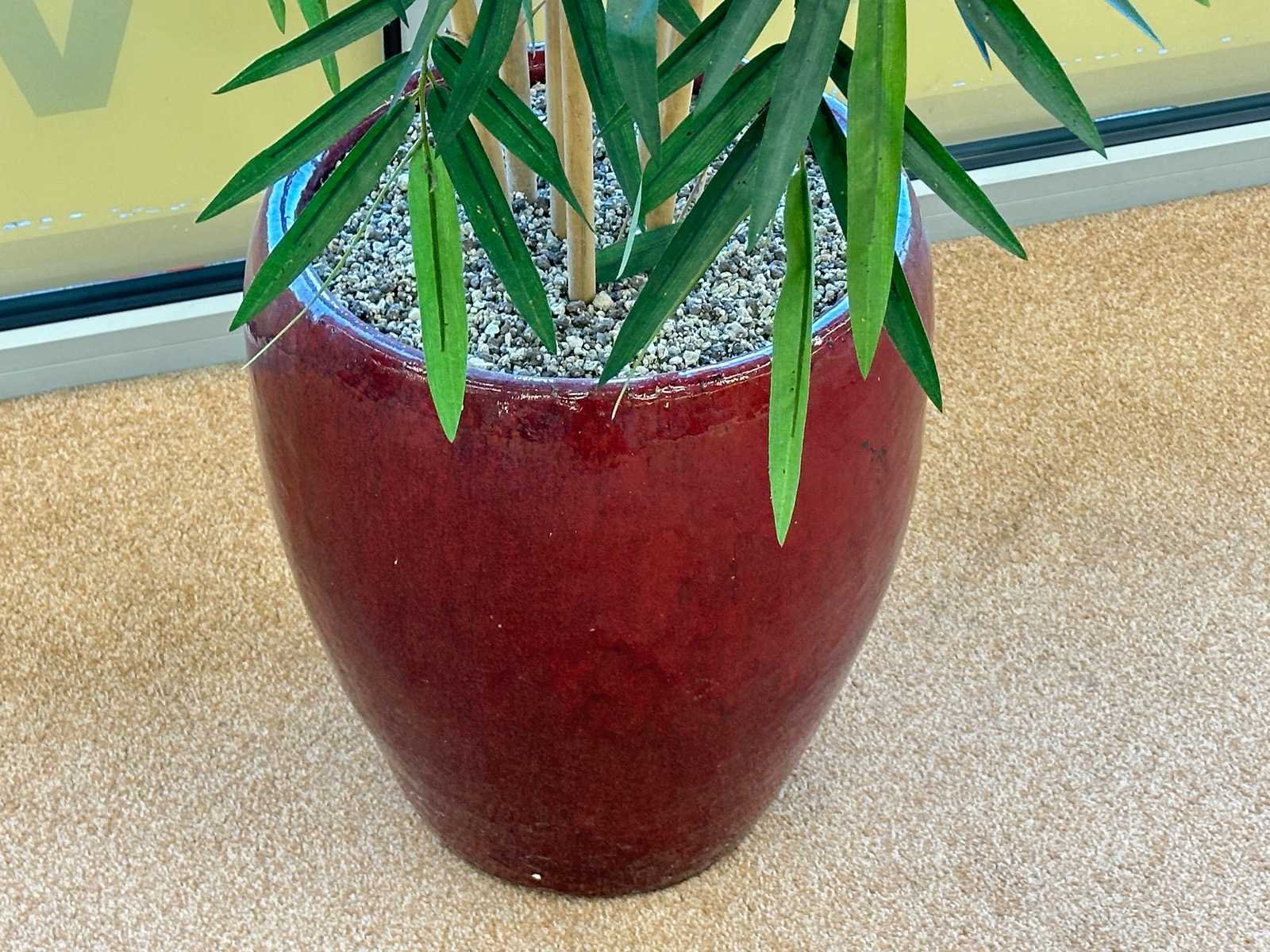 Deze kunstplanten hebben een hoogte van circa 180 cm en de rode stenen potten hebben een diameter van 35 cm. Hoogte: 180cm