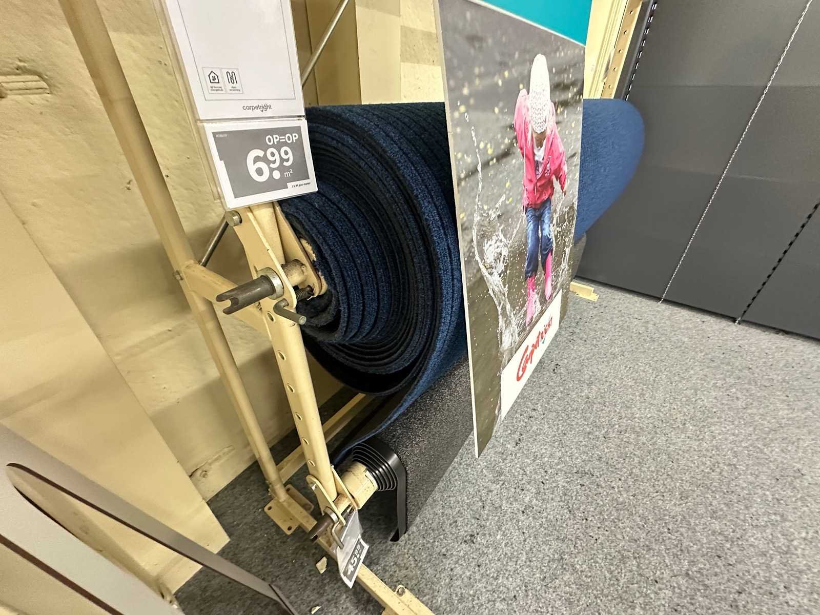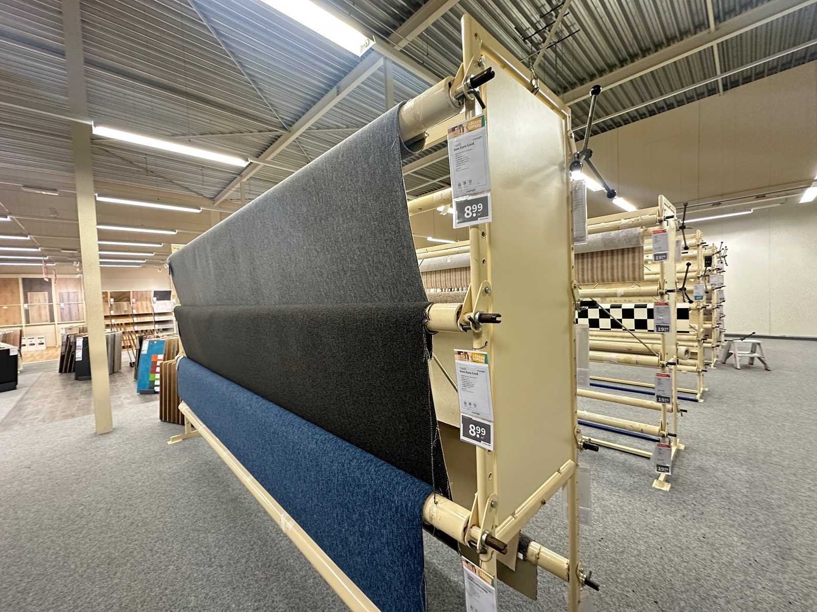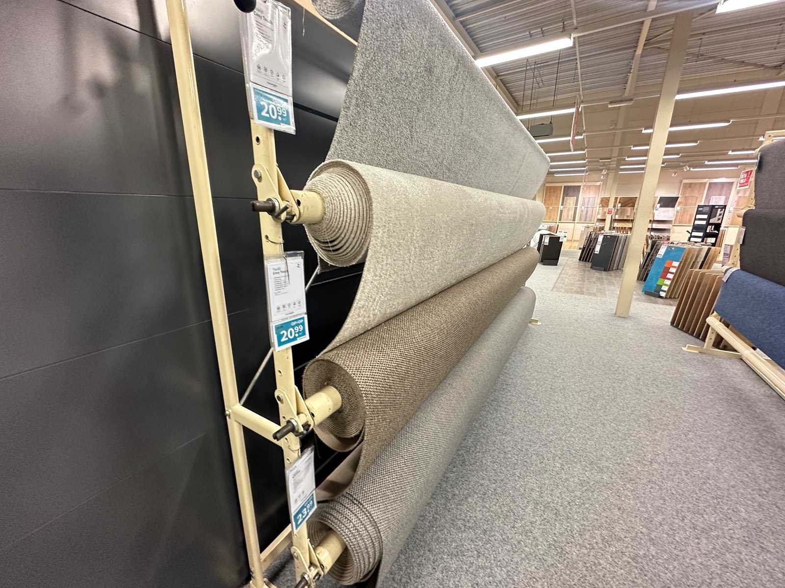 Deze partij bestaat uit diverse soorten vloerbedekking op 9 rekken. Verschillende afmetingen en kleuren. Exclusief rekken.