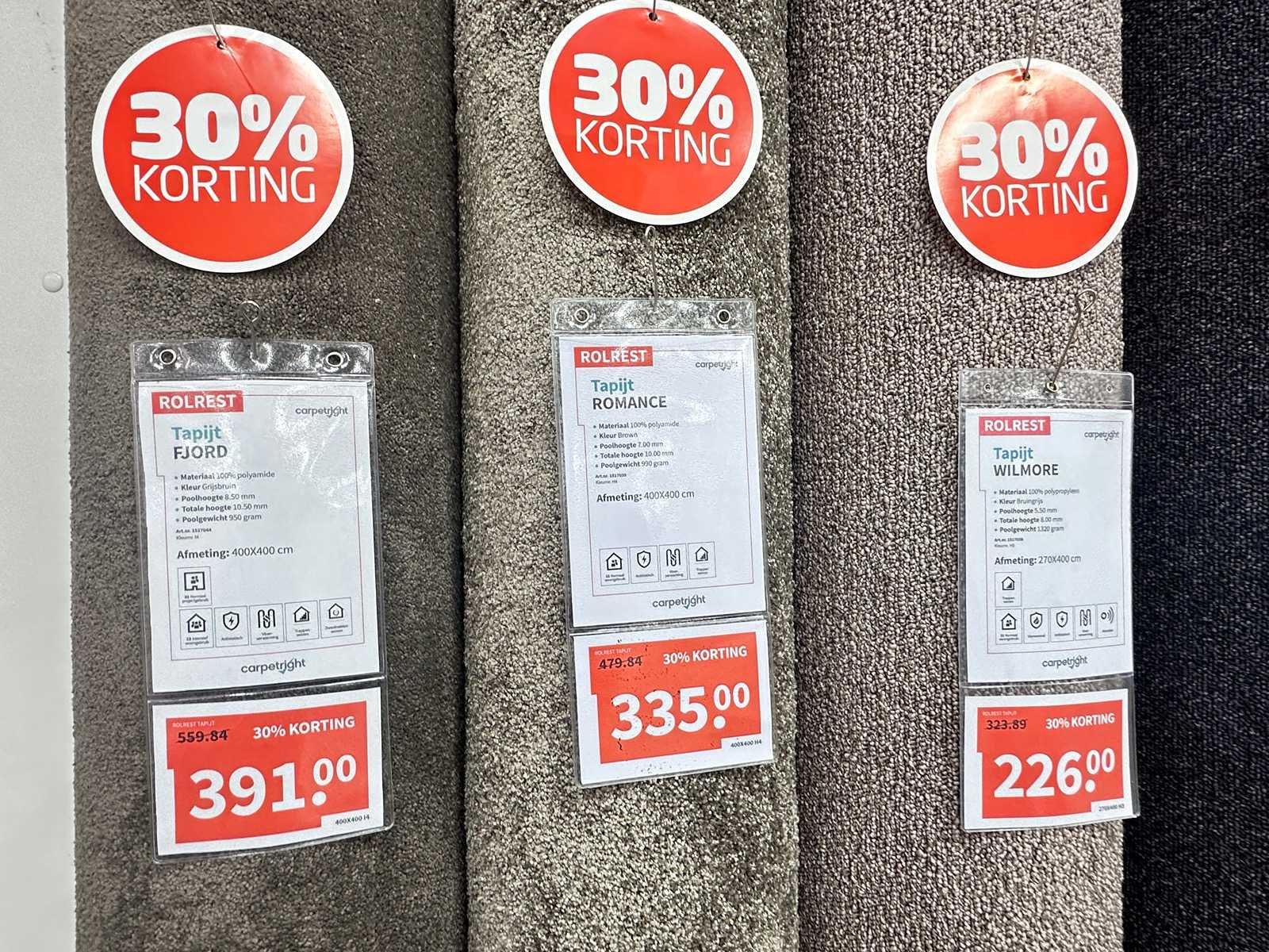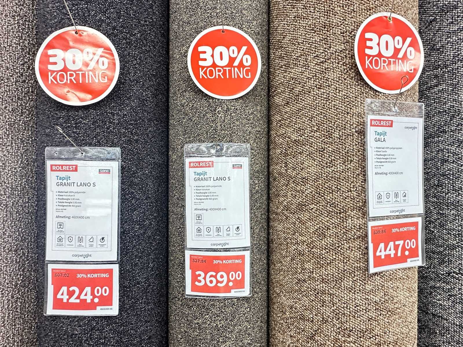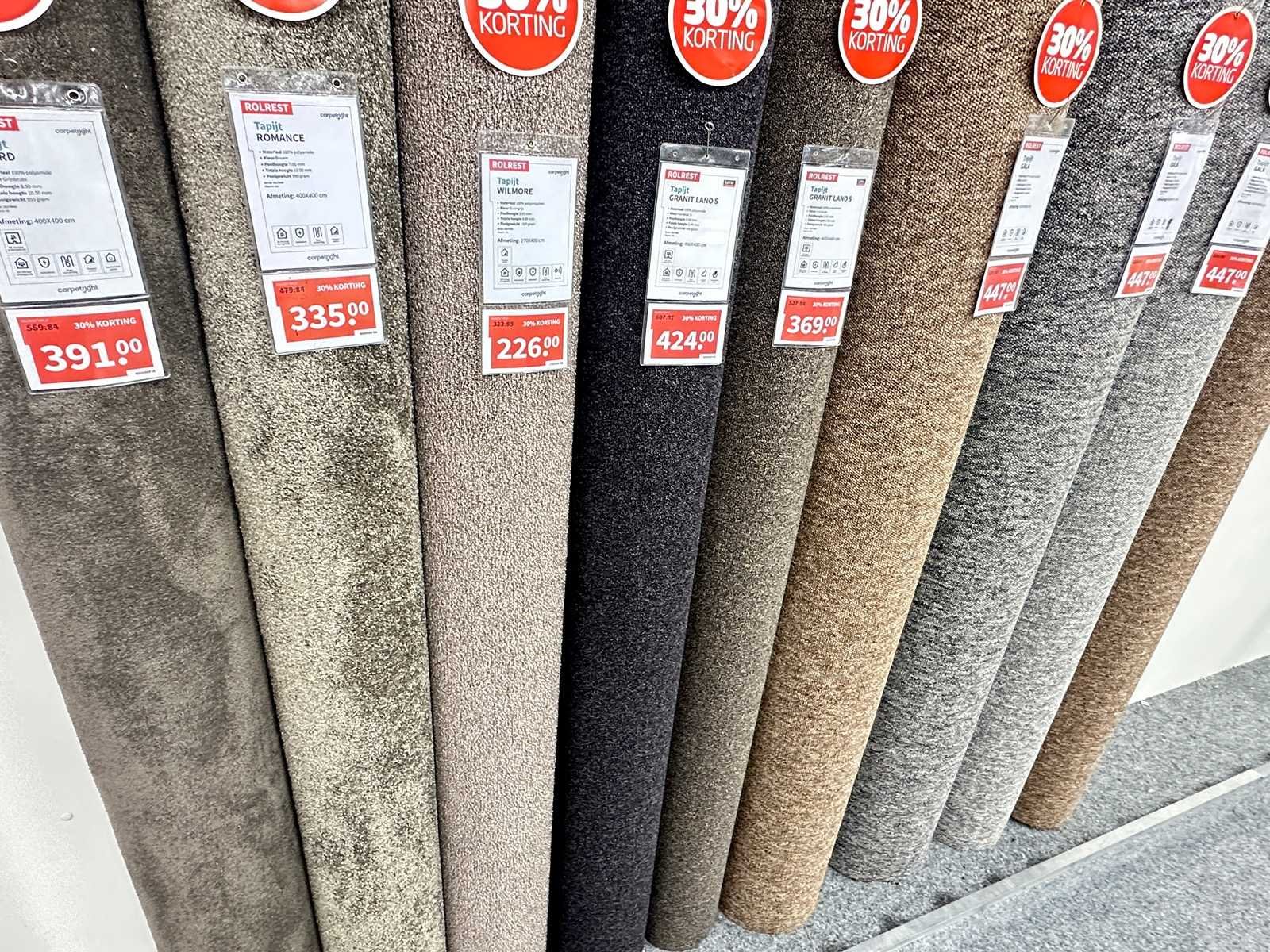Diverse kleuren en afmetingen. Retailwaarde ongeveer € 3.000,-