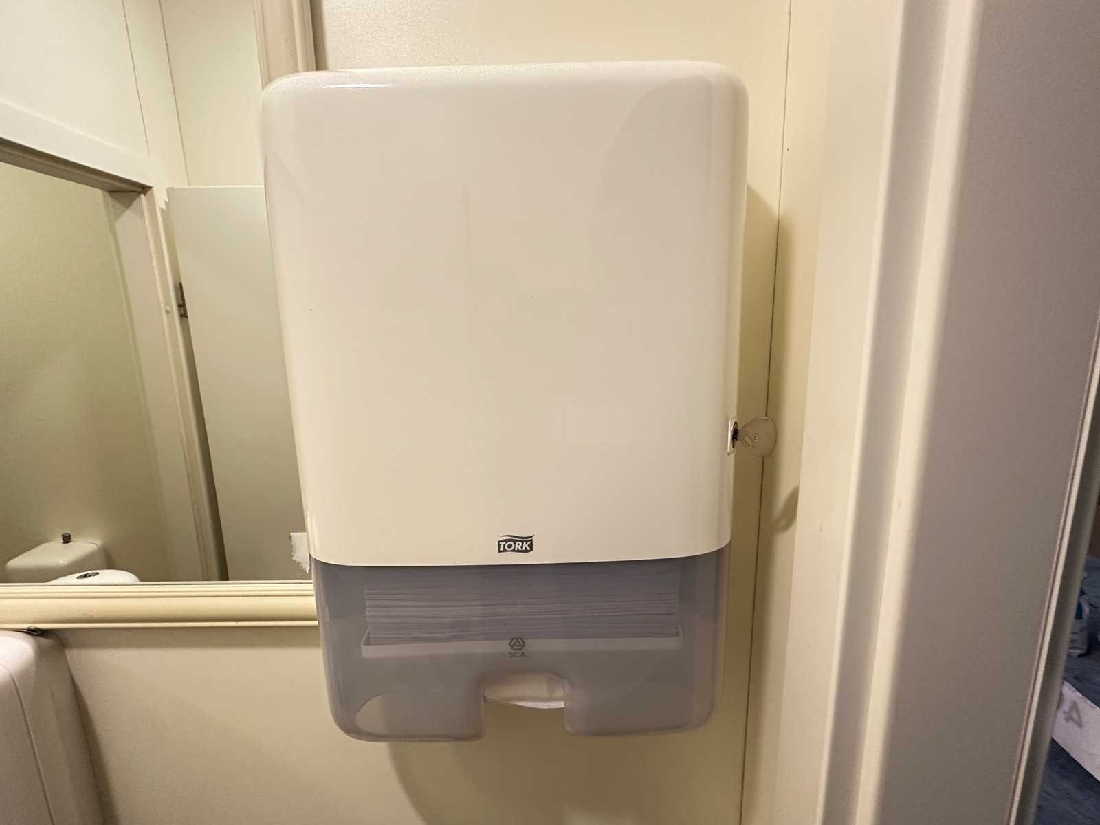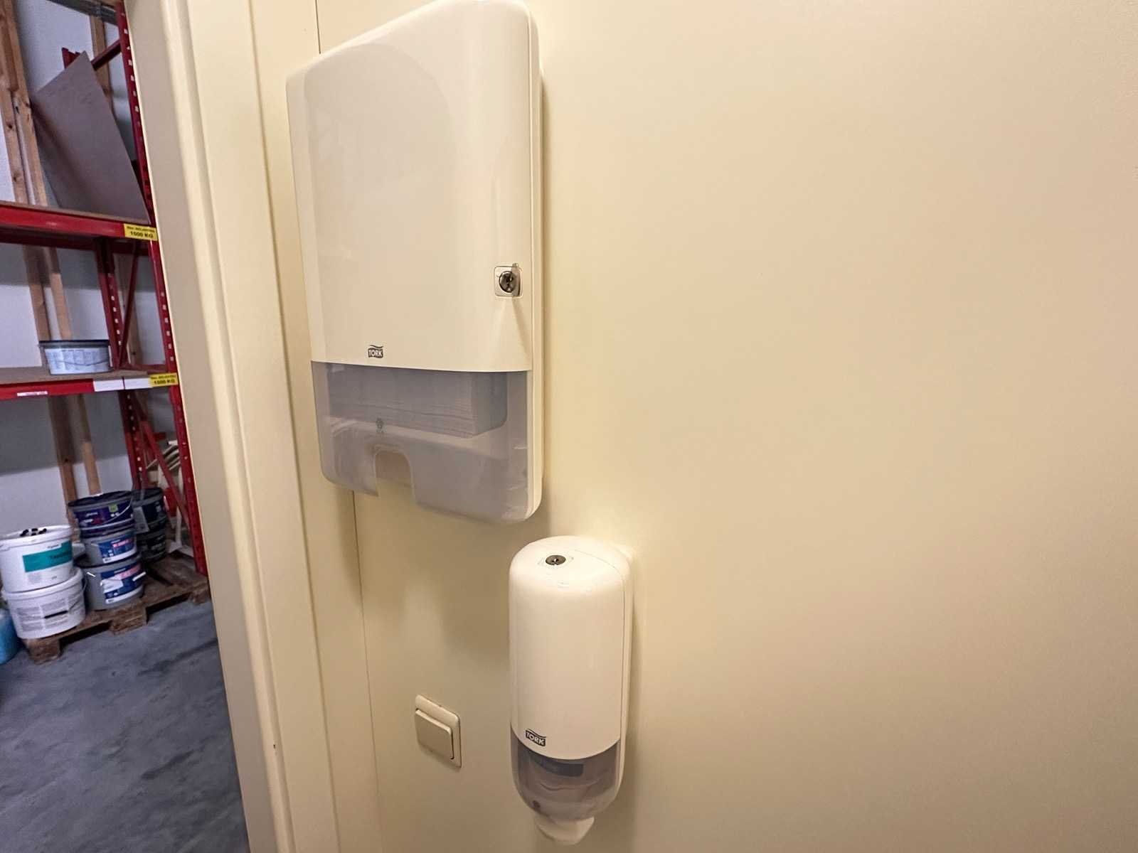 Deze set bestaat uit 2x handdoekdispenser, 2x papierdispenser en 2x zeepdispenser. Sleutels aanwezig. Merk: Tork