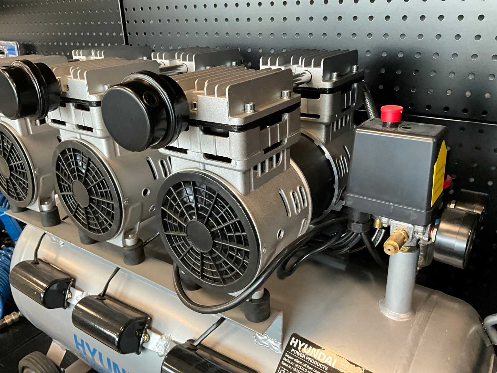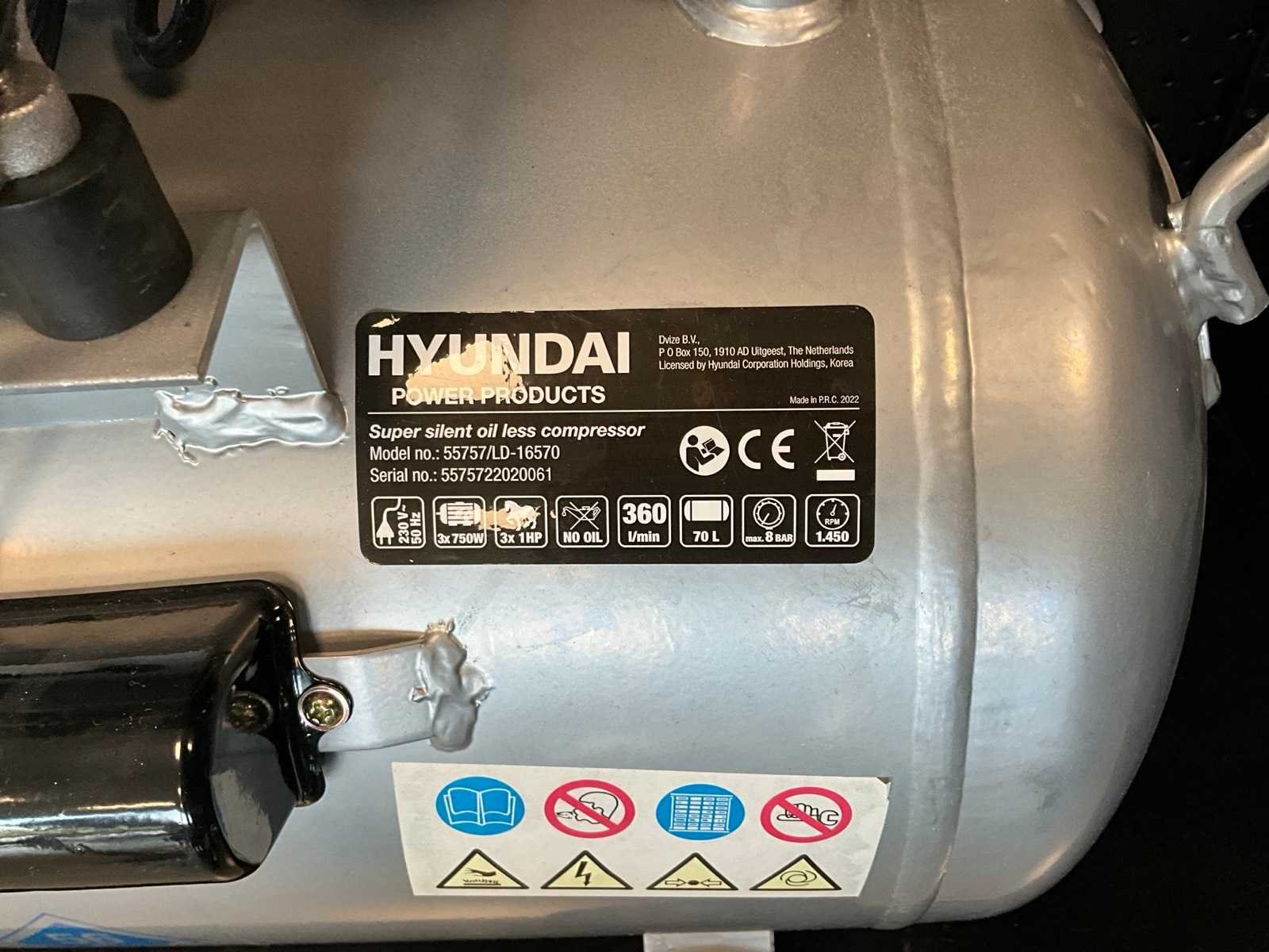 3x 750W; 3x 1pk; Merk: Hyundai Type: 55757 Bouwjaar: 2022 Serienummer: 5575722020061 Mobiel: true Capaciteit.: 8bar Luchtstroom: 360l/min Buffertank inhoud: 70l Aansluiting: 230V Totale afmeting L: 800mm Totale afmeting Breedte: 400mm Totale afmeting Hoogte: 600mm
