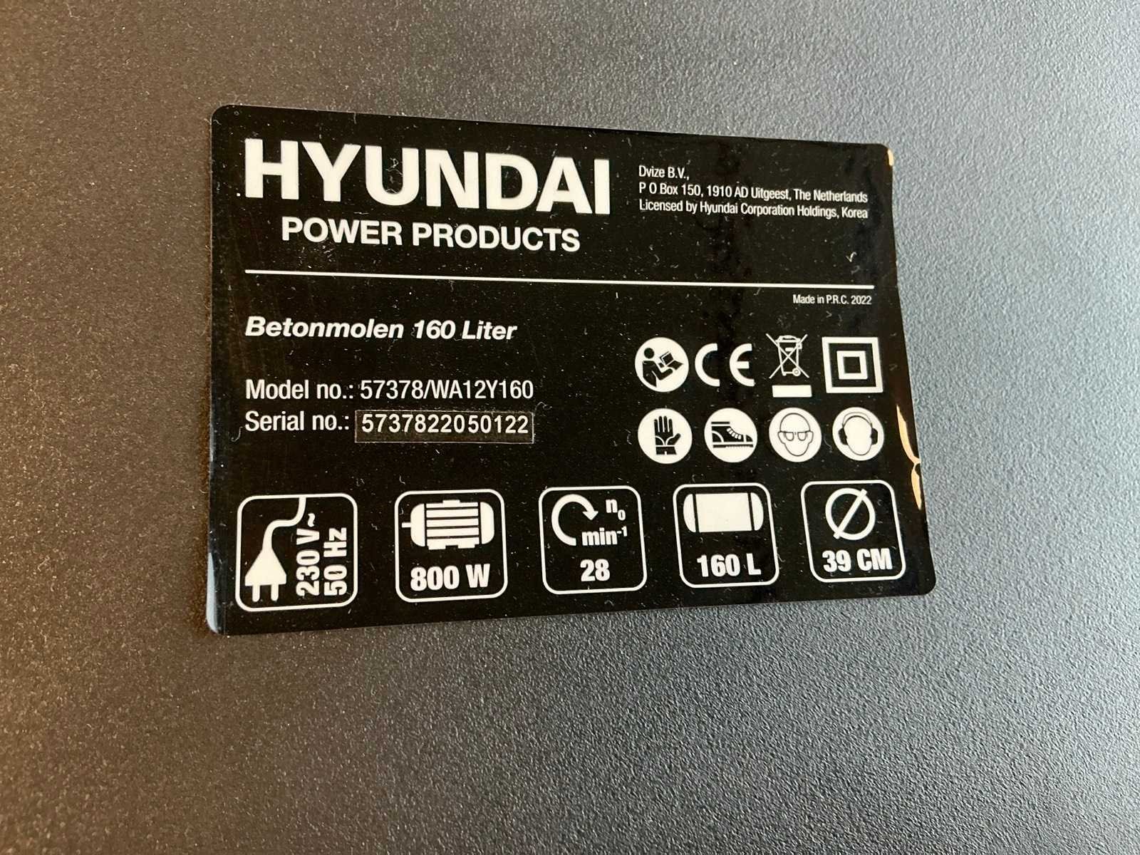 Trommel opening diameter 39cm, verrijdbaar dmv 2 kunststof wielen Merk: Hyundai Model: WA12Y160 Spanning: 230 Vermogen (kW): 0.8kW Toerental: 28rpm