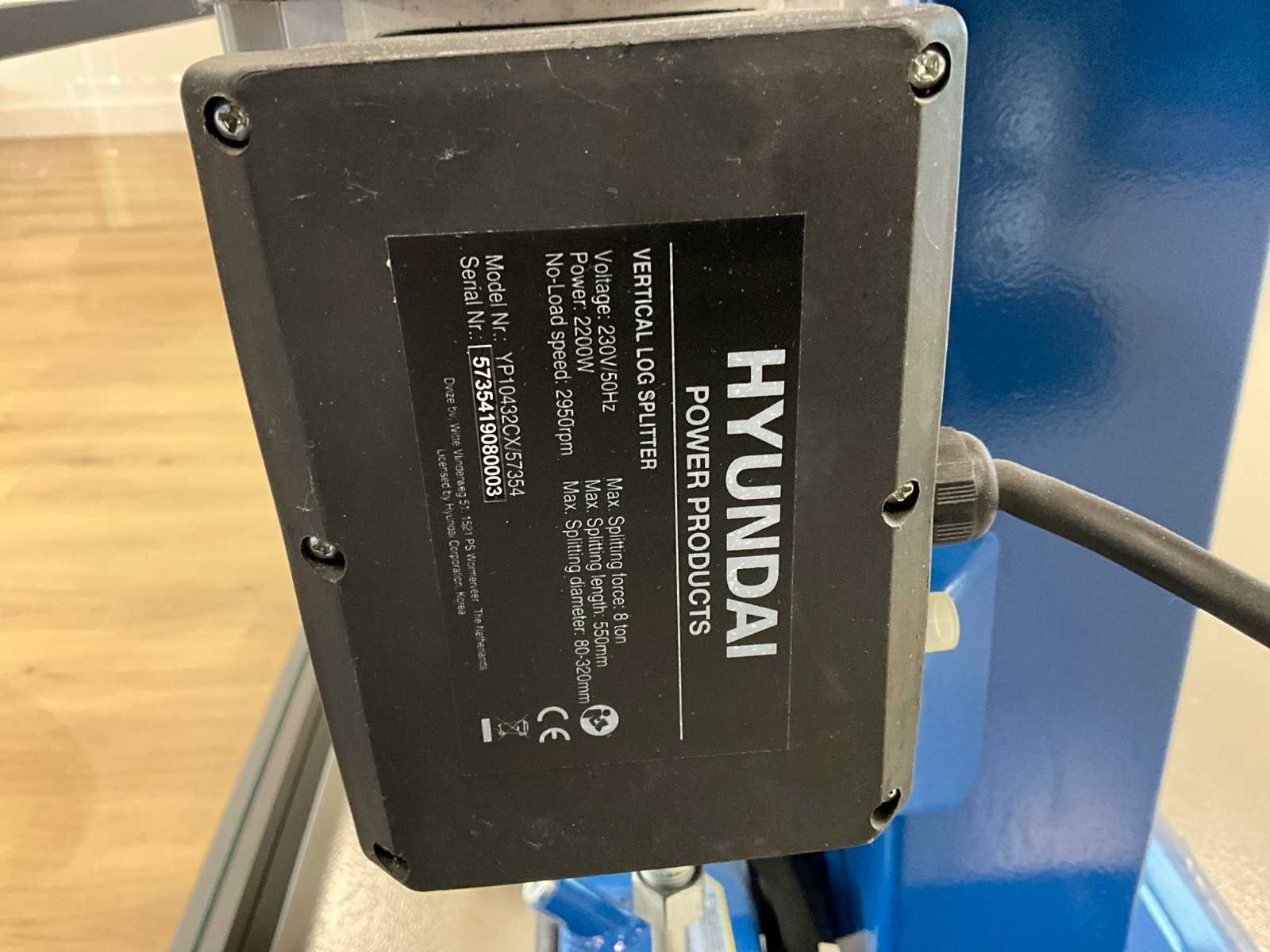 2200W; max splitting force 8T; splitting length 550mm; max splitting diameter 80-320mm Merk: Hyundai Type: 57354 Mobiel: true
