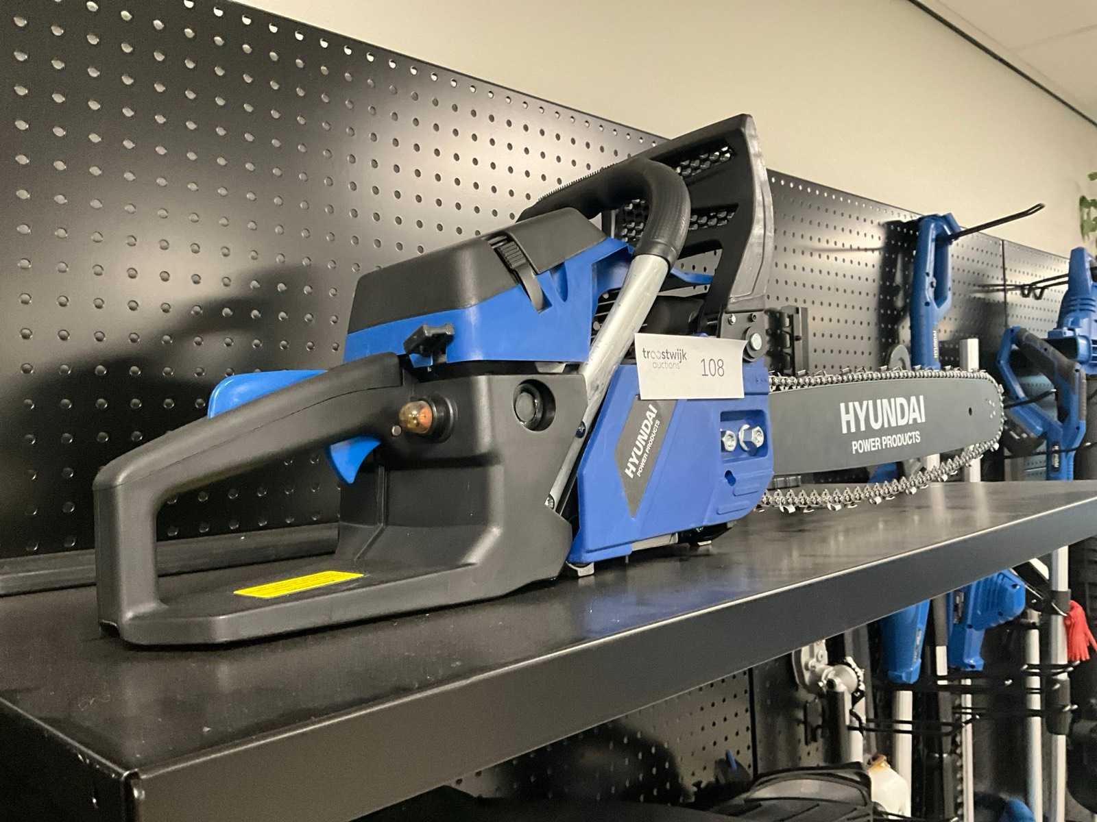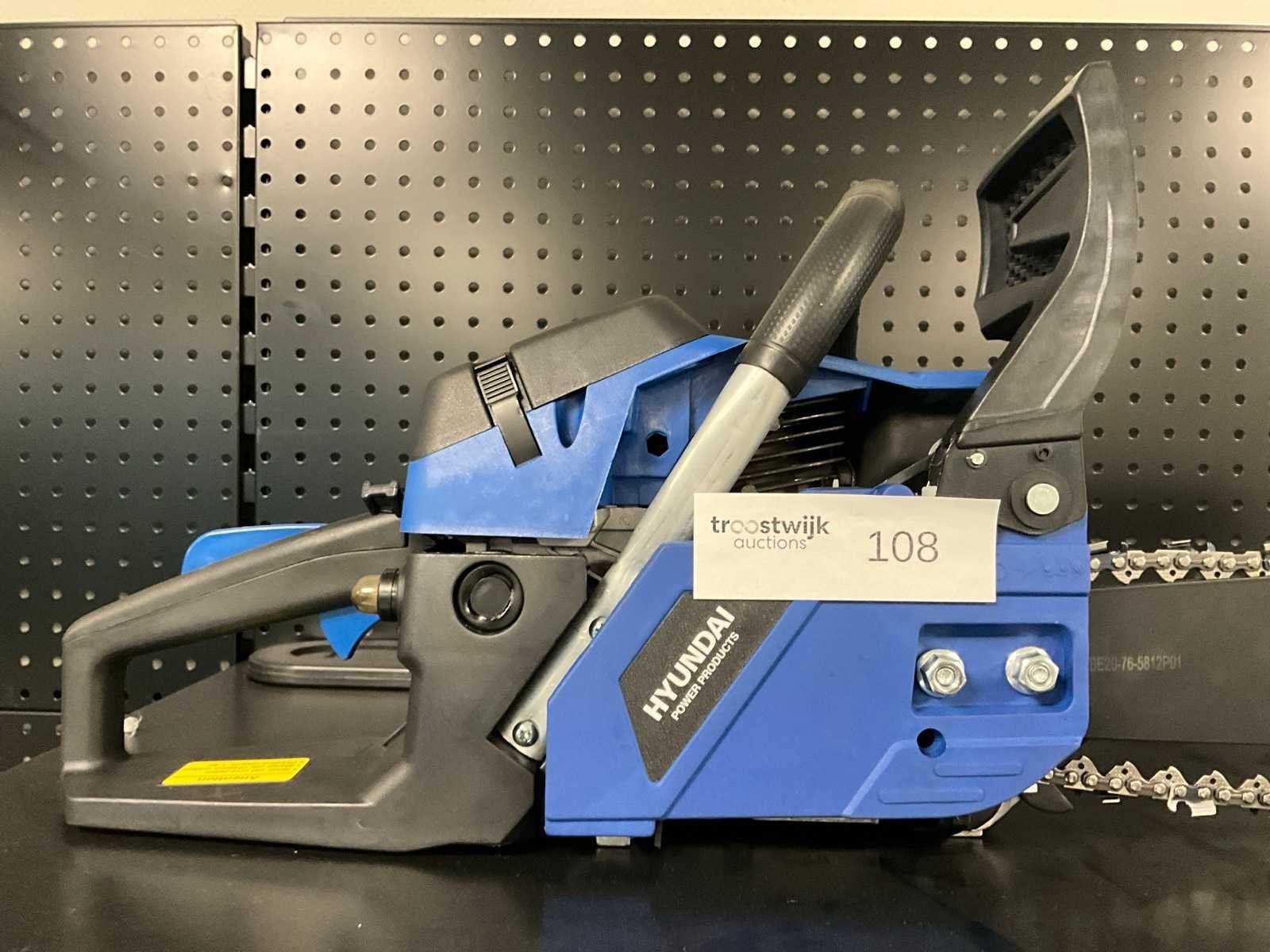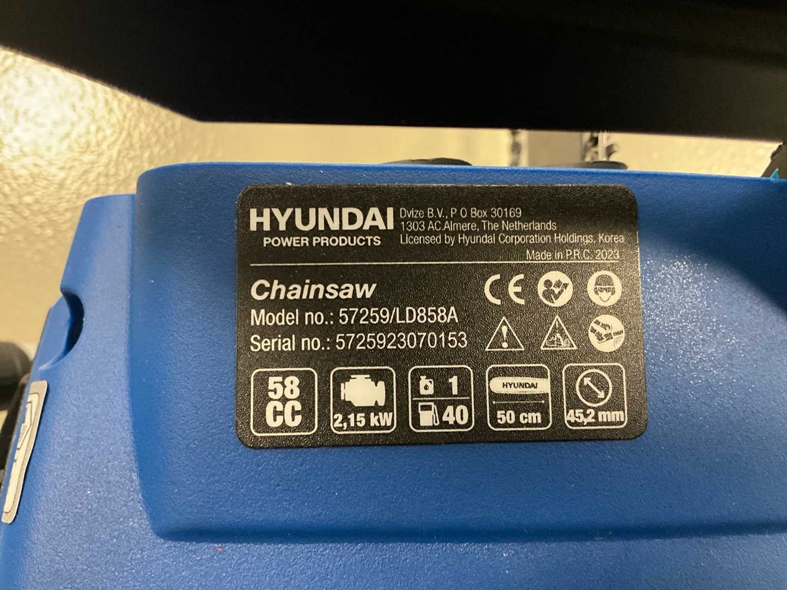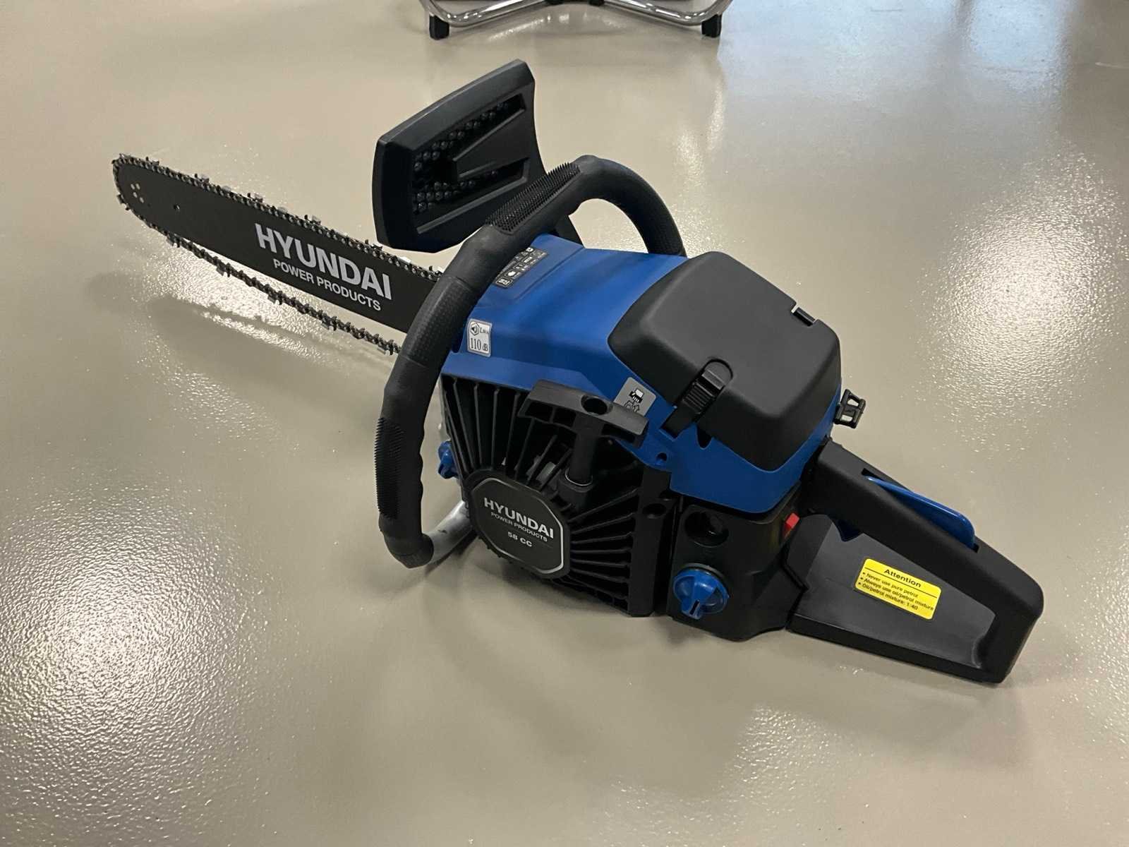 2-takt motor 58cc; inclusief 4x Bio Chain kettingzaagolie 1L Merk: Hyundai Type: 57259 Bouwjaar: 2023 Zaagblad afm. l: 500mm Brandstof: Benzine Motorvermogen (kW): 2.15kW Eigen gewicht: 7.5kg