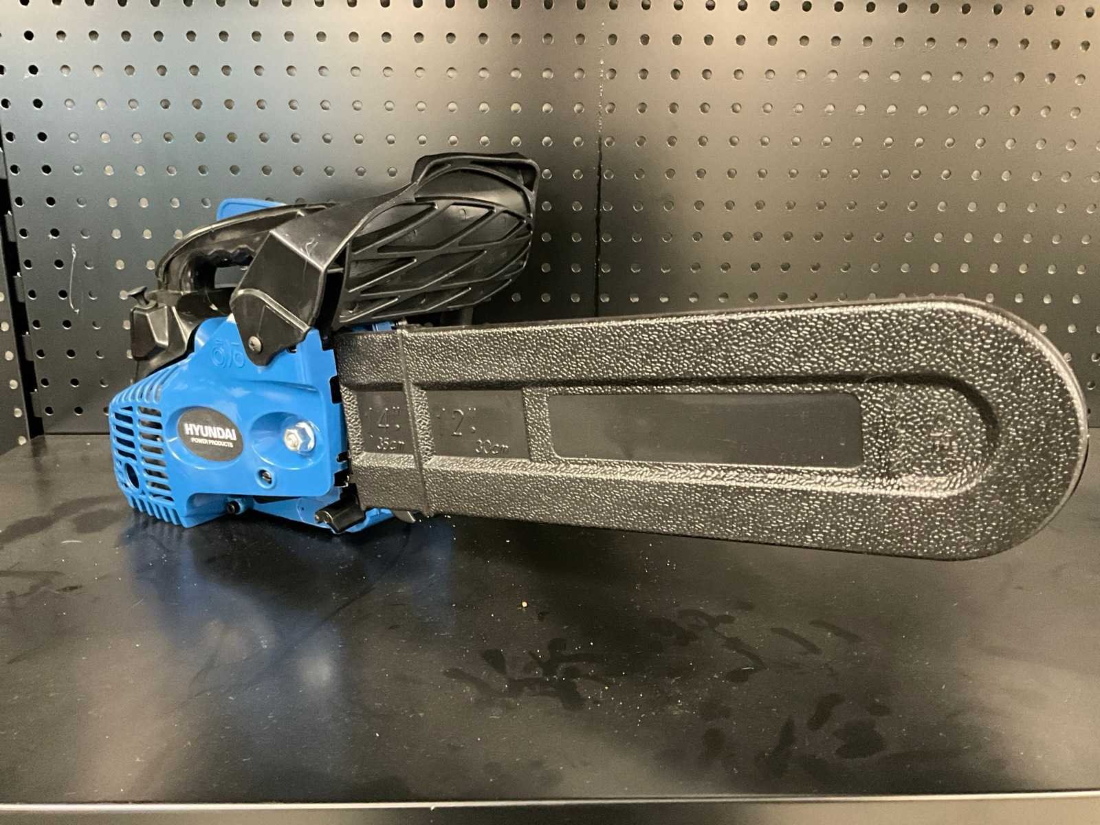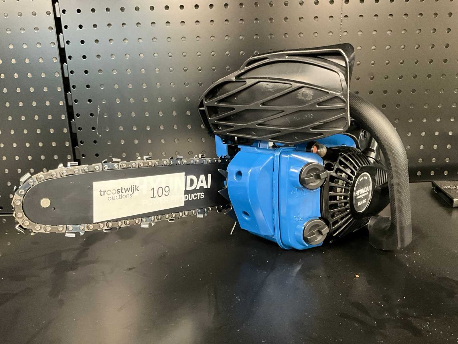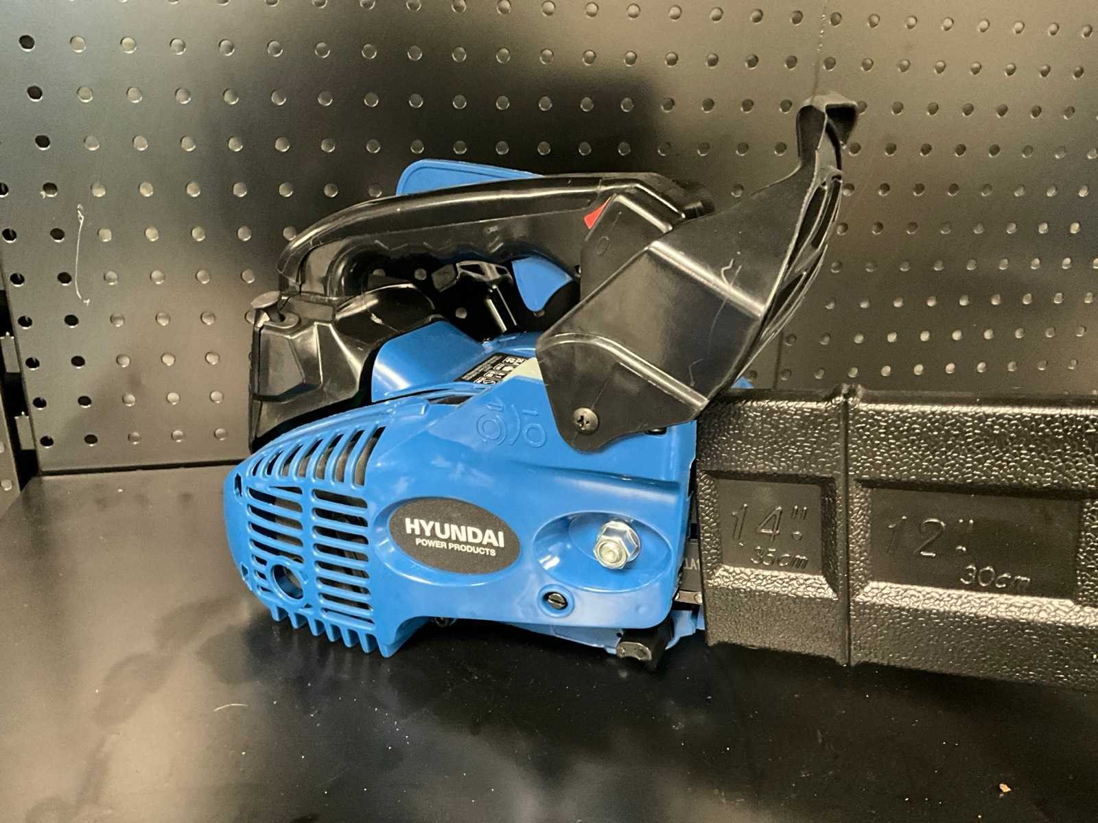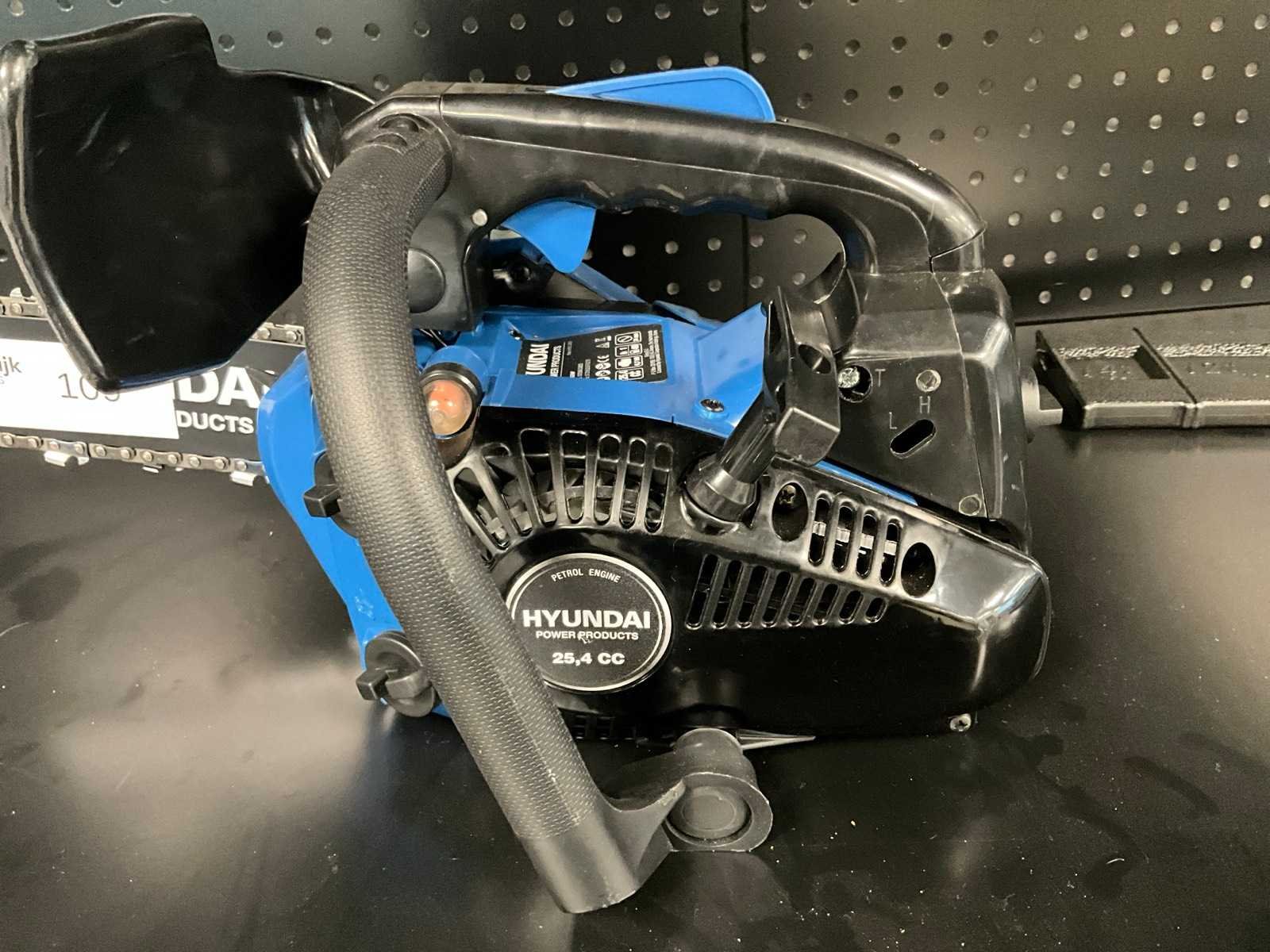 2-takt motor 25.4cc; voorzien van opbergtas en kunststof hoes voor zaagblad Merk: Hyundai Type: 57256 Bouwjaar: 2023 Zaagblad afm. l: 250mm Brandstof: Benzine Motorvermogen (kW): 0.7kW Eigen gewicht: 3.8kg