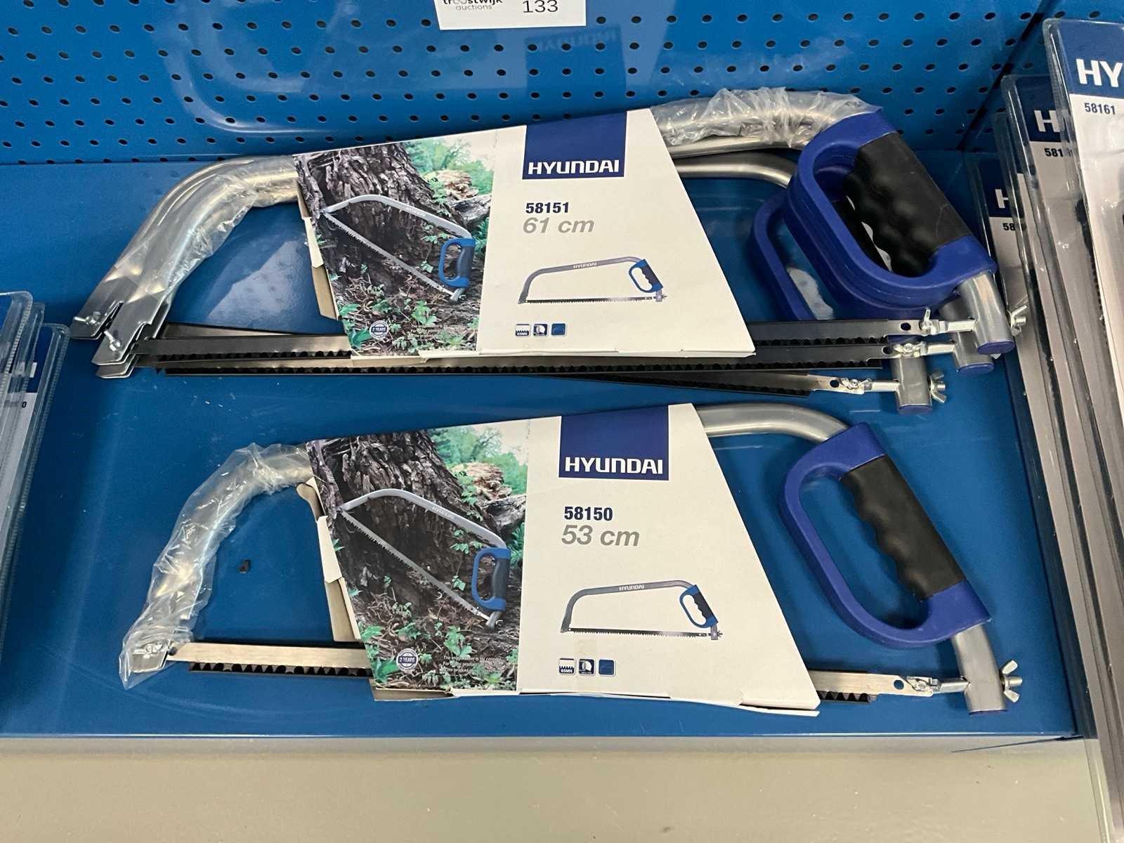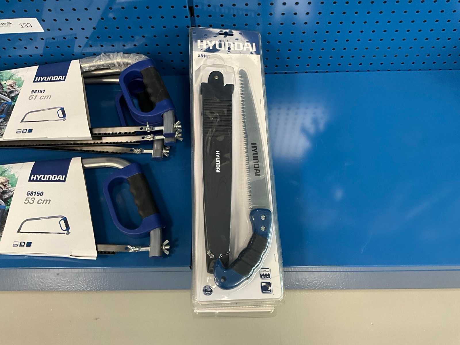 Bestaande uit: 3x Hyundai 58151 beugelzaag 61cm, 1x Hyundai 58150 beugelzaag 53cm, 4x Hyundai 58161 snoeizaag en 4x Hyundai 58160 takkenzaag Merk: Hyundai