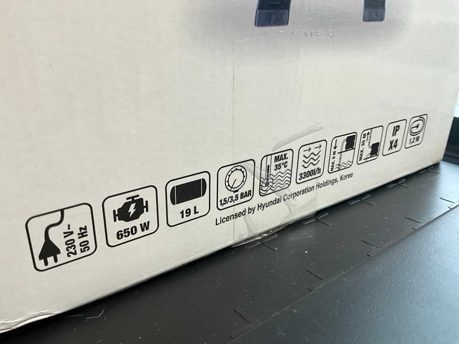 Merk: Hyundai Type: 57806 Vermogen: 0.65kW Capaciteit.: 3300l/hr H-max.: 35m Aansluiting: 230V