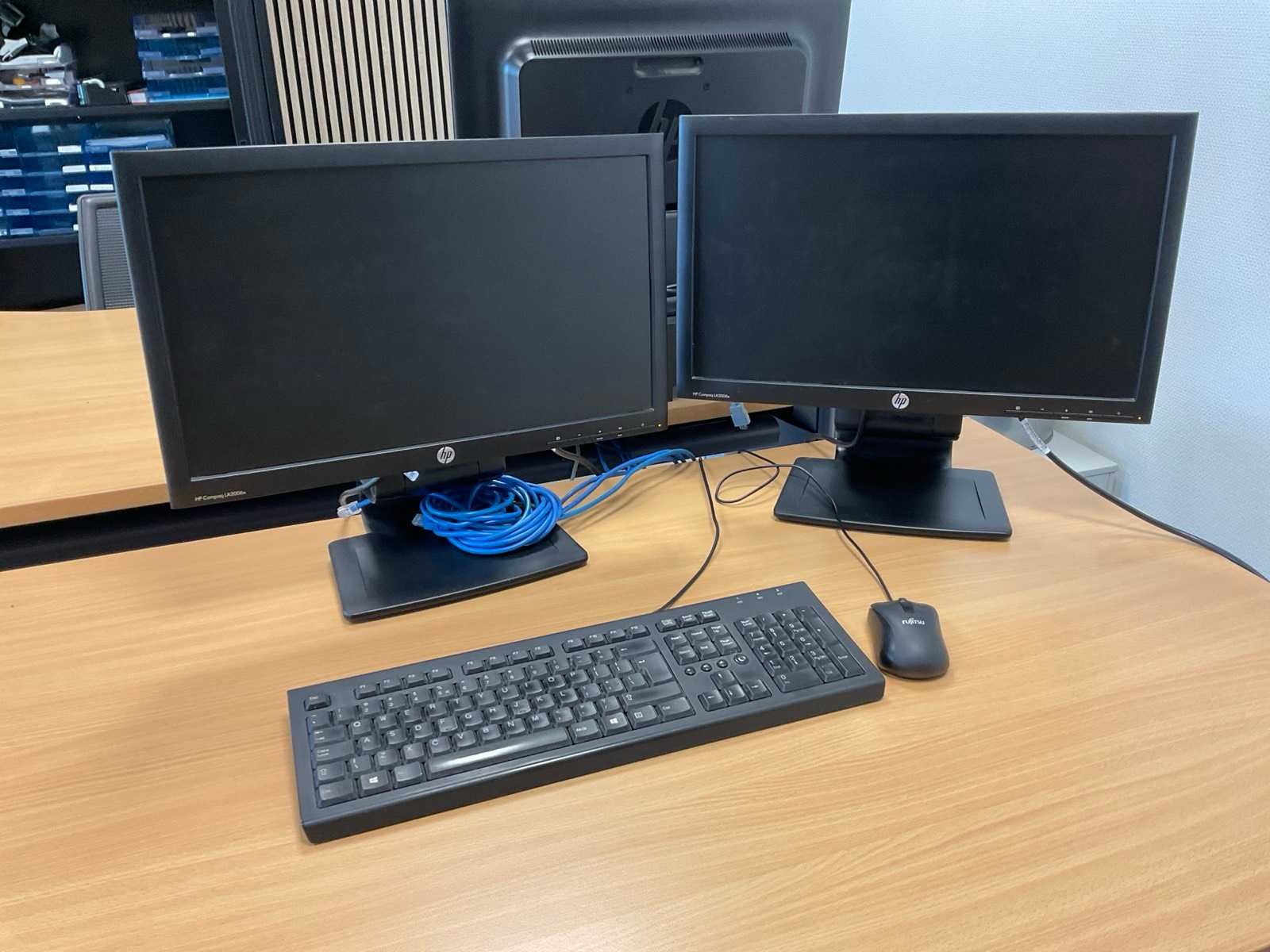Inclusief: (3x) mobiele bureaustoel, (3x) LCD monitor, (2x) ladenblok. Let op! Deze kavel bevindt zich op de eerste etage. Lengte: 220cm Breedte: 113cm