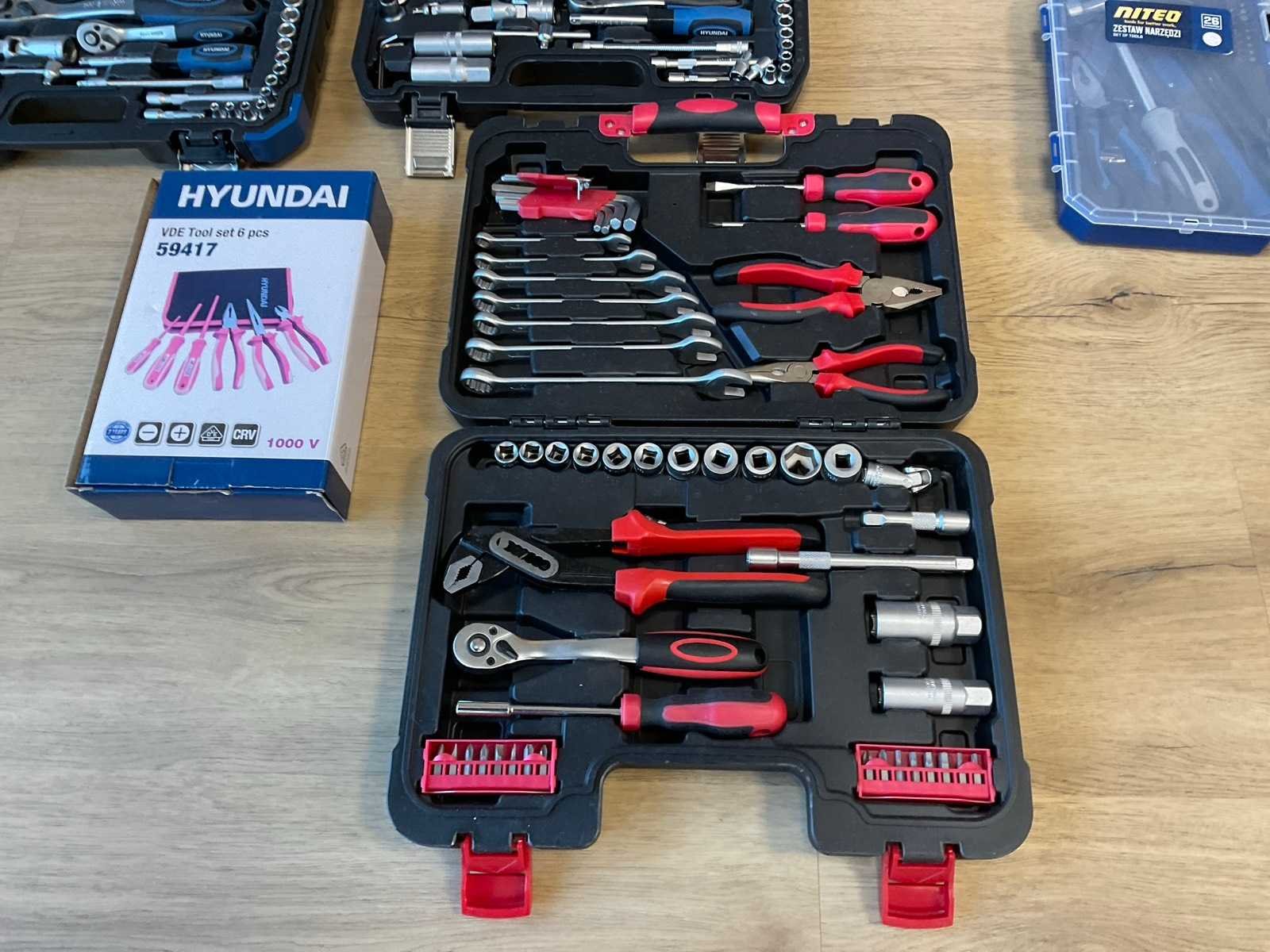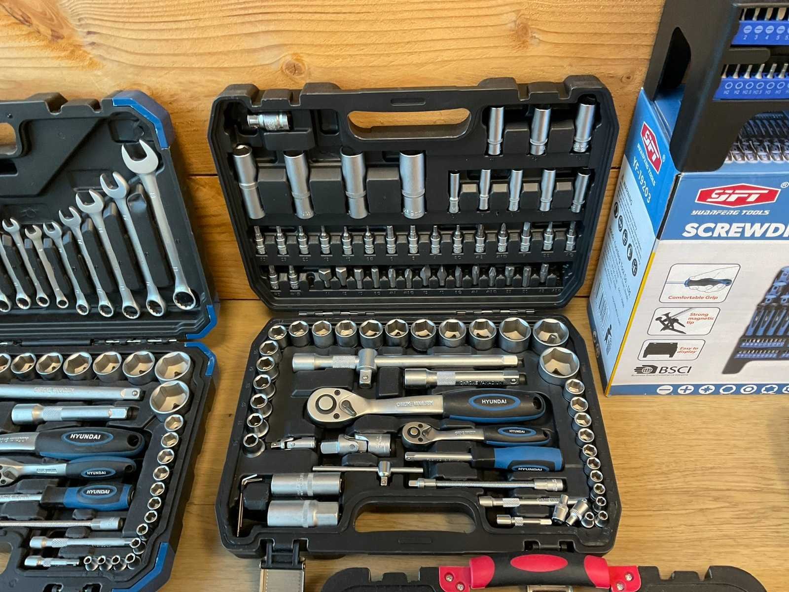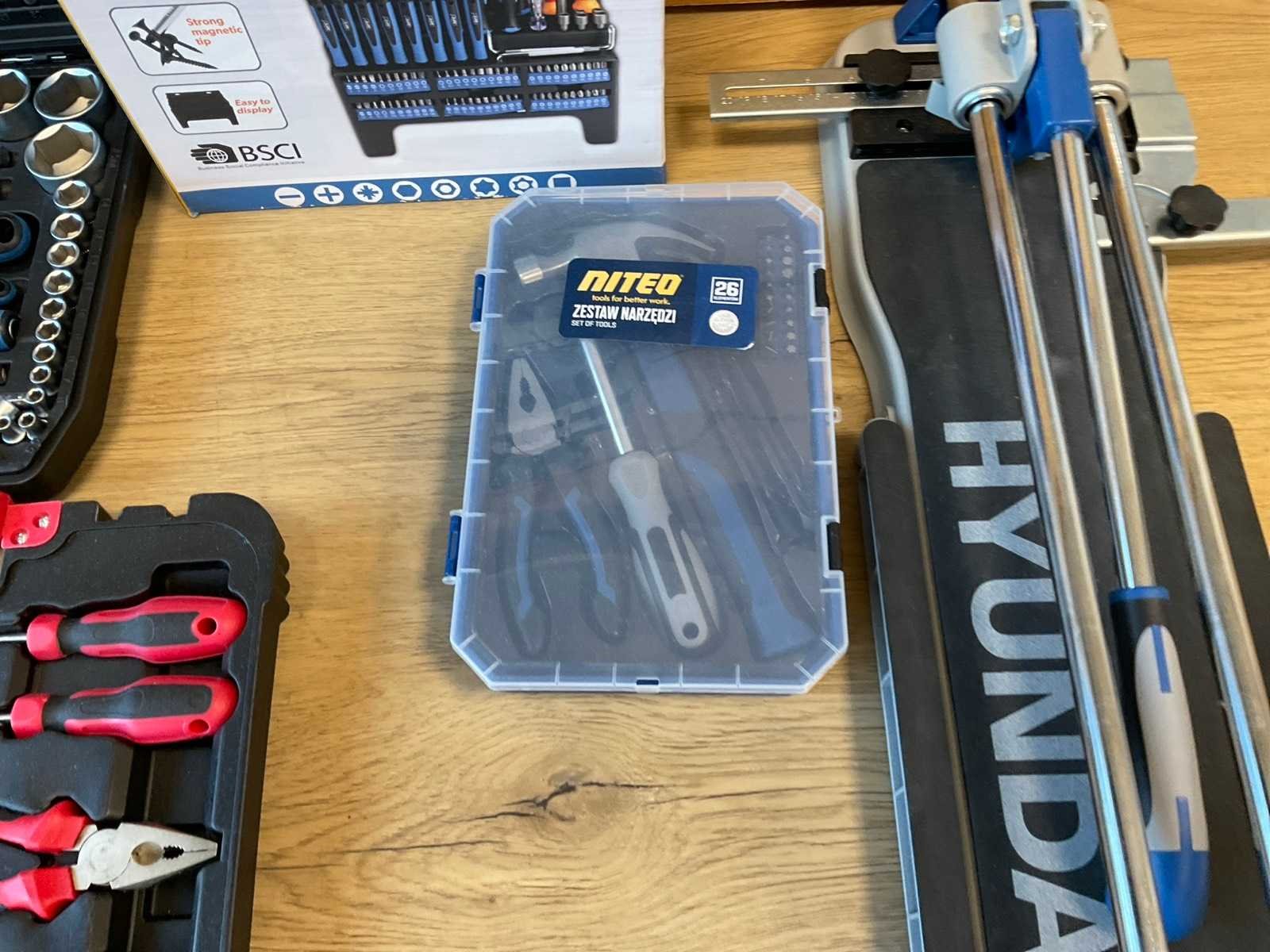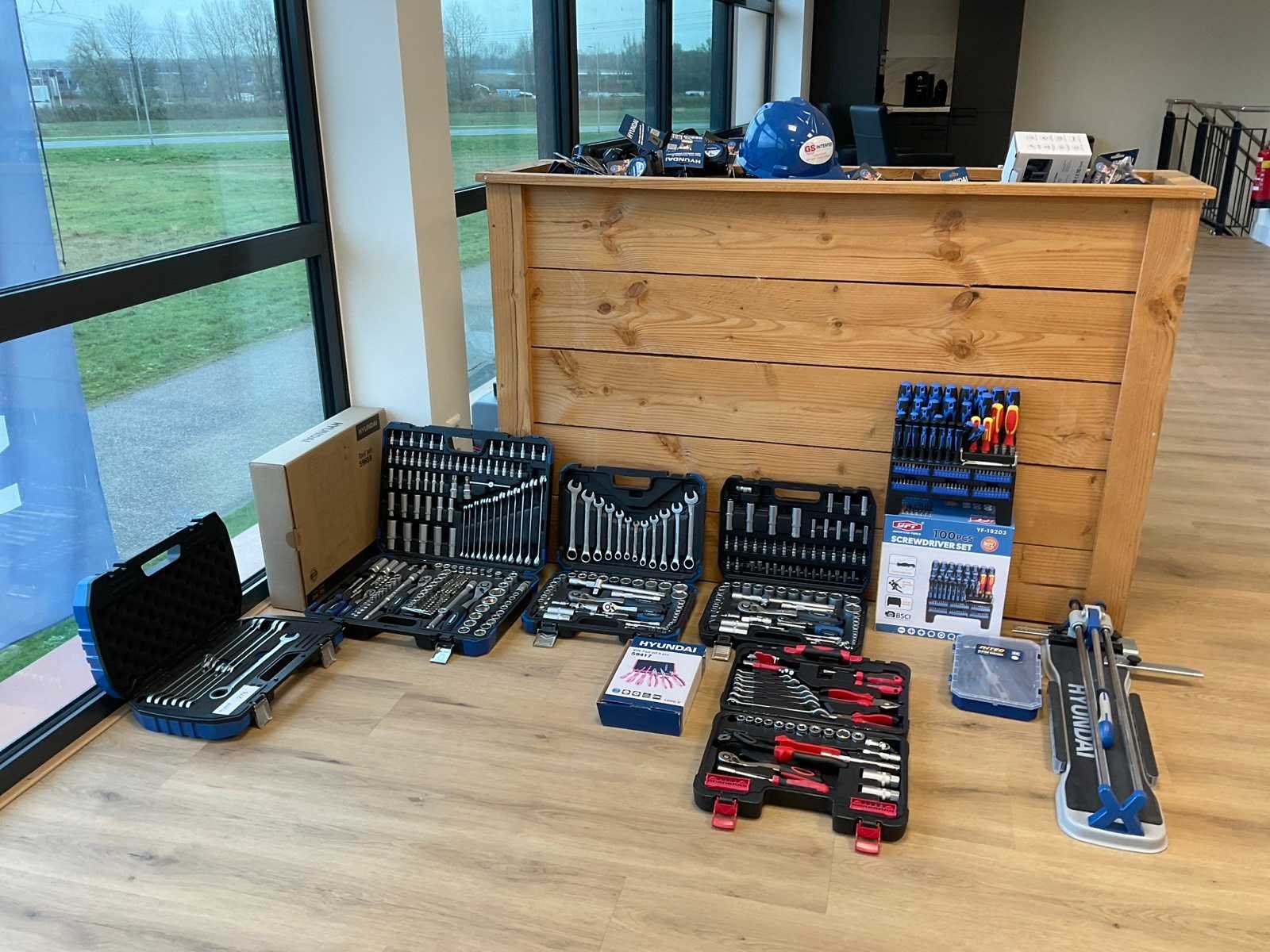 Diverse handgereedschappen in koffers. Inclusief: (1x) bak met rolbandmaten. Let op! Deze kavel bevindt zich op de eerste etage.