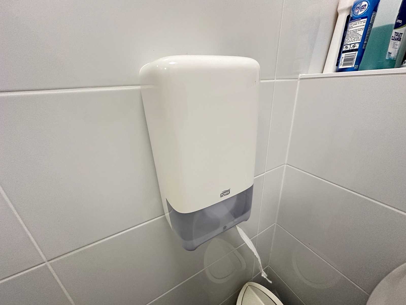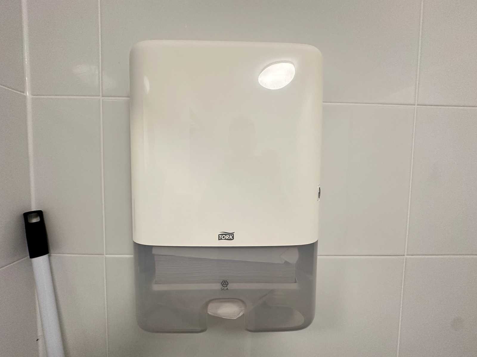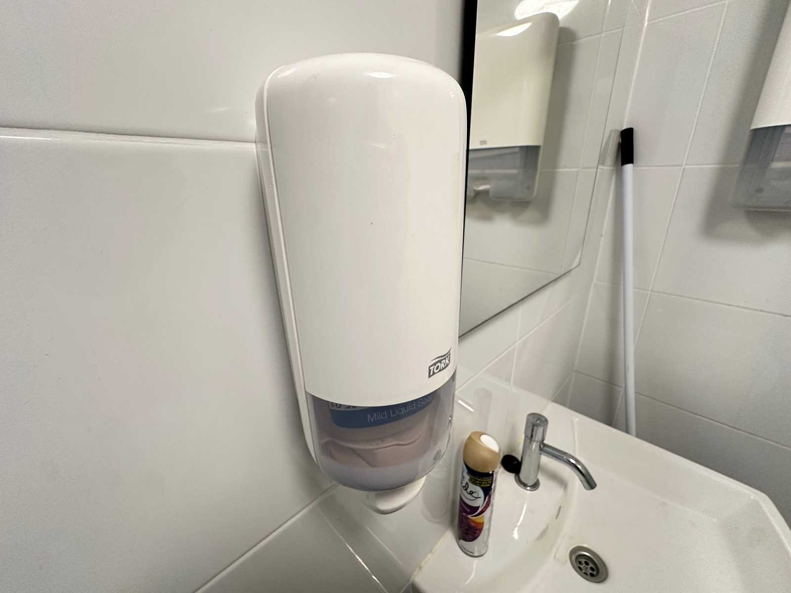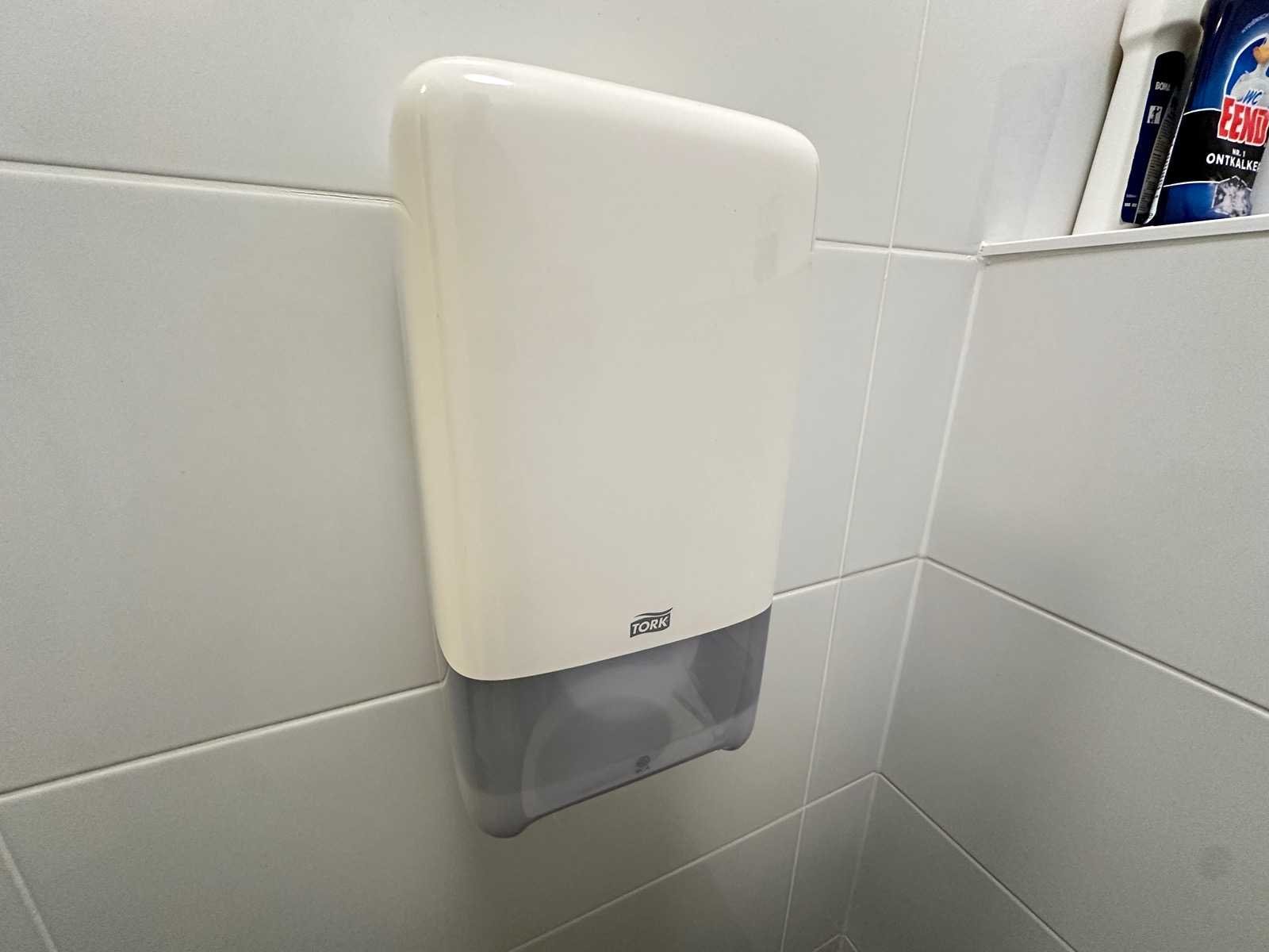 Deze set bestaat uit handdoekdispenser, 2x papierdispenser en zeepdispenser. De sleutels ontbreken. Merk: Tork