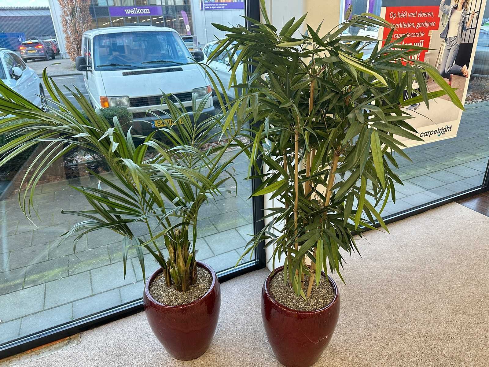 Bamboe kunstplant in stenen pot (2x)