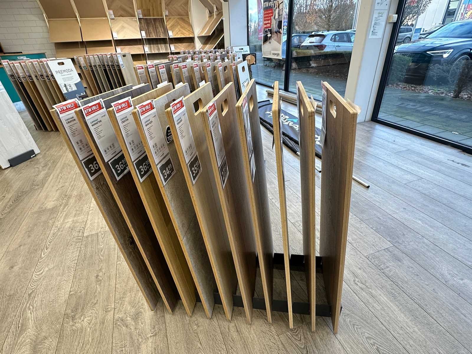 Afmeting van de houten samples met handvat is 90x47 cm (HxB) Circa 190 samples. Totale afmeting L: 300mm Totale afmeting Breedte: 960mm Totale afmeting Hoogte: 100mm