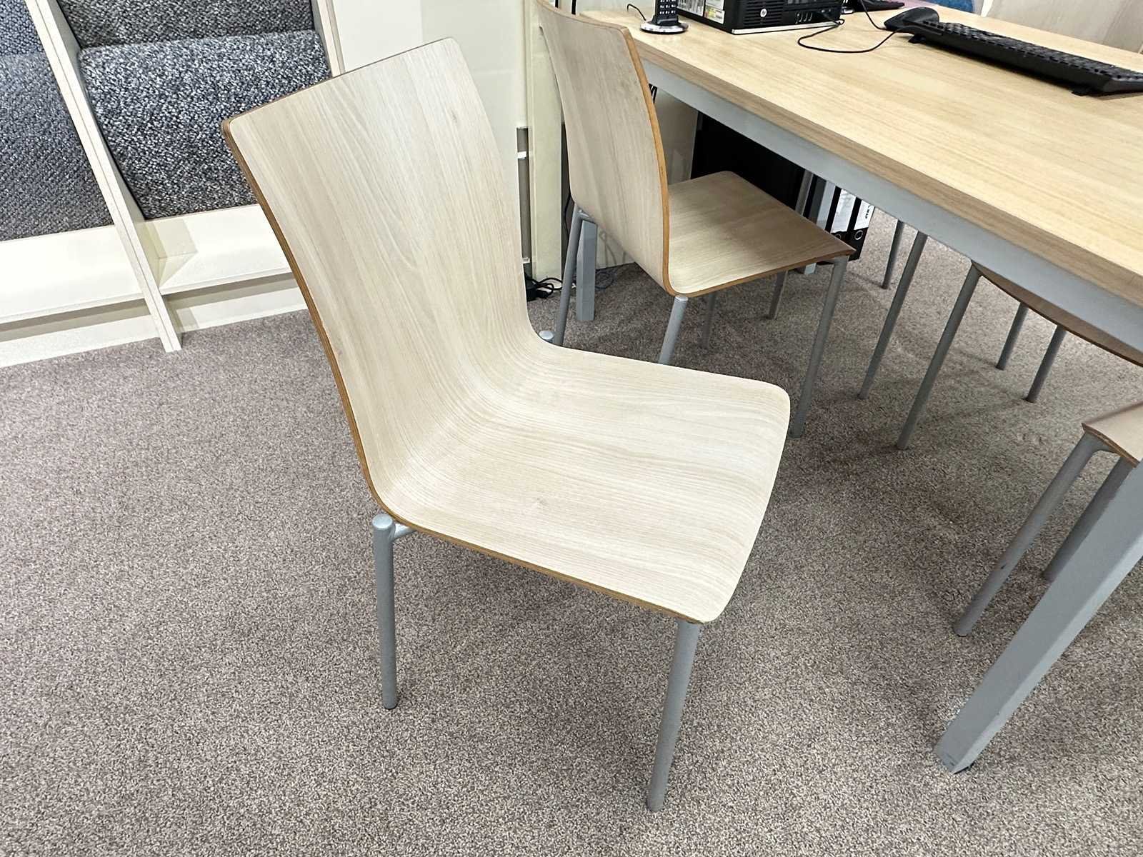 Deze stoelen van Pedrali met houten zitting hebben een zithoogte van 44 cm. Exclusief Monitor en toetsenbord. Afmeting l: 1400mm Afmeting b: 800mm Afmeting h: 750mm