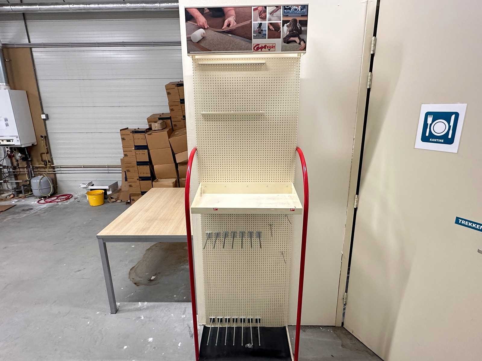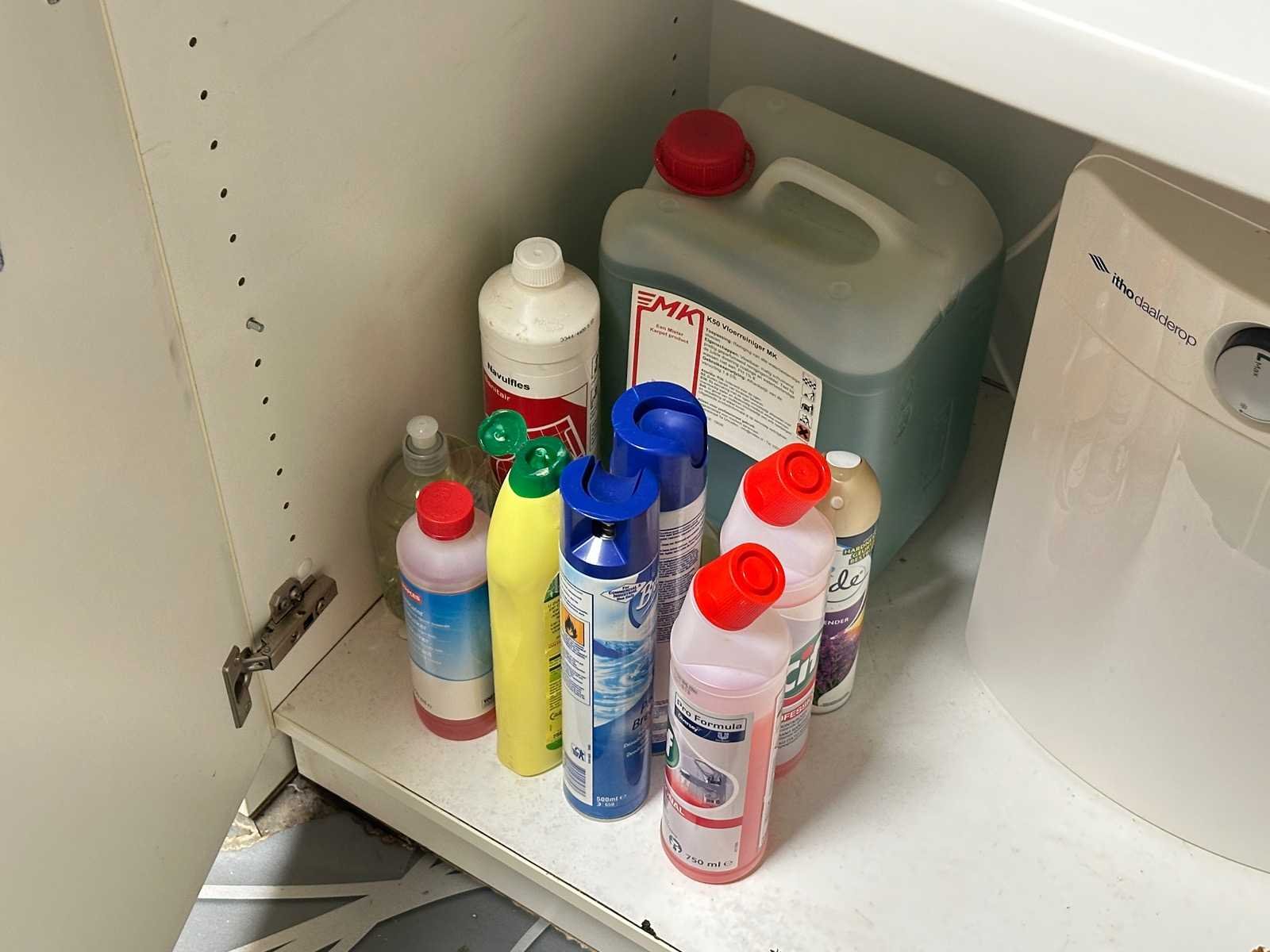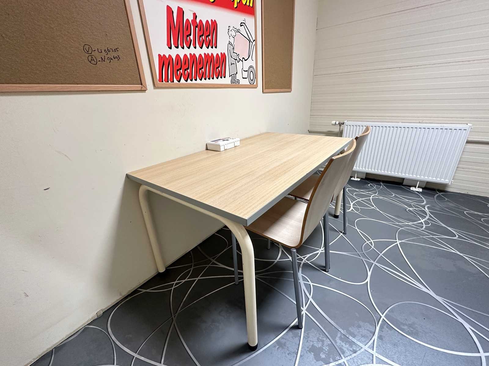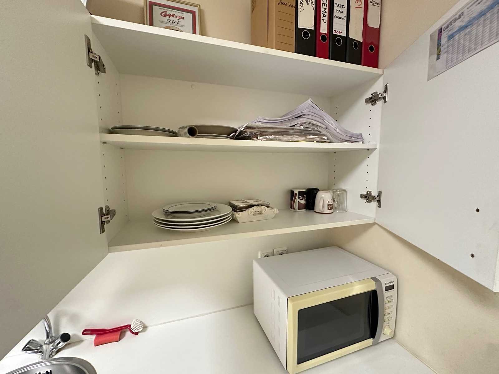 Deze inhoud bestaat onder andere uit rolcontainers, stelling materiaal, schoonmaakartikelen, tafel en stoelen, koffiezetapparaat, magnetron en serviesgoed.