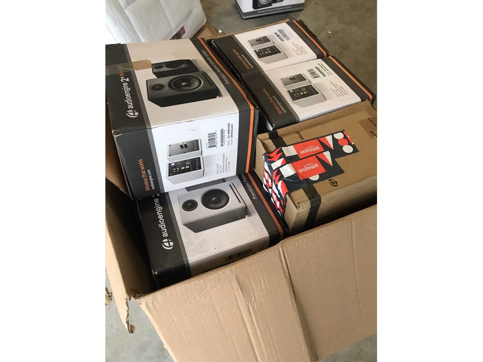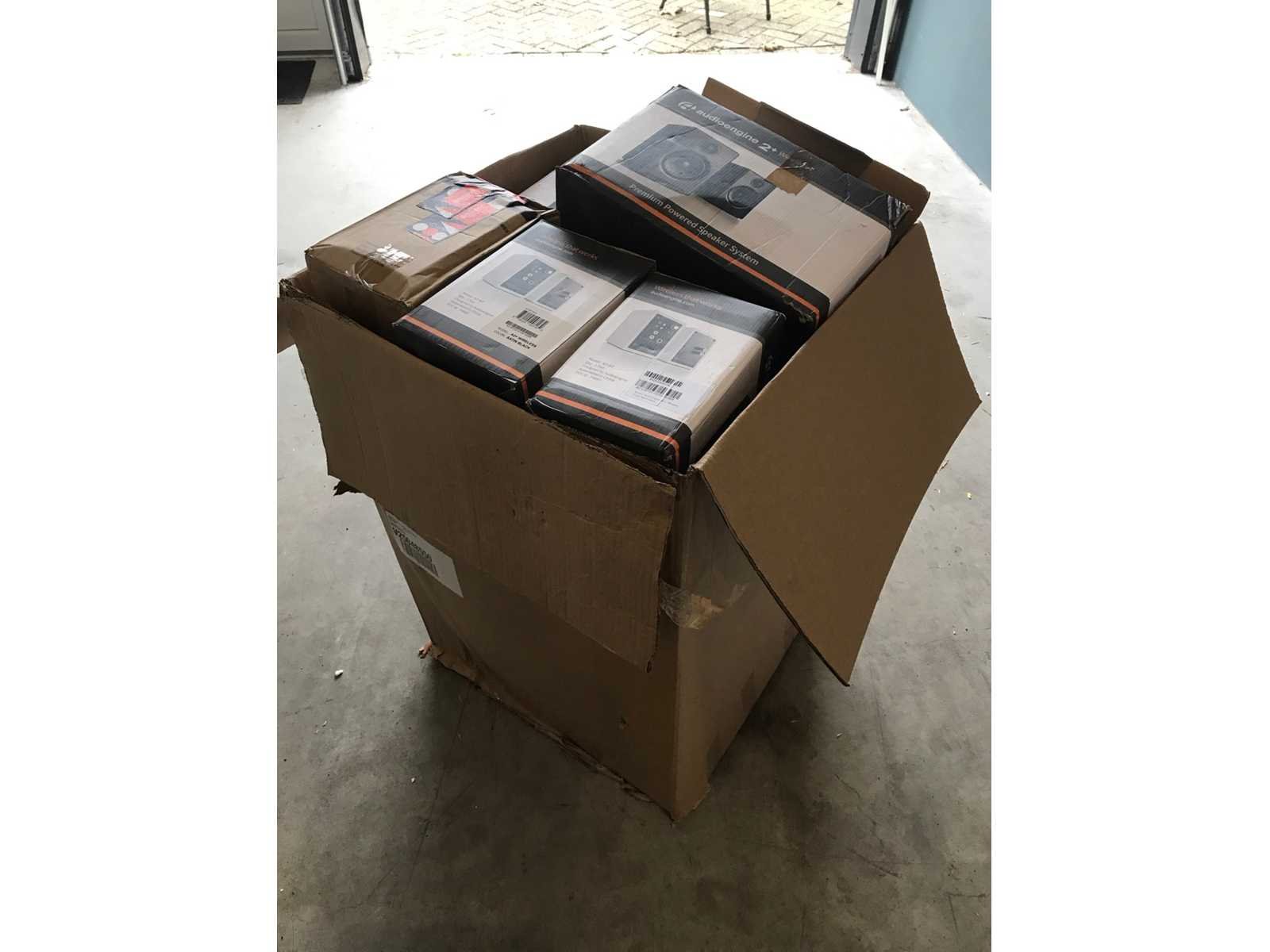 Zie foto’s voor de details Merk: Mysteriebox Model: Diverse speakers speakerset Lengte: 60cm Breedte: 50cm Hoogte: 90cm
