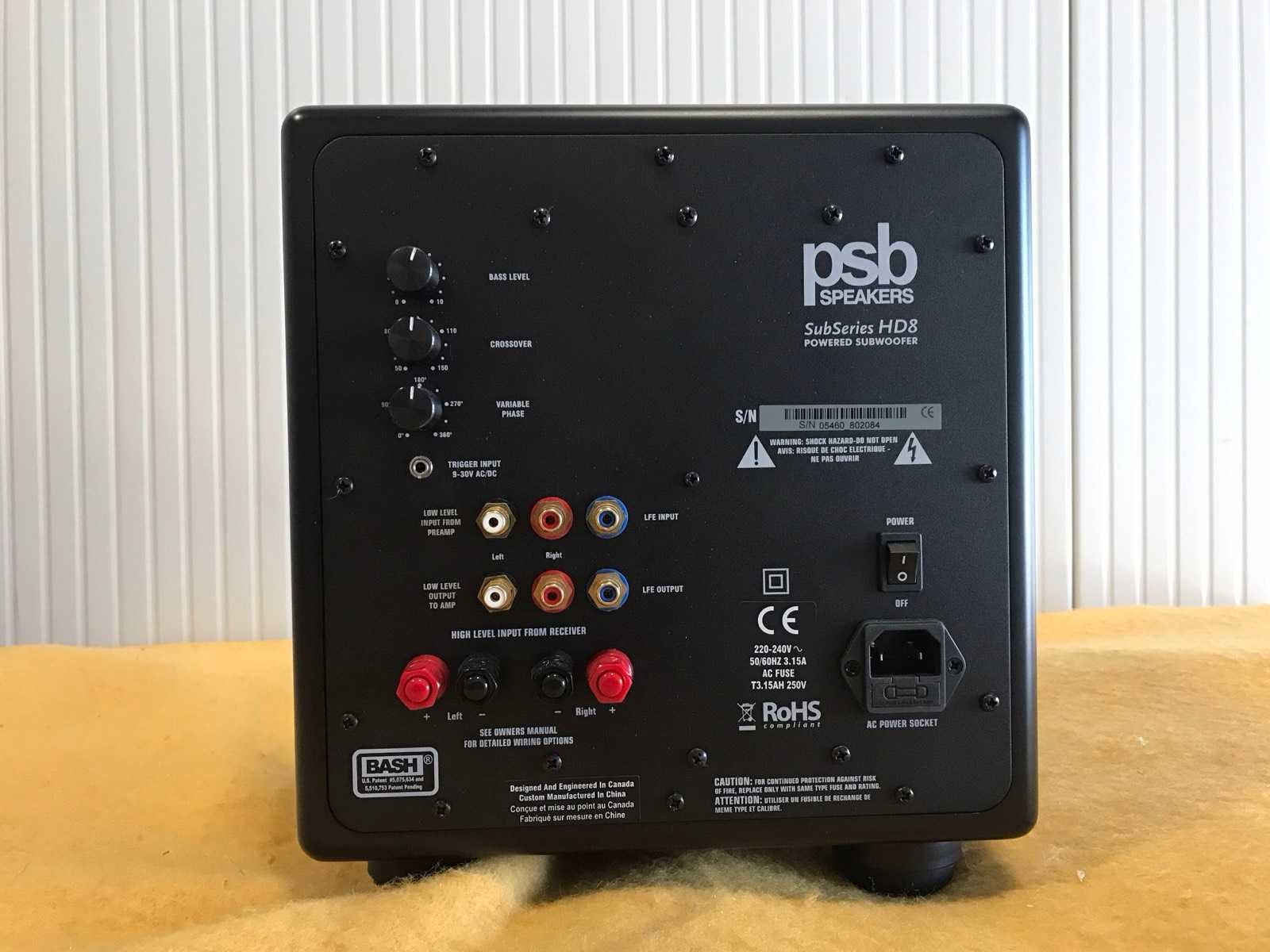 Ongebruikt in de verpakking. Hoge kwaliteit subwoofer zie foto’s voor de details Merk: PSB Model: HD8 subseries Kleur: Black Lengte: 26cm Breedte: 27cm Hoogte: 30cm