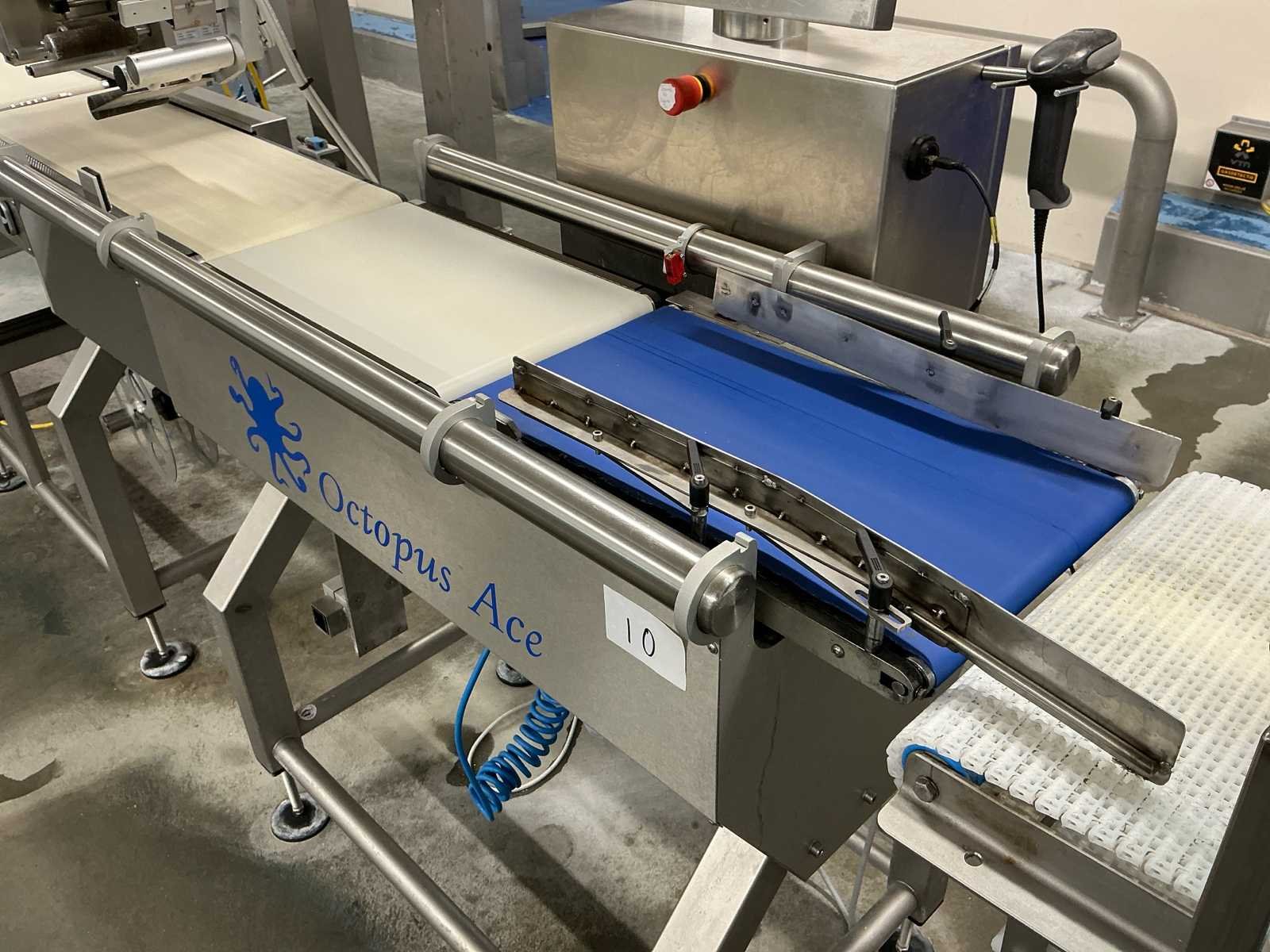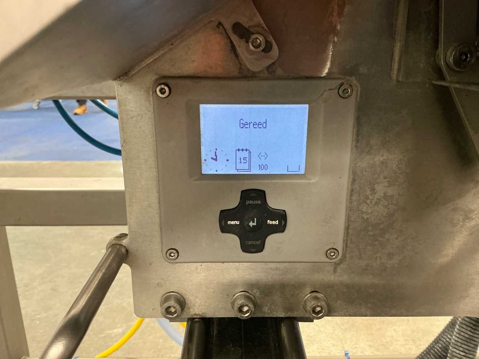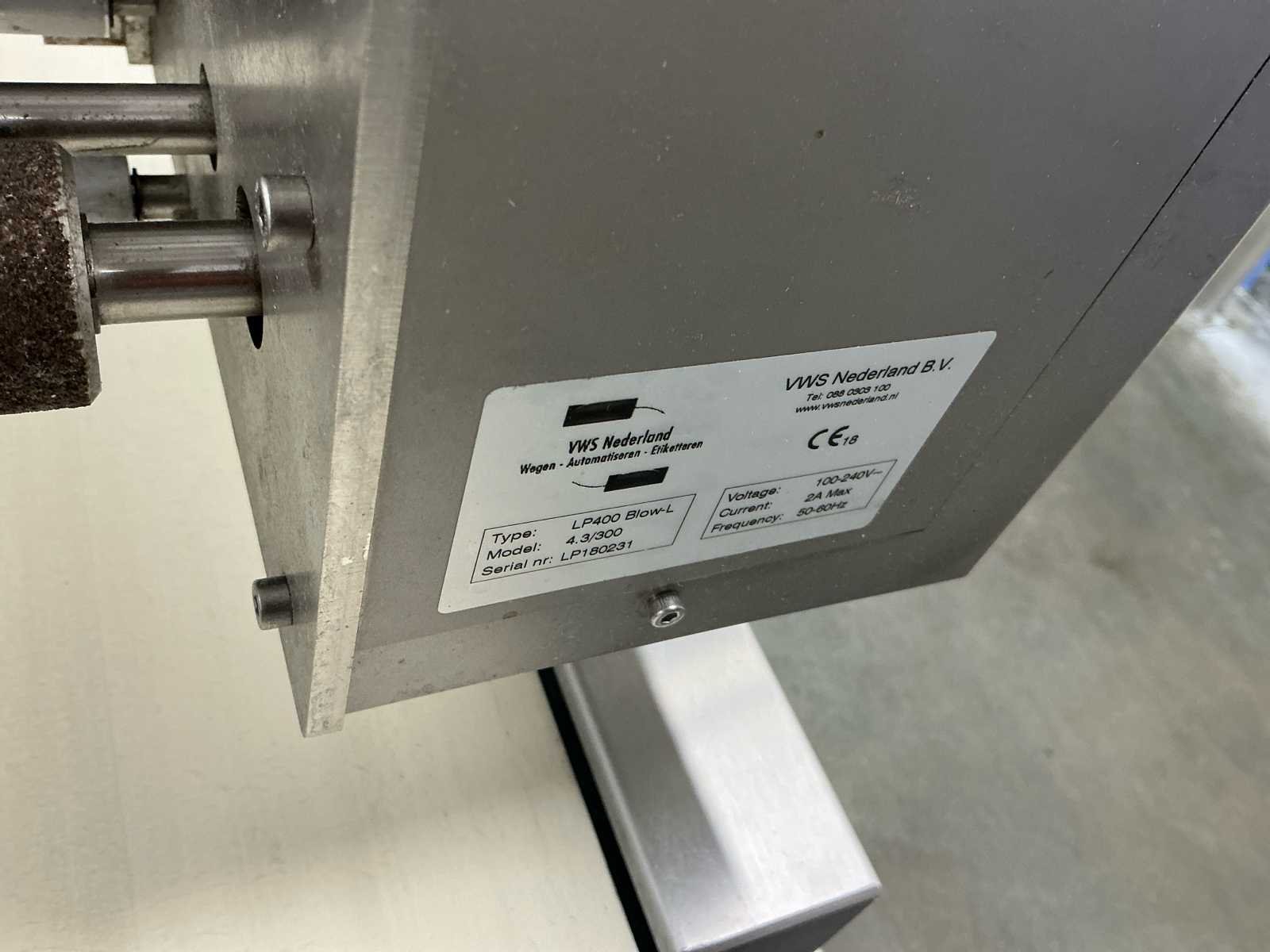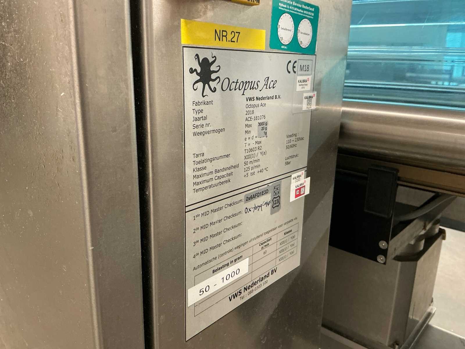 "VWS Octopus ACE weeg en VWS LP 400 Blow L labelmachine Max. Productcapaciteit: 125 p/min Transportbandbreedte: 290 mm Max. Gewicht: 3000g Min. Gewichtscapaciteit: 20g Max. Transportsnelheid: 50 m/min Afmetingen (LxWxH): 2800x1000x2000mm Inclusief VWS touchscreenpaneel versie 4.15.1 Let! Zonder kavel 11" VWS Octopus ACE check weigher and VWS LP 400 Blow L labelling machine Max. Product capacity: 125 p/min Conveyor width: 290mm Max. Weight capacity: 3000g Min. Weight capacity: 20g Max. Conveyor speed: 50m/min Dimensions (LxWxH): 2800x1000x2000mm Including VWS touchscreen panel version 4.15.1 Please note! Without lot 11 Merk: VWS Type: Octopus ACE