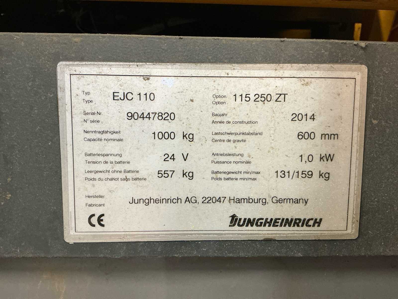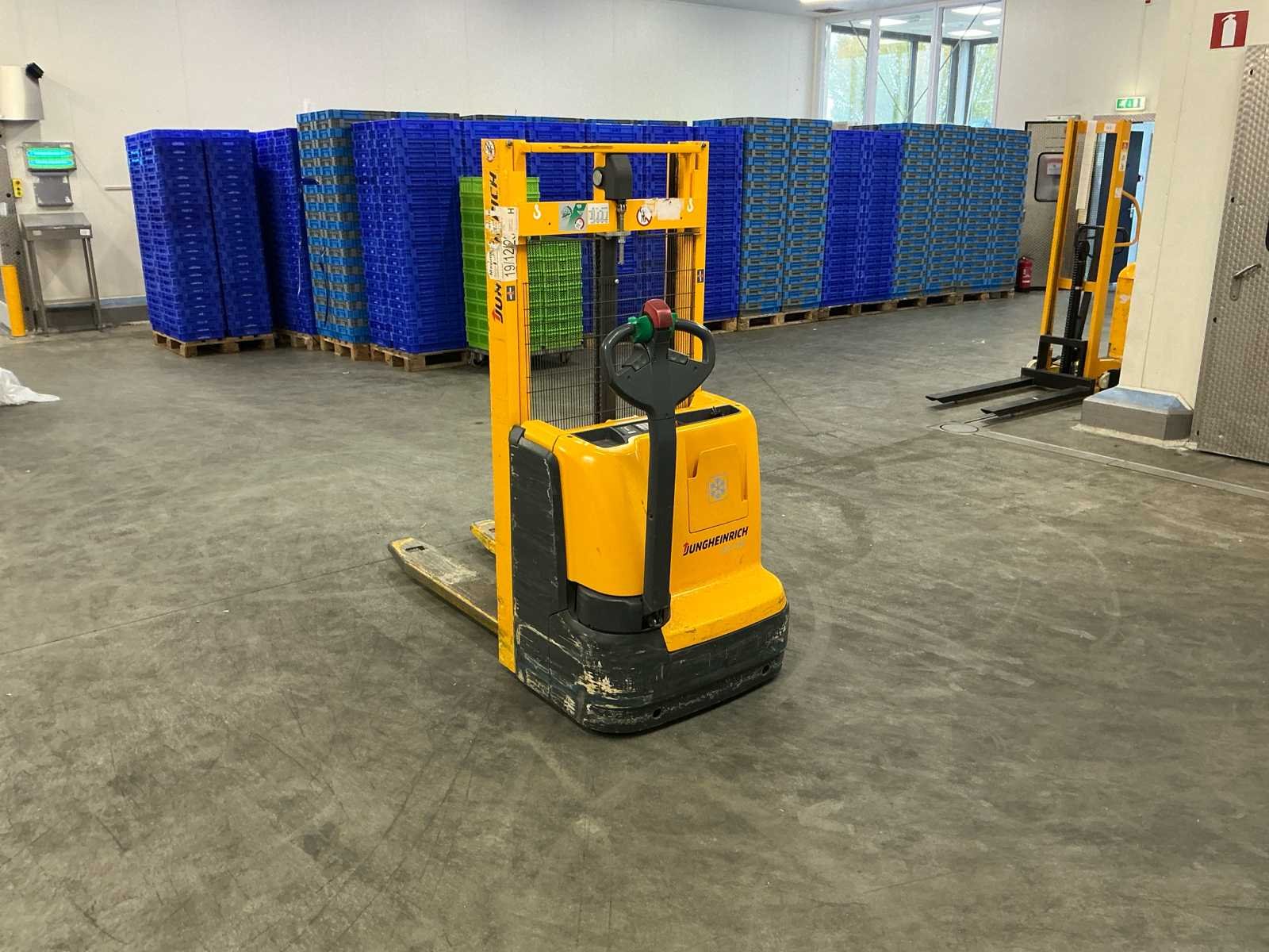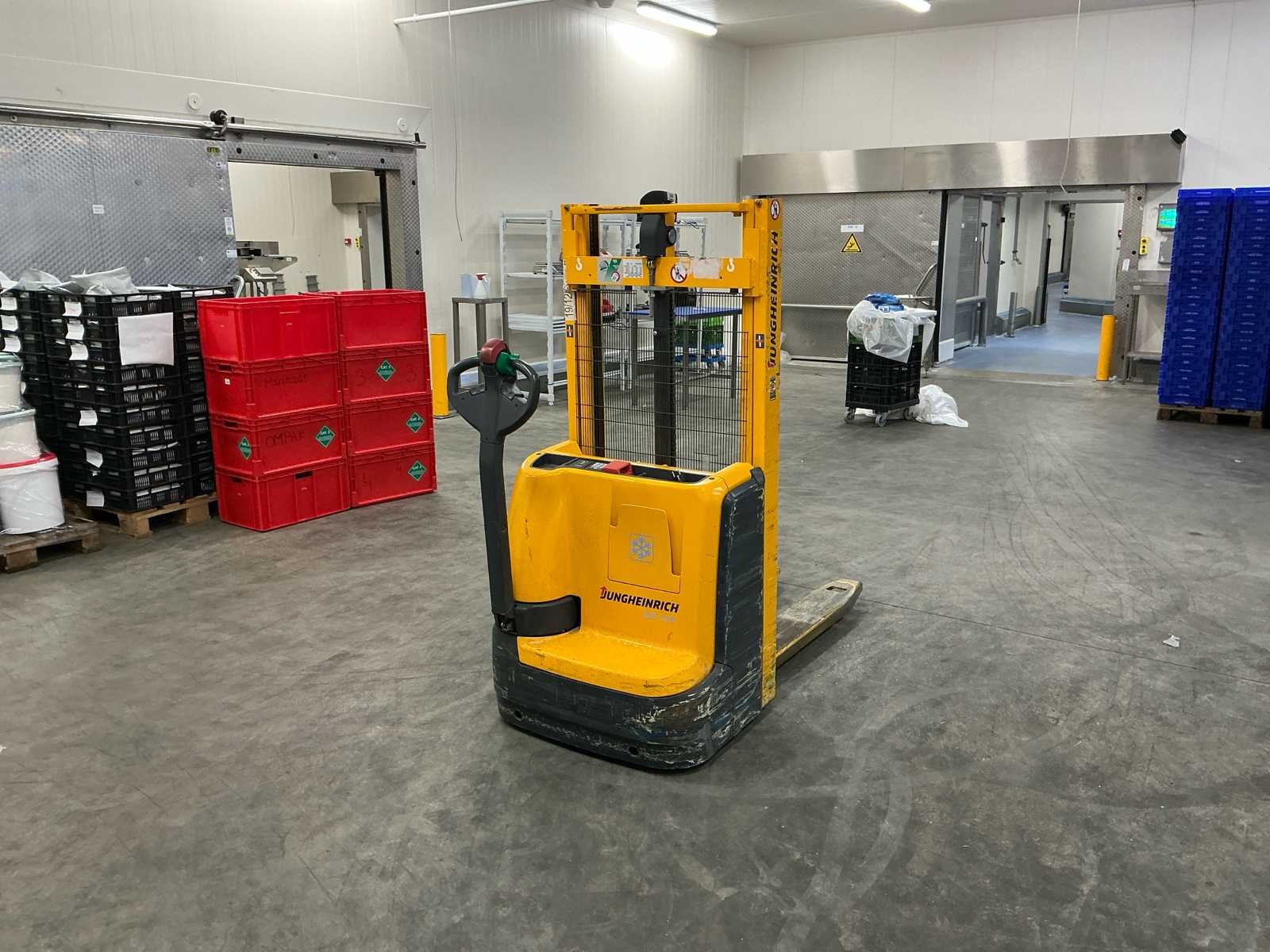 Hoogte: 1700 mm Gewicht zonder accu: 557 kg Batterijgewicht: 159 kg Hours on screen: 1848 Rated capacity: 1000kg Max height: 2500mm Height: 1700mm Fork length: 1150mm Weight without battery: 557kg Battery weight: 159kg Merk: Jungheinrich Type: EJC 110 Hefvermogen: 1000kg Hefhoogte: 2500mm Lepellengte: 1150mm Afgelezen urenstand: 1848
