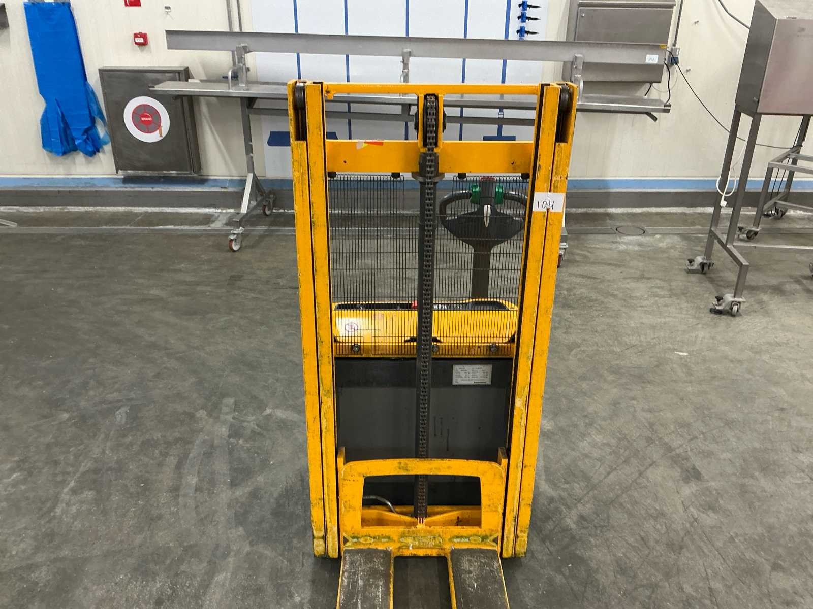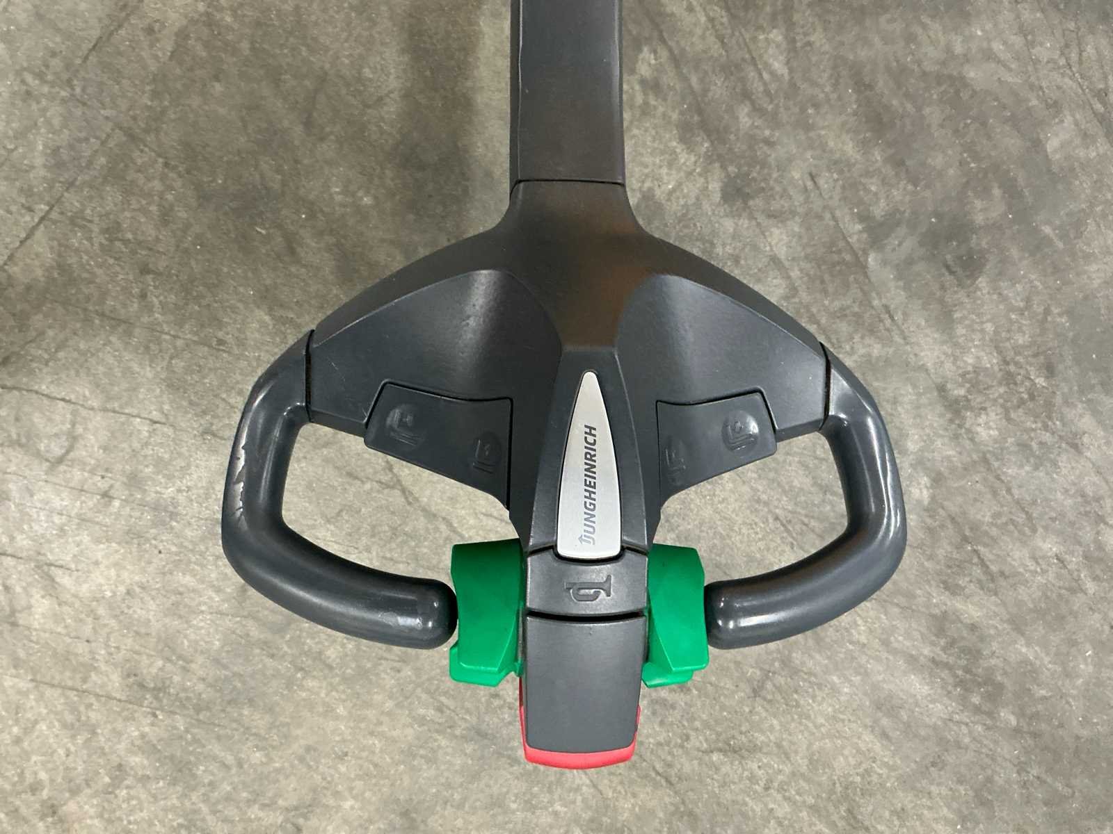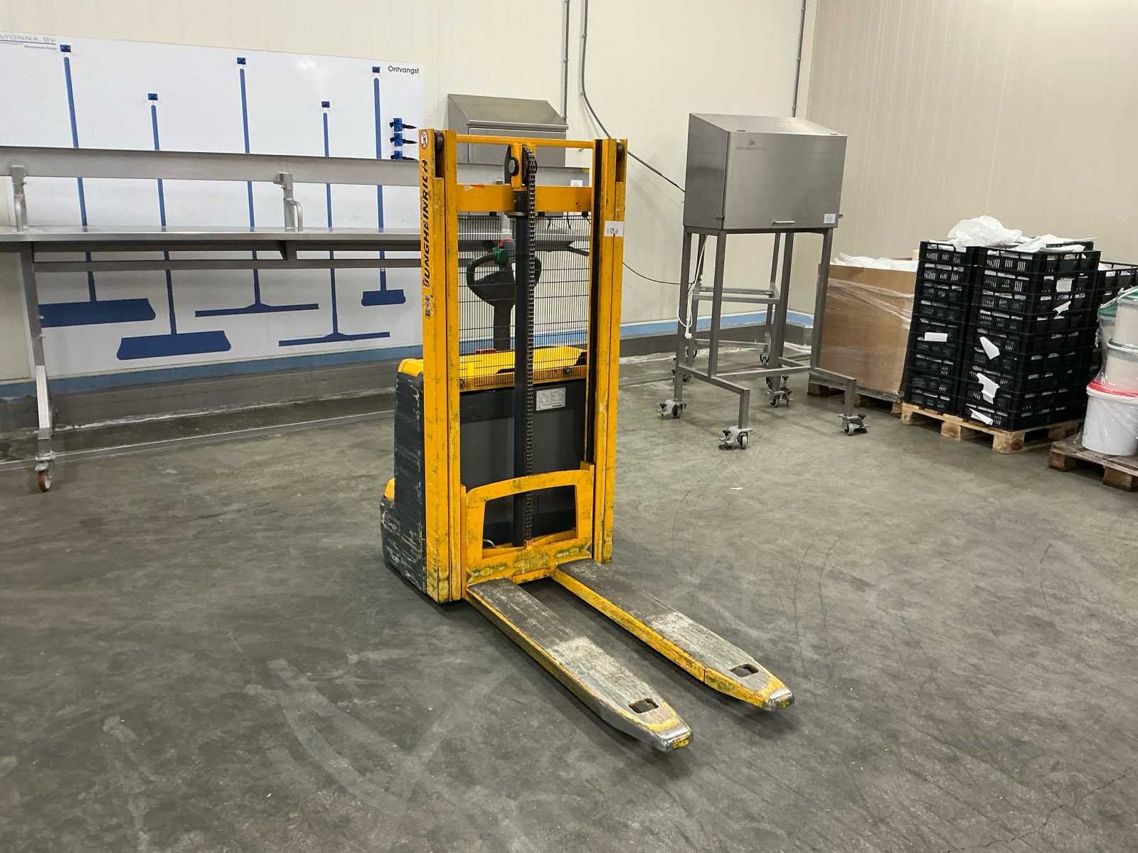 Hoogte: 1700 mm Gewicht zonder accu: 557 kg Batterijgewicht: 159 kg Hours on screen: 1848 Rated capacity: 1000kg Max height: 2500mm Height: 1700mm Fork length: 1150mm Weight without battery: 557kg Battery weight: 159kg Merk: Jungheinrich Type: EJC 110 Hefvermogen: 1000kg Hefhoogte: 2500mm Lepellengte: 1150mm Afgelezen urenstand: 1848