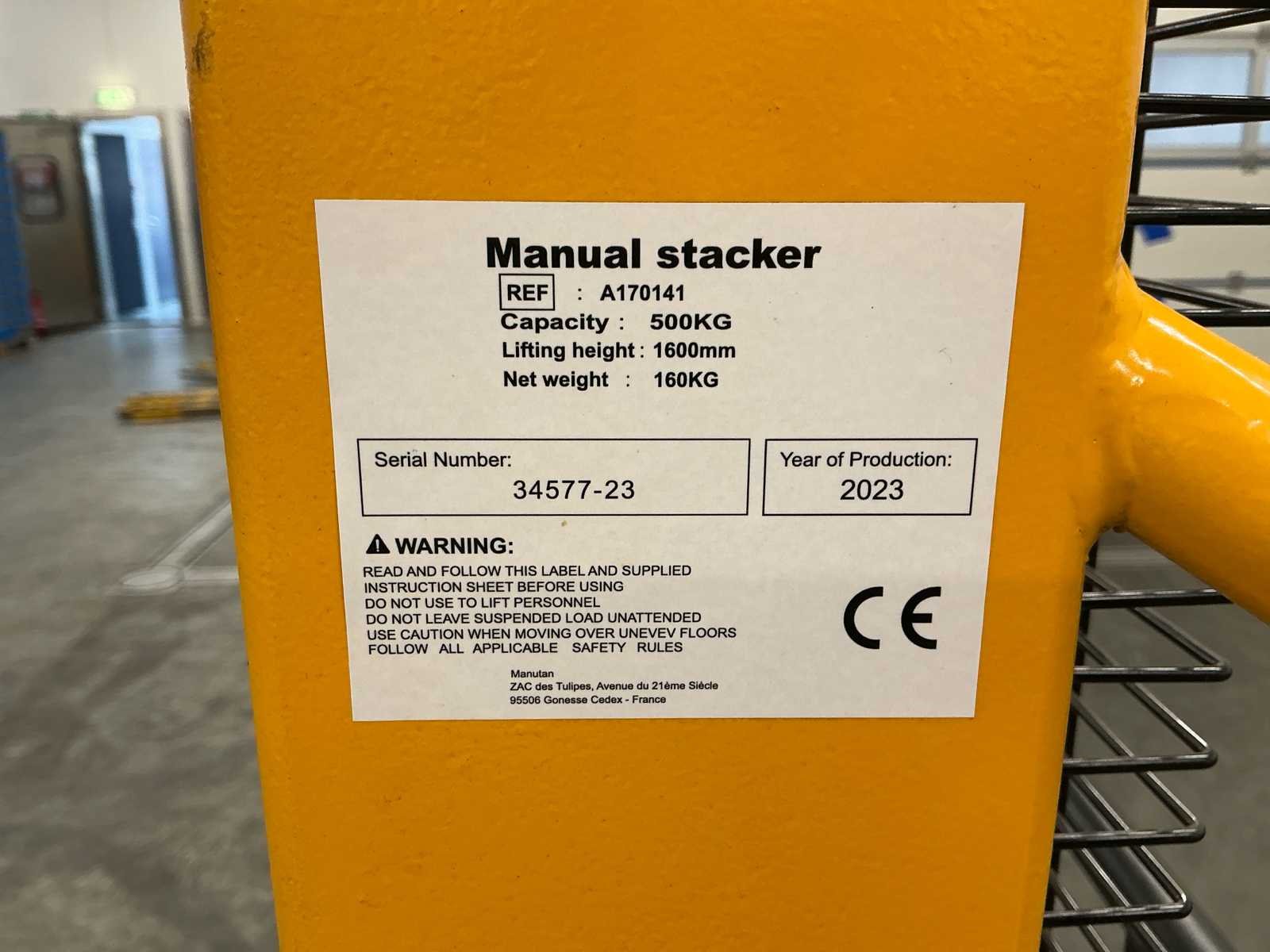 Maximaal gewicht: 500 kg Maximale hoogte: 1600 mm Gewicht: 160 kg Vorklengte: 1150 mm Max weight: 500kg Max height: 1600mm Weight: 160kg Fork length: 1150mm Merk: Manutan Type: a170141