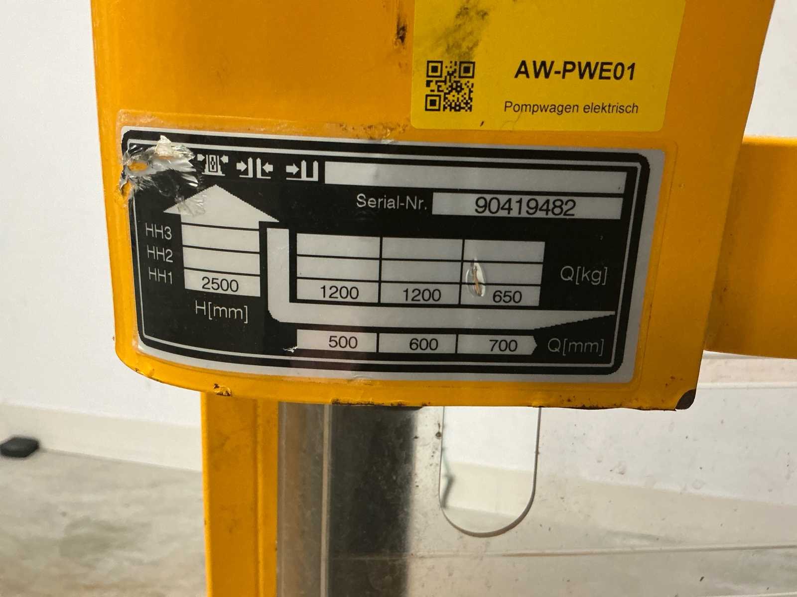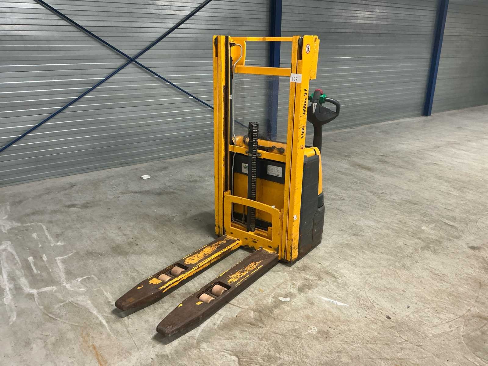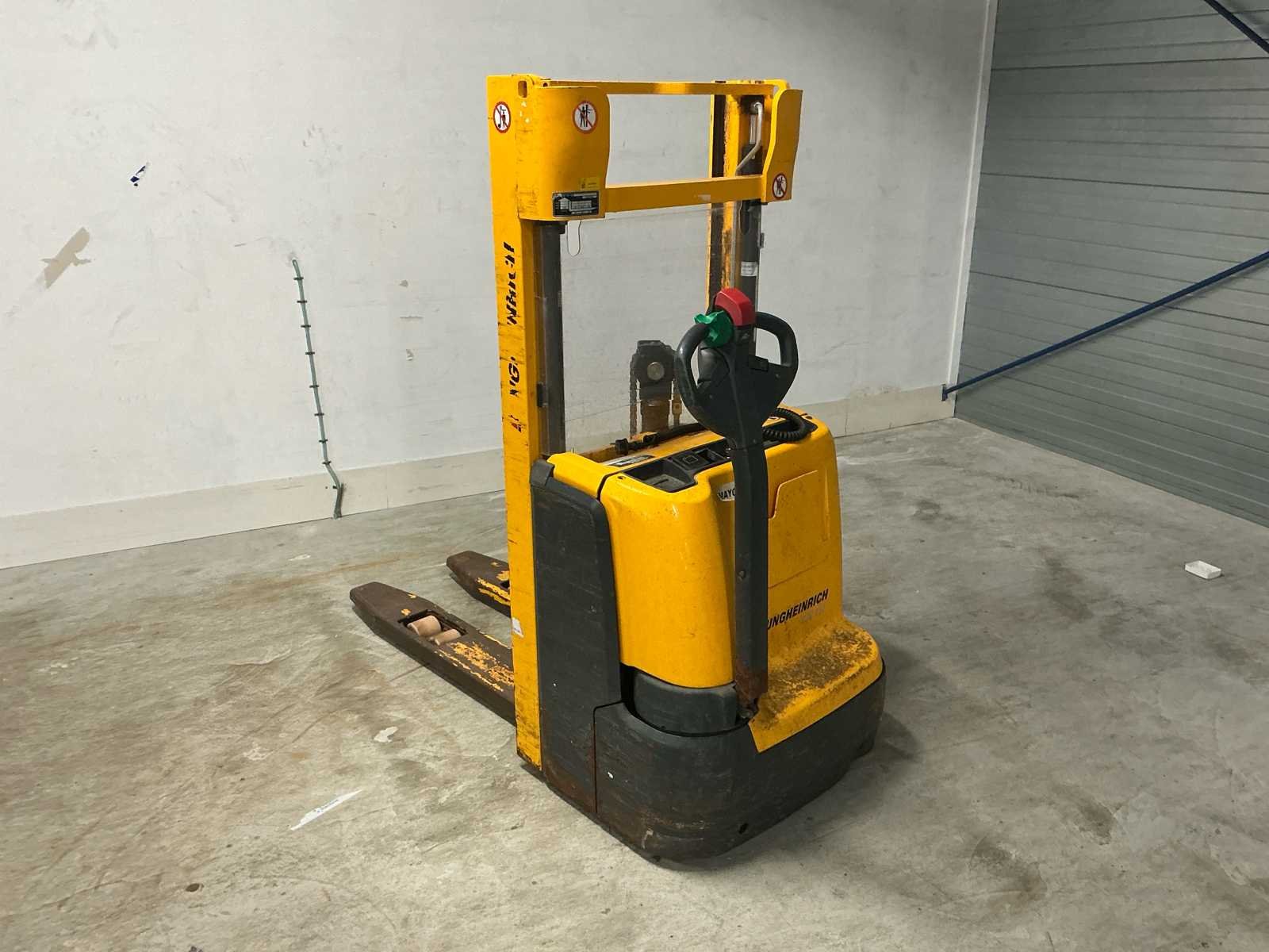 Nominale capaciteit: 1200 kg Maximale hoogte: 2500 mm Hoogte: 1700 mm Vorklengte: 1150 mm Gewicht zonder accu: 654 kg Batterijgewicht: 159 kg Rated capacity: 1200kg Max height: 2500mm Height: 1700mm Fork length: 1150mm Weight without battery: 654kg Battery weight: 159kg Merk: Jungheinrich Type: EJC 112