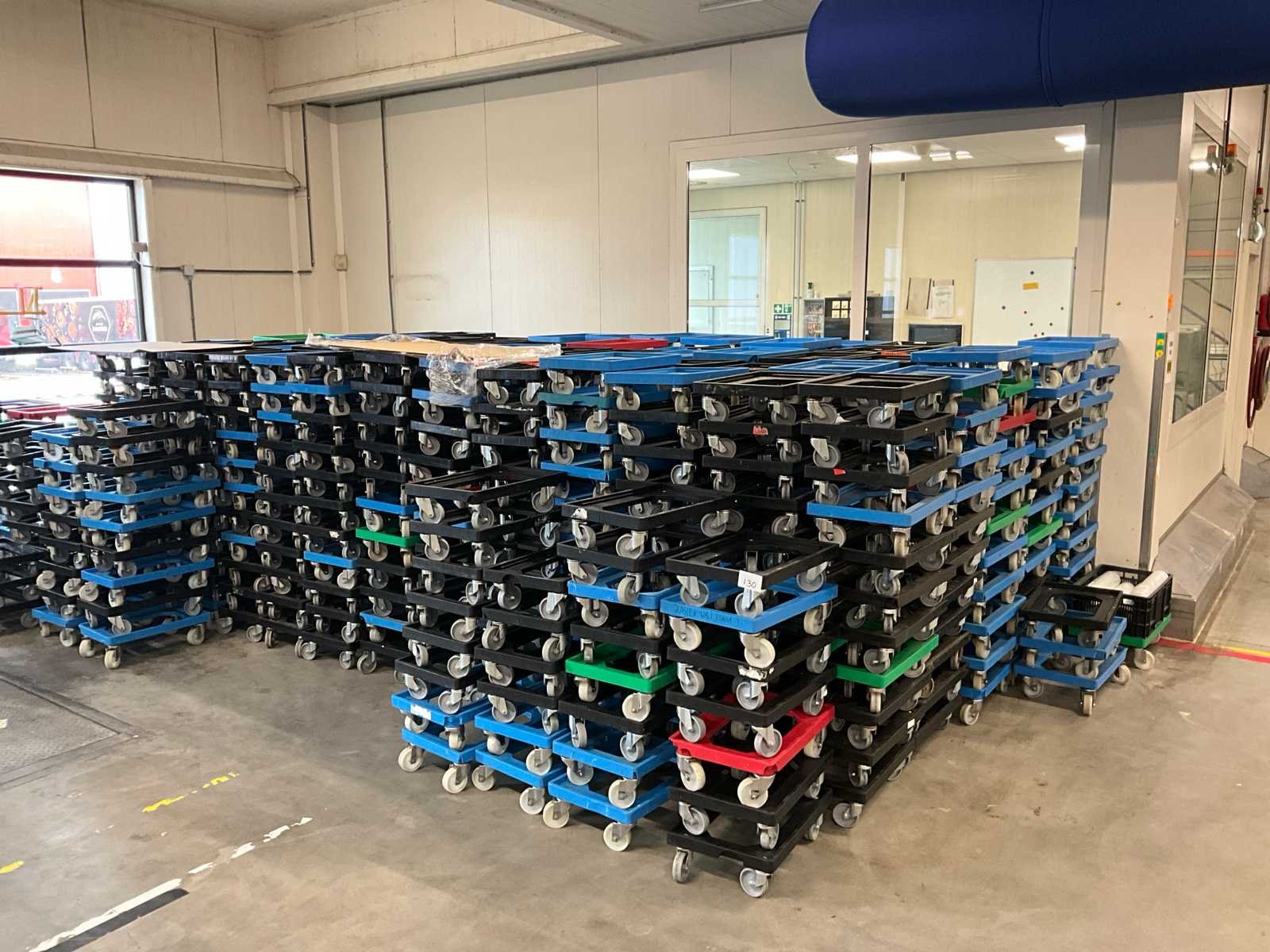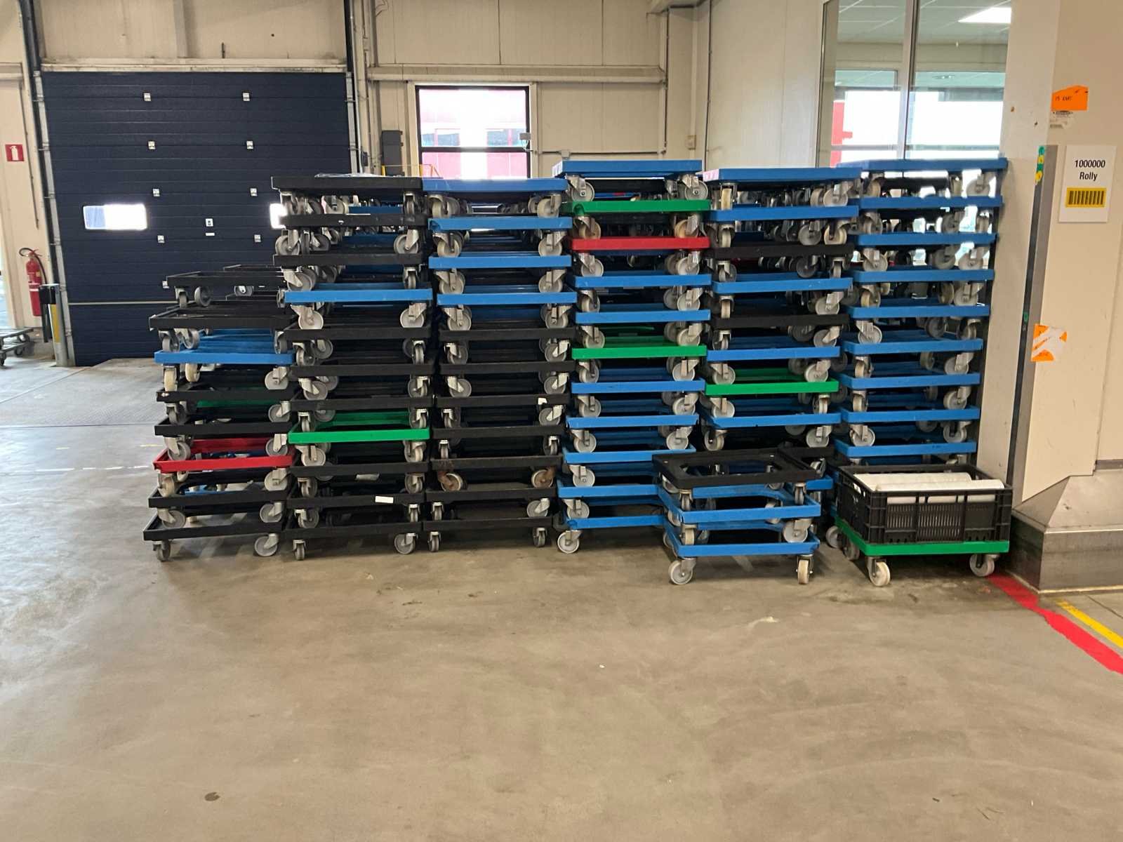 Groot aantal plastic trolleys Big number of plastic trolleys