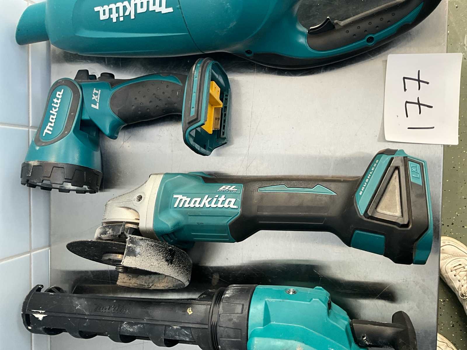 1 x lamp, 1 hoek slijp, 1 x stofzuiger, 1 x kit pistool 1 x lamp, 1 x angle grinder , 1 x vacuum cleaner, 1 x caulking gun