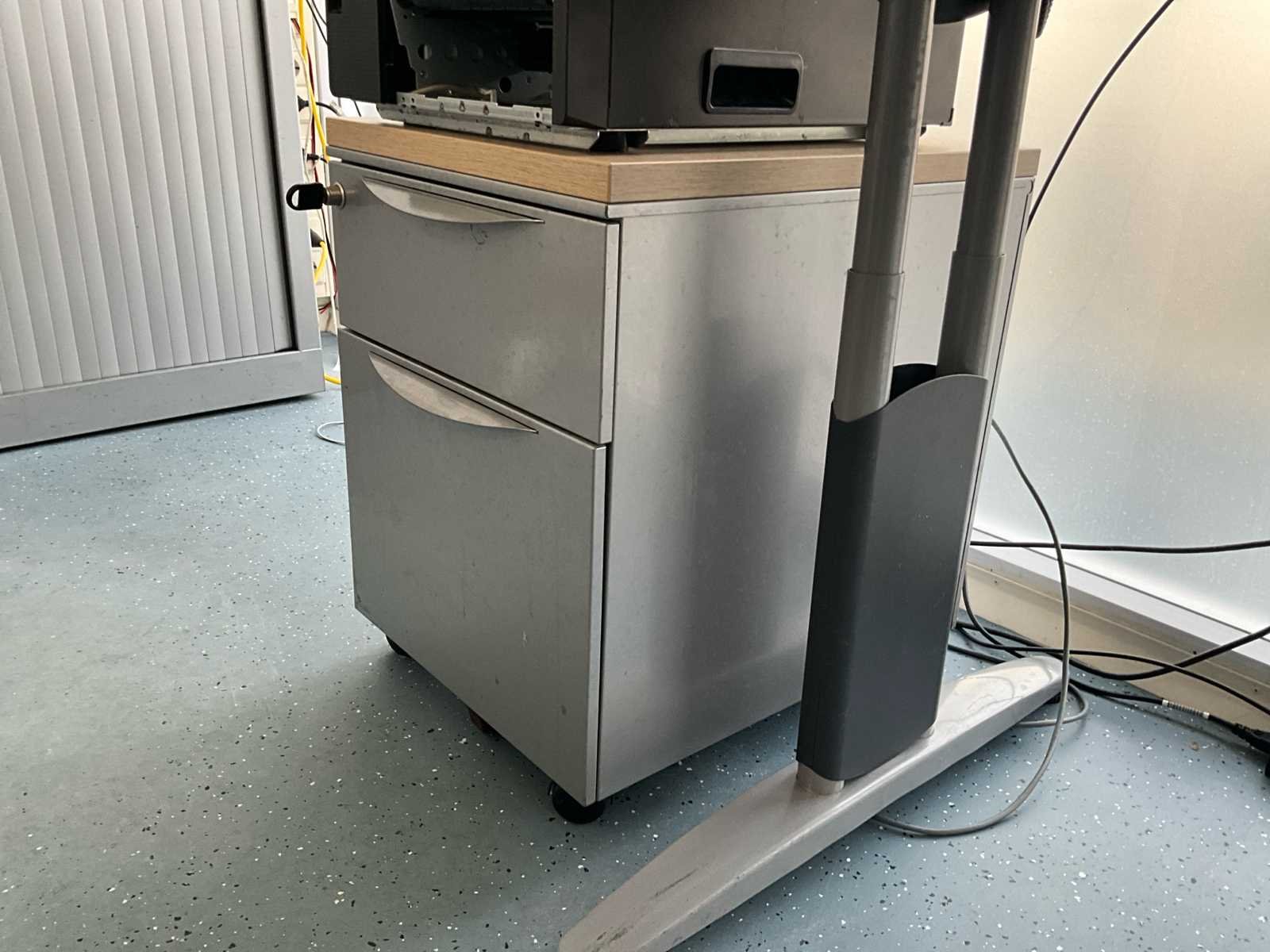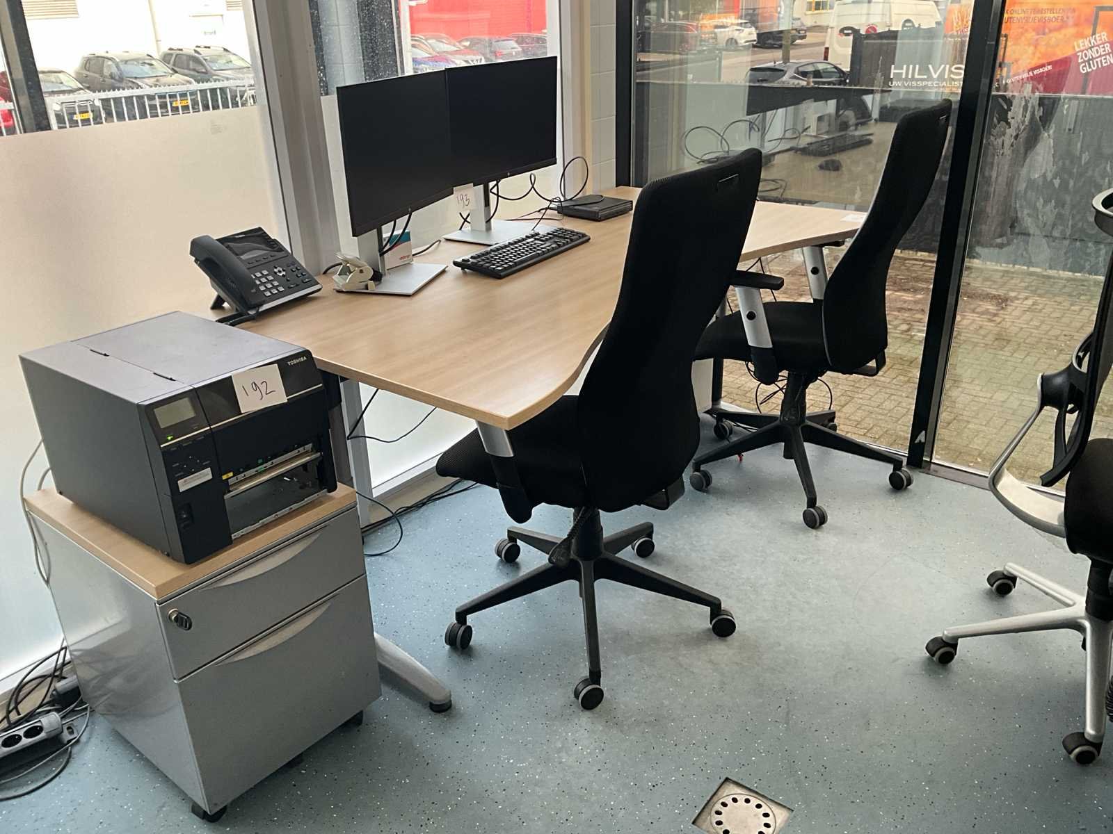 1 tafel, 1 kast en 2 stoel Zonder IT-installatie en Toshiba labelprinter Bureauformaat : 1000x1800x820mm 1 x table, 1 x cabinet , 2 x chair Without IT set-up and Toshiba label printer Size desk : 1000x1800x820mm