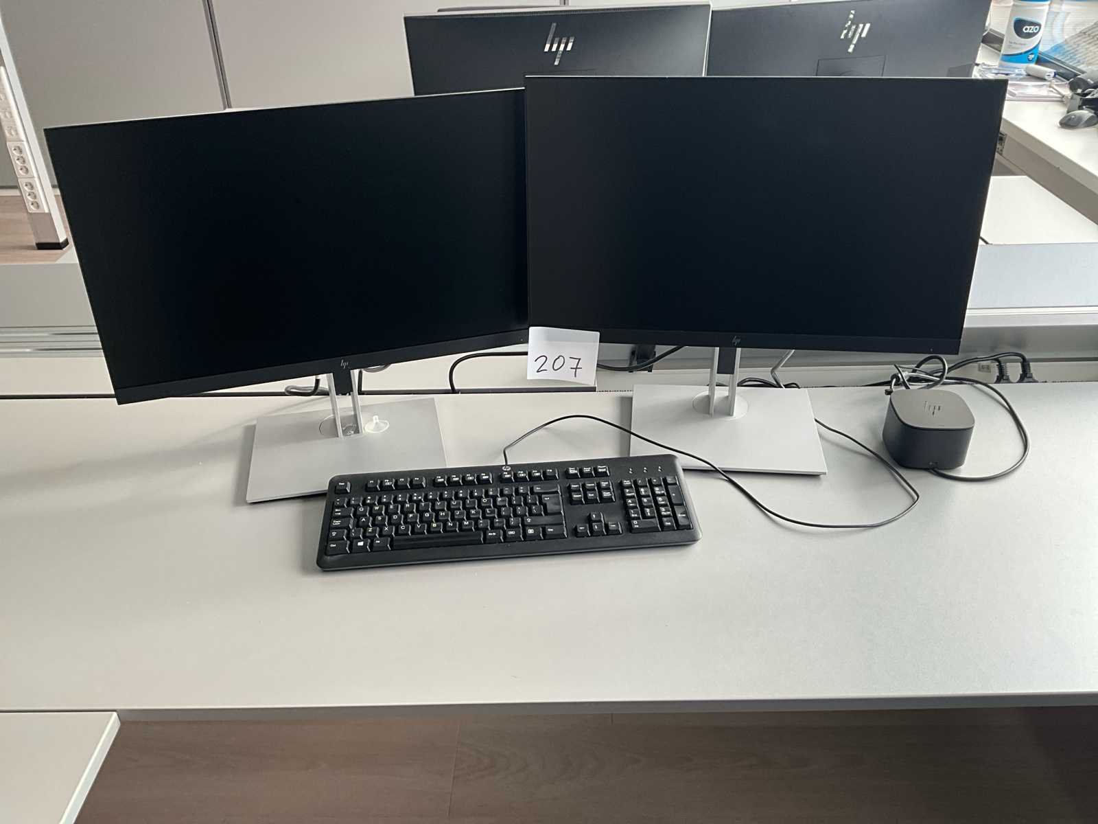 2 x monitor, 1 x HP-computer, 1 x toetsenbord 2 x monitor, 1 x HP computer, 1 x keyboard