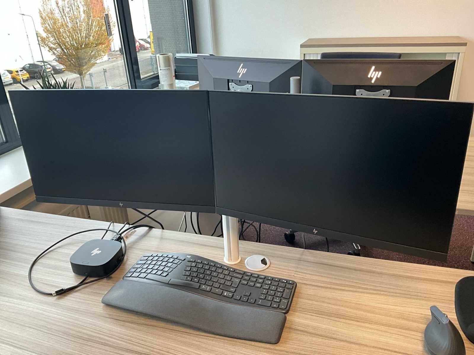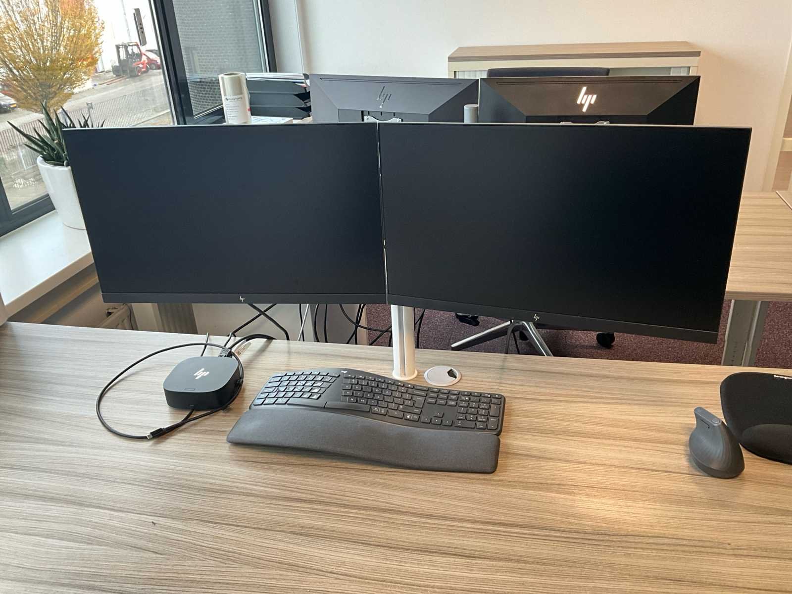 6 x monitor, 3 x HP-computer, 3 x toetsenbord 6 x monitor, 3 x HP computer, 3 x keyboard