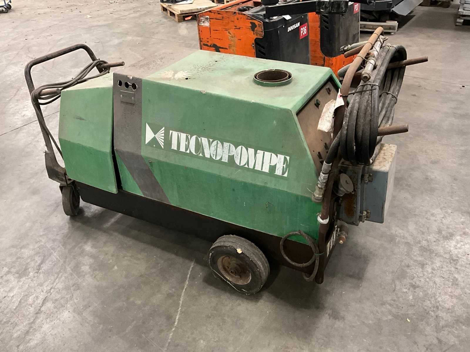 Met slang en spuitlans Merk: Tecnopompe Dieselgestookt: true Mobiel: true Aansluiting: 400V Totale afmeting L: 2000mm Totale afmeting Breedte: 900mm Totale afmeting Hoogte: 1000mm