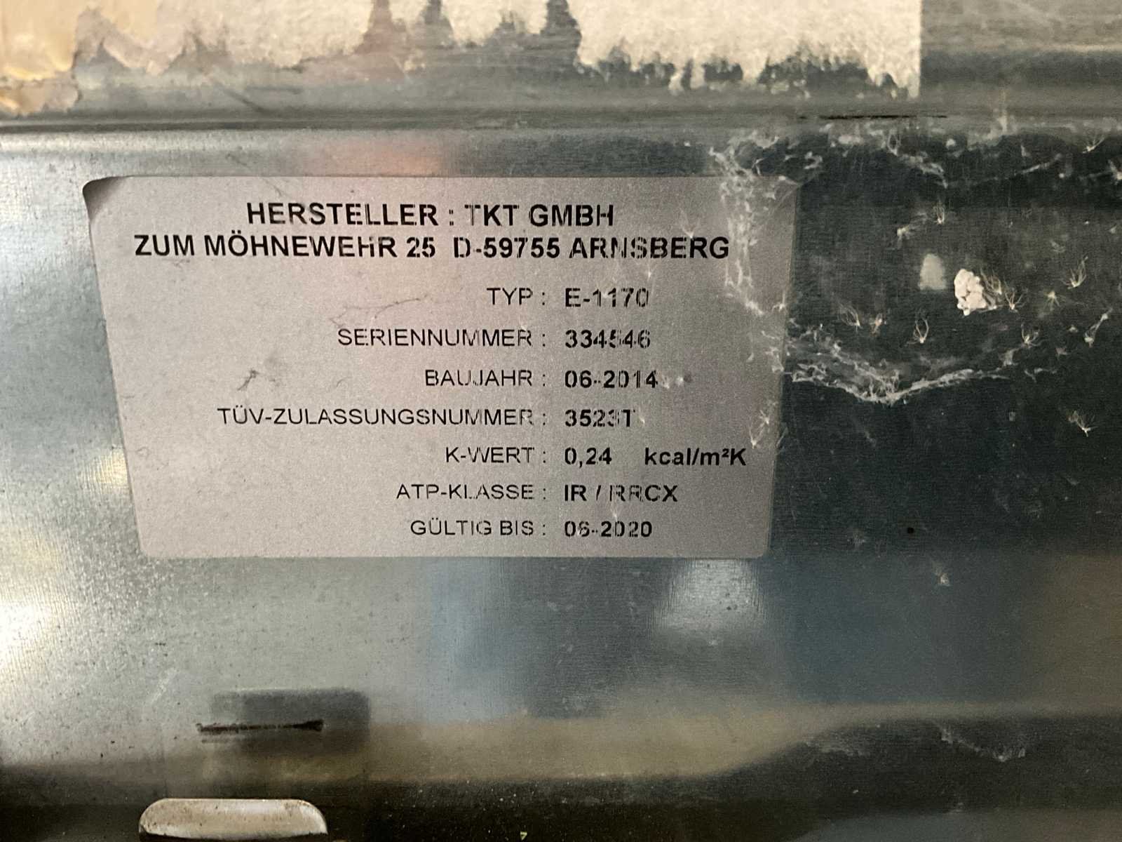 Met digitale temperatuurmeter op buitenzijde ( batterij leeg ), koelelementhouder, afmeting binnenzijde 1020x630x1830 mm Merk: TKT Type: E-117-C Totale afmeting L: 1200mm Totale afmeting Breedte: 800mm Totale afmeting Hoogte: 2140mm