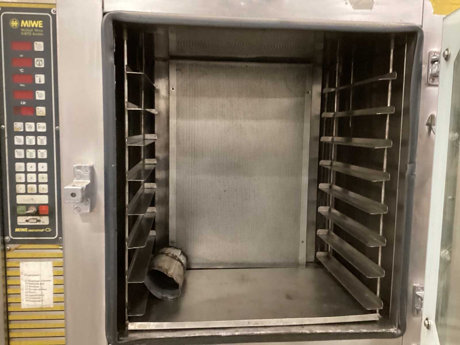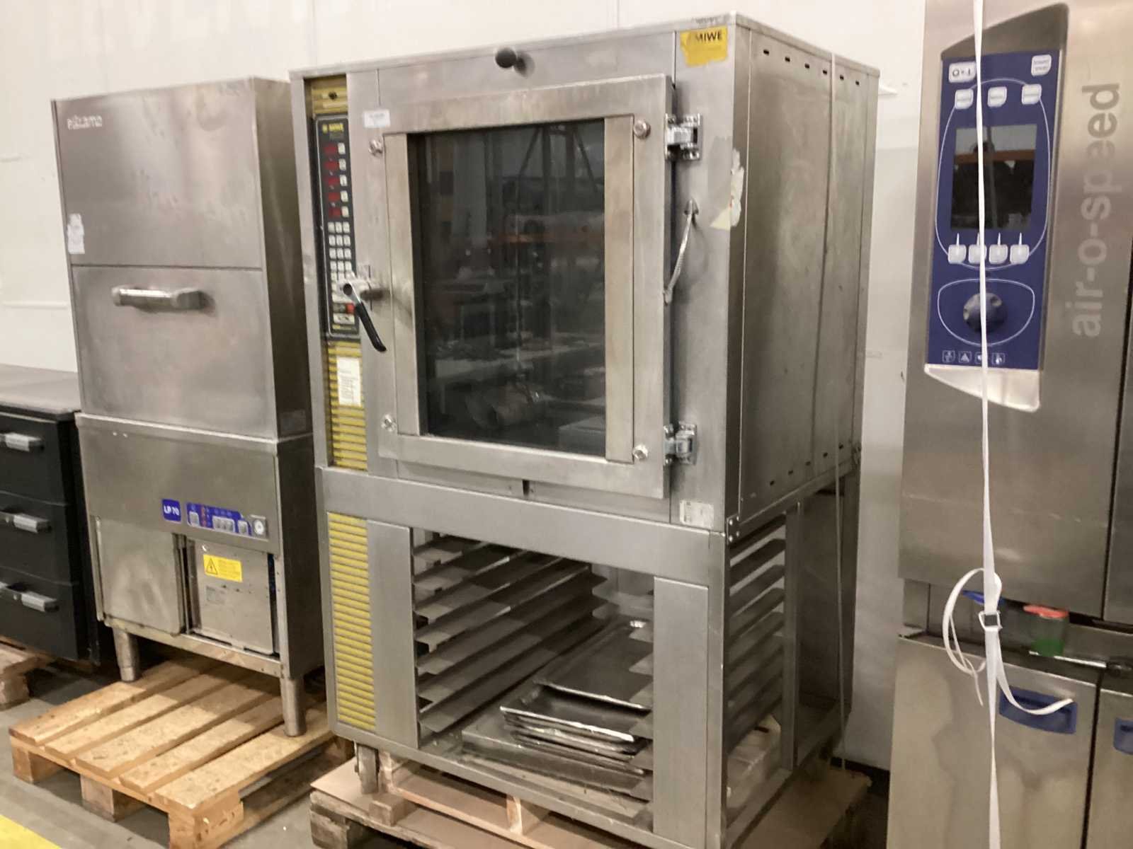 Voorzien 8 niveaus, diverse roosters en onderkast met mobiel onderstel Merk: Miwe Type: Aeromat,CS, Rvs: true Aansluiting: 380V Totale afmeting L: 78mm Totale afmeting Breedte: 105mm Totale afmeting Hoogte: 172mm