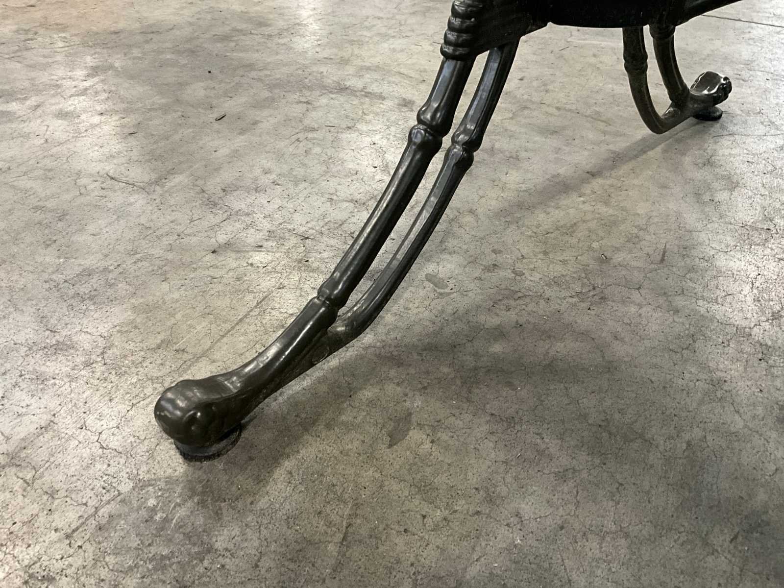 Voorzien van gietijzeren frame en teakhouten bovenblad, Let op het betreft gebruikt tuinmeubilair met verschillende gebruikerssporen, foto is van een voorbeeldtafel er kan dus minimaal verschil zijn tussen verschillende tafels Lengte: 160cm Breedte: 78cm Hoogte: 77cm