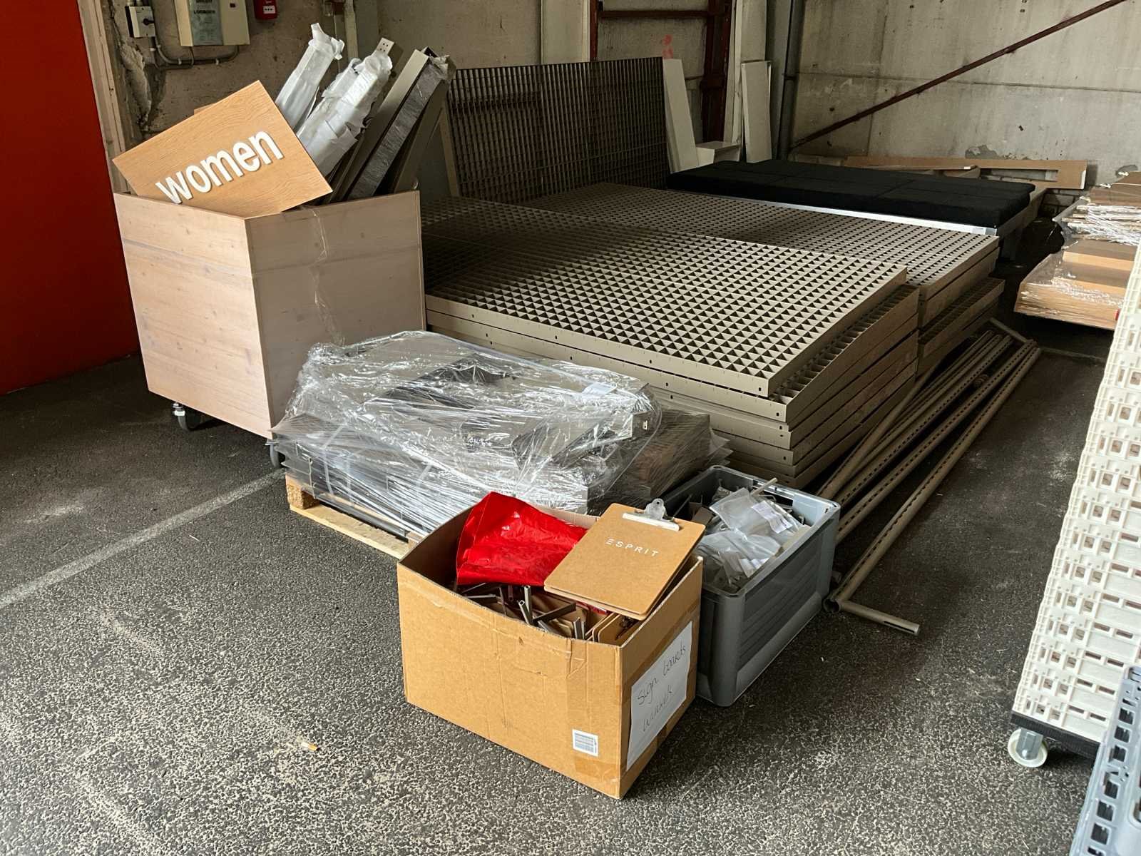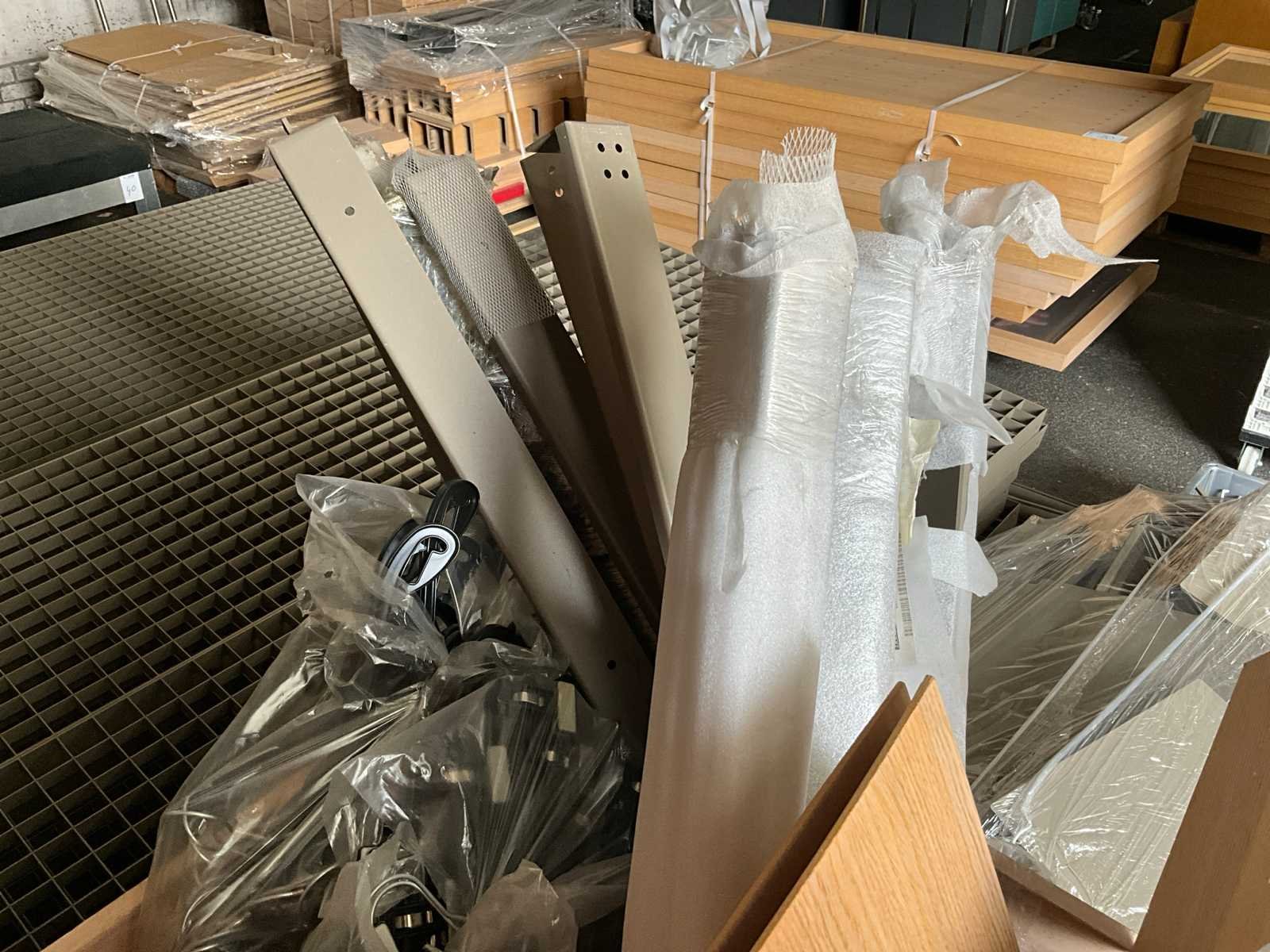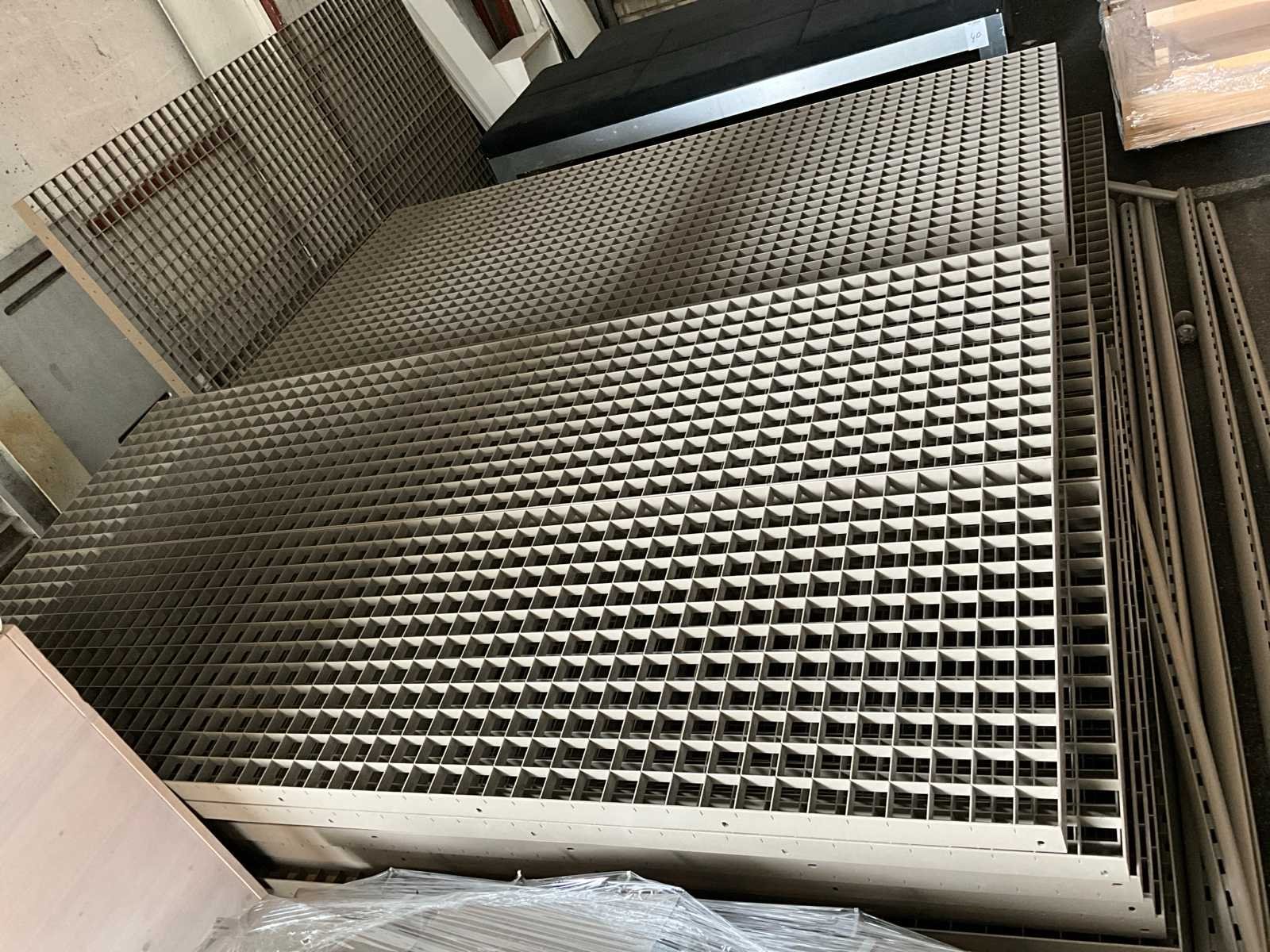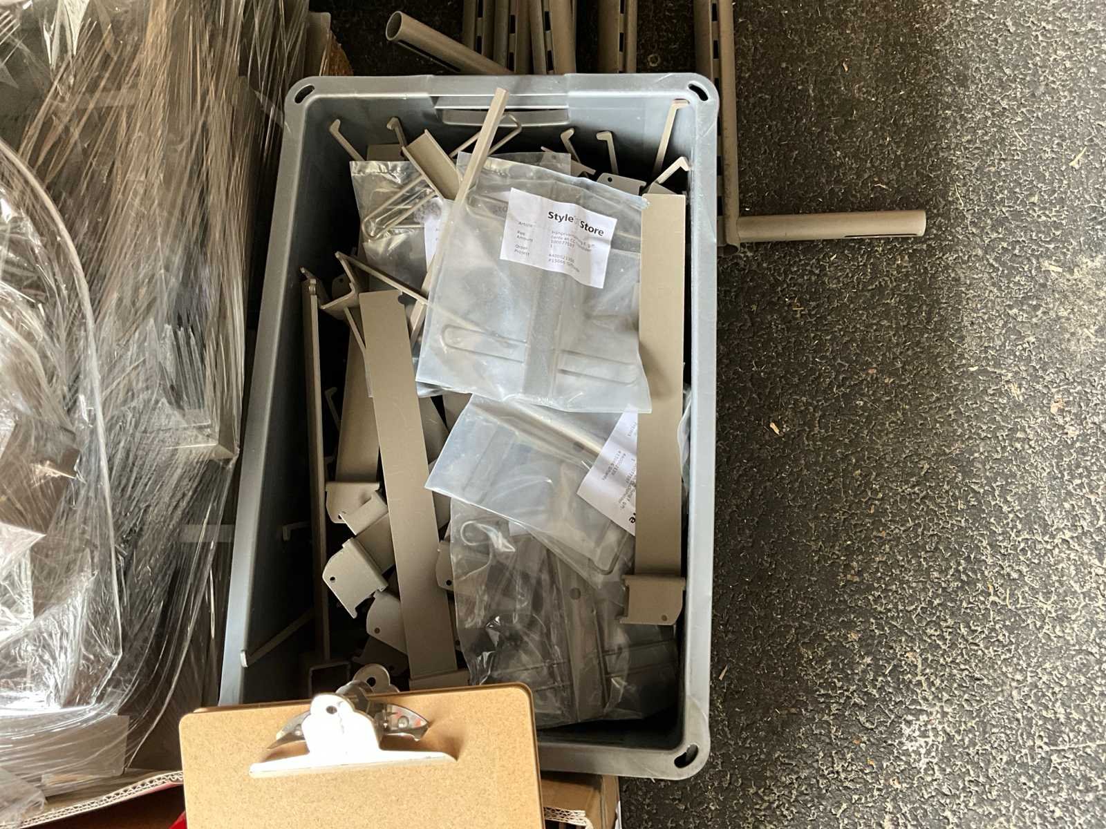 Waaronder 15 stuks gekoppelde stalen wandroosters kleur taupe afmeting 245x121 cm, koppelbeugels en partij toebehoren Merk: Style’n’store