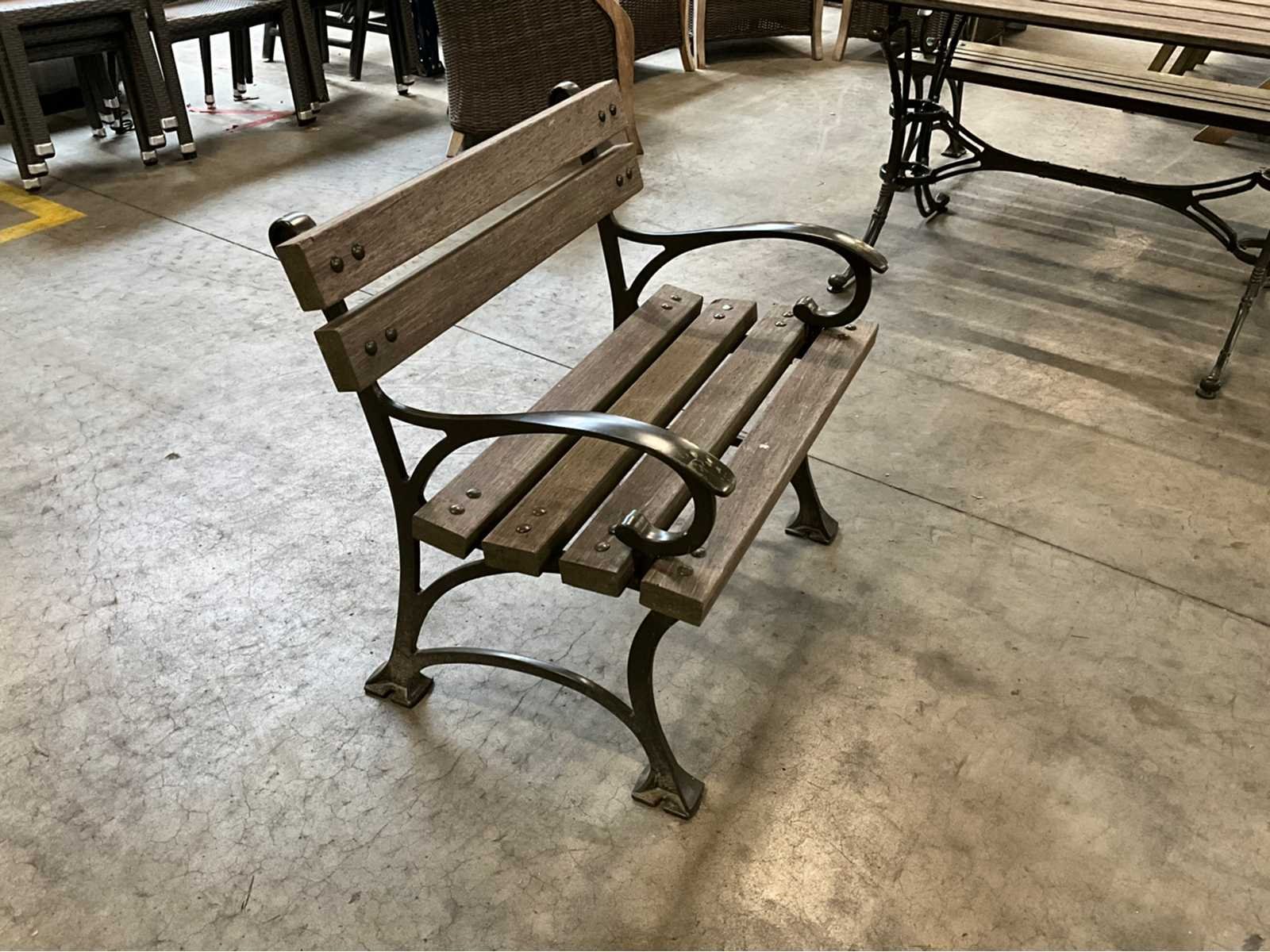Voorzien van gietijzeren frame en teakhouten zit en rug gedeelte, Let op het betreft gebruikt tuinmeubilair met verschillende gebruikerssporen, foto is van een voorbeeldbank er kan dus minimaal verschil zijn tussen verschillende banken. Product type: Klein Lengte: 80cm Hoogte: 78cm Zithoogte: 43 Diepte: 60 Materiaal: Staal/Hout