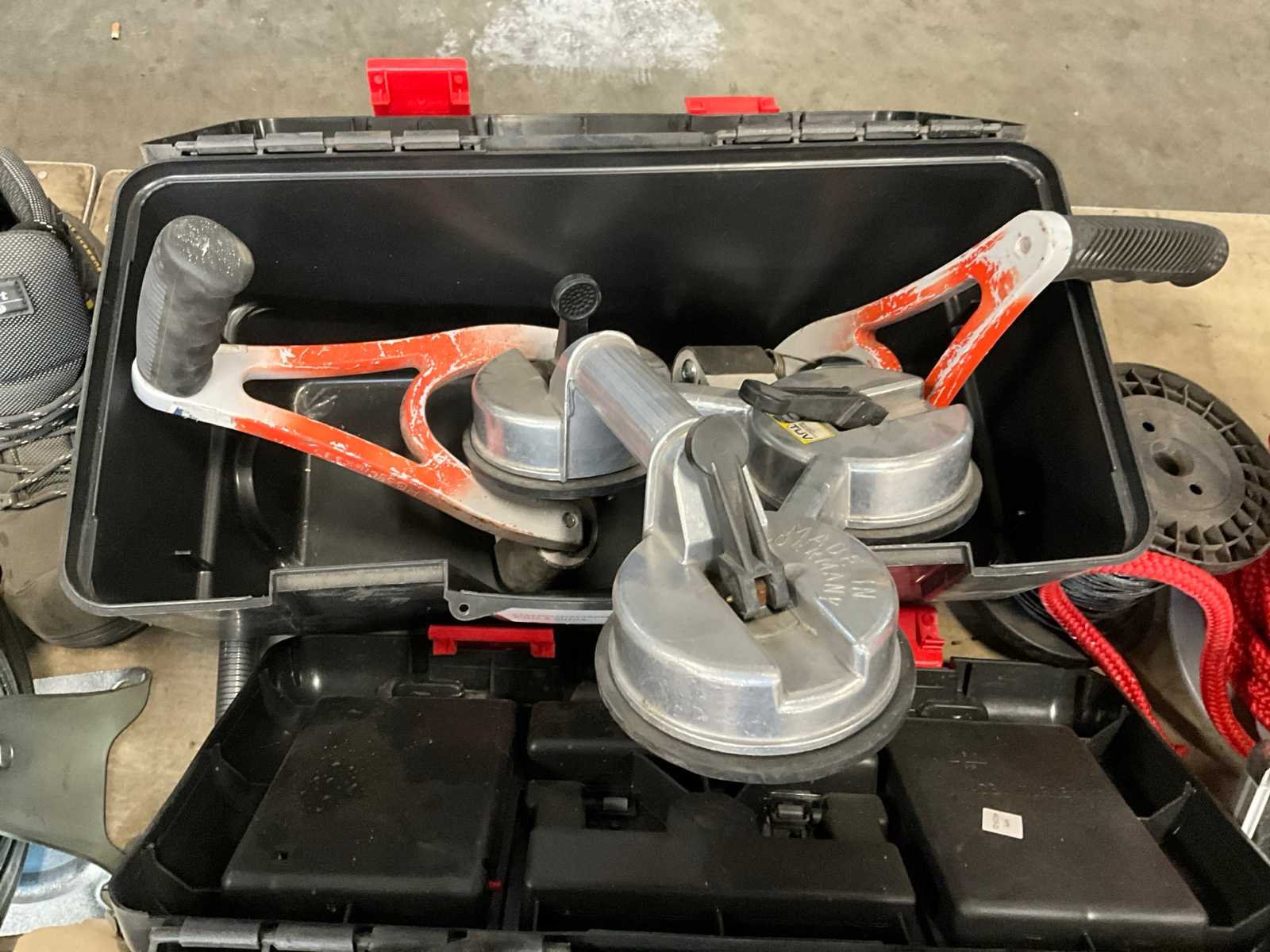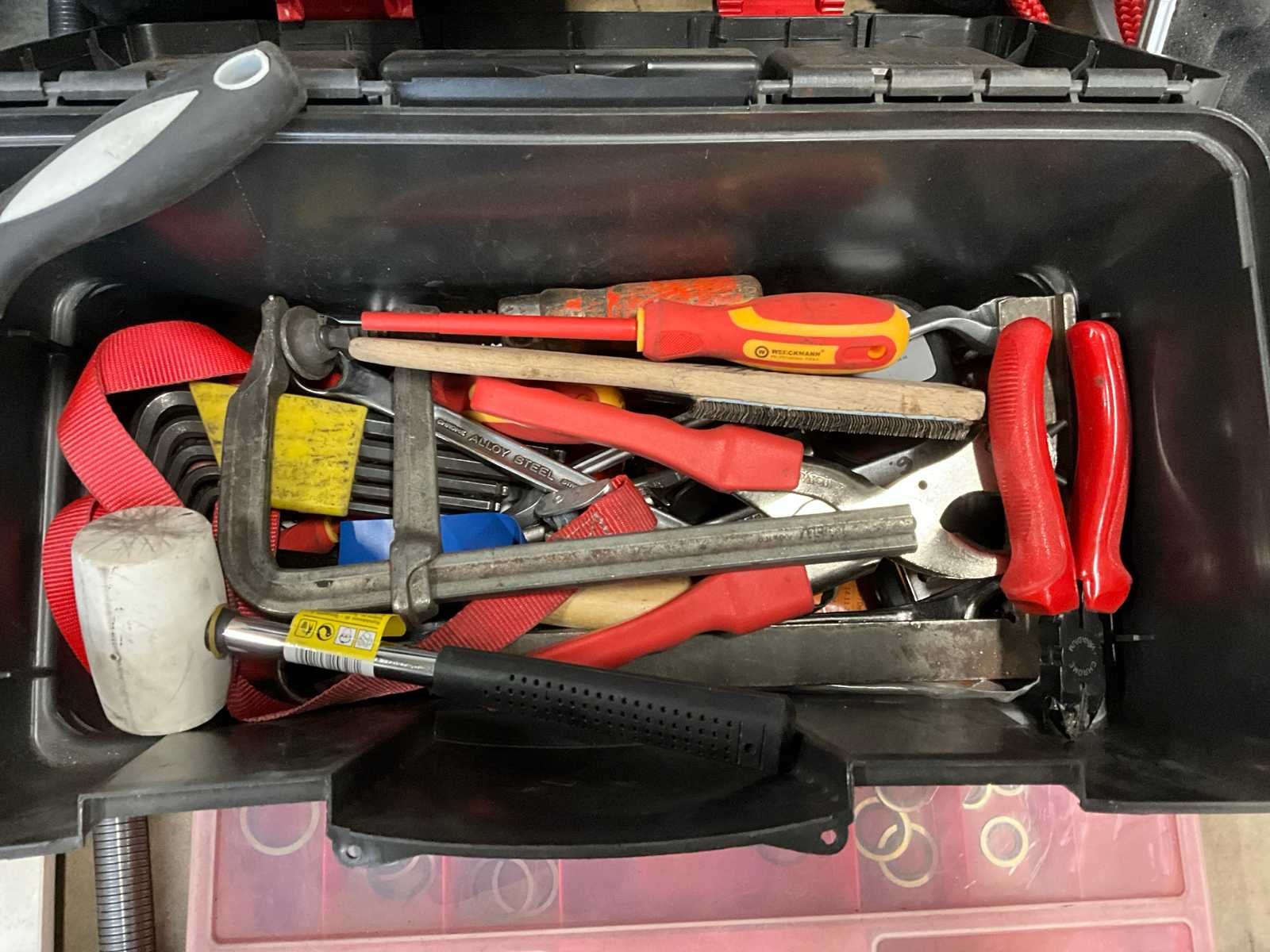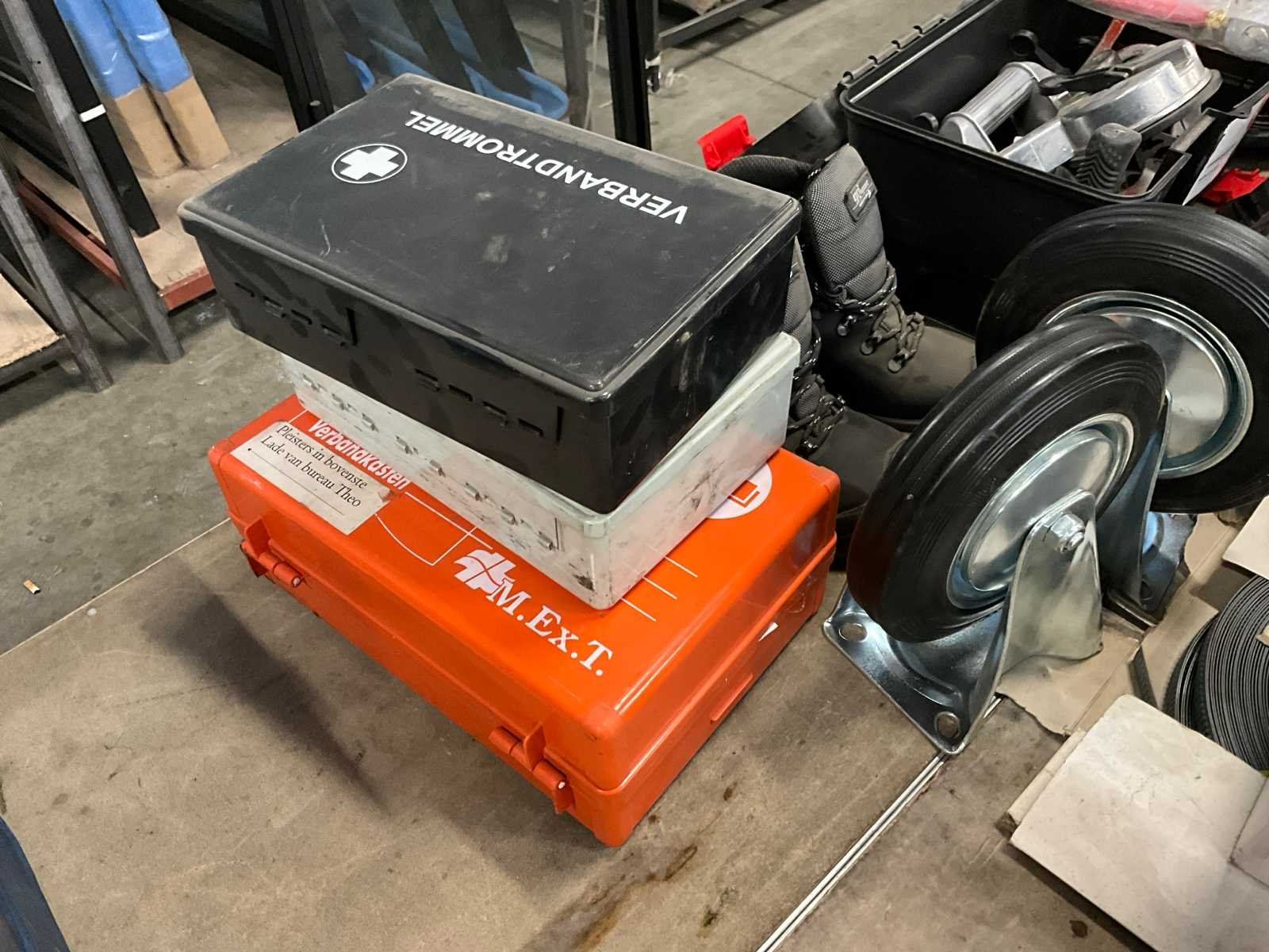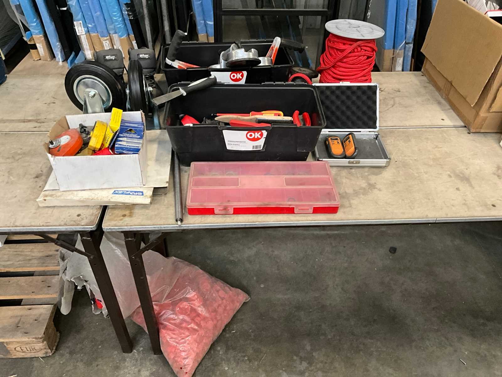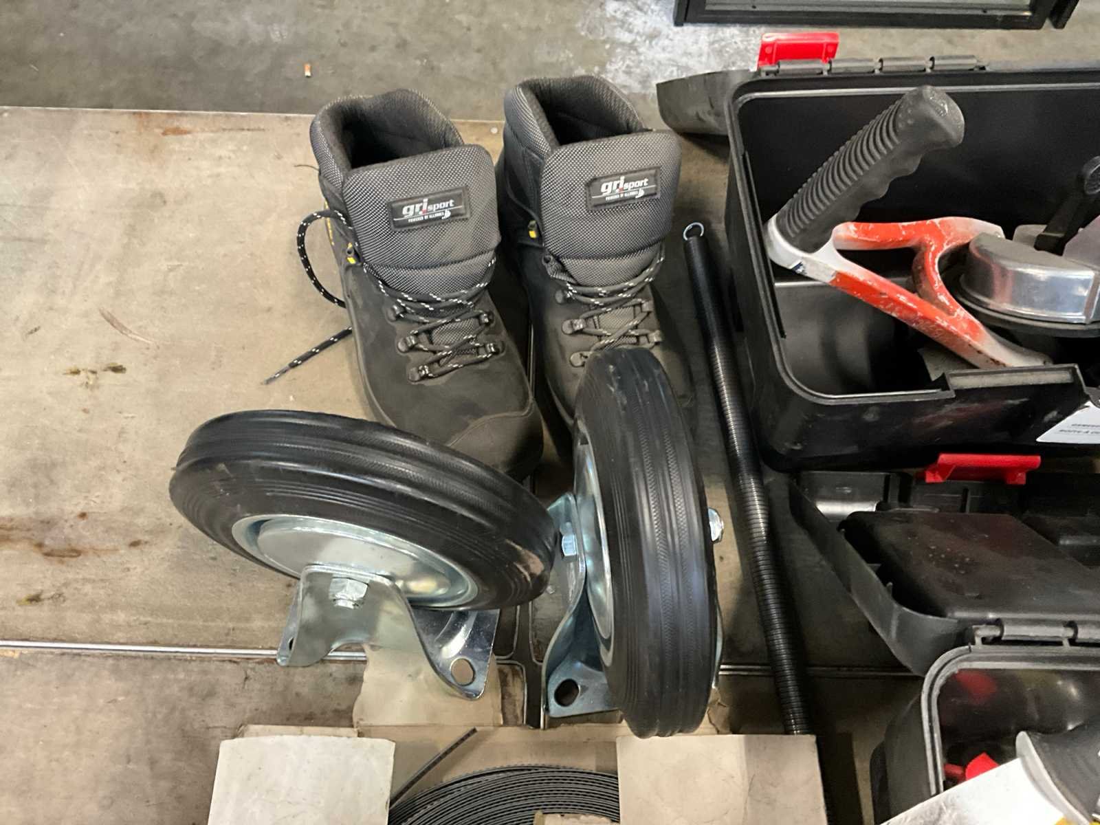Waaronder gereedschapskoffer met diverse inhoud, werkschoenen, glasdragers en divers