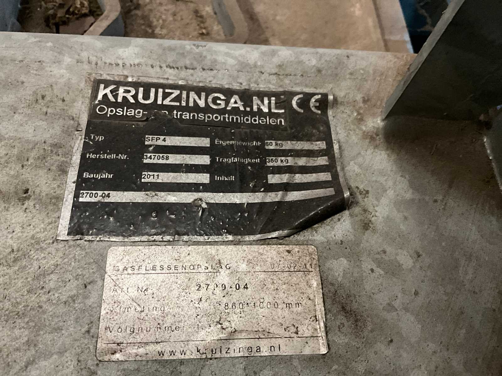 Geschikt voor 4 flessen, met reduceerventielen en heftruckvorkslede Merk: Kruizinga Type: SFP4 Totale afmeting L: 500mm Totale afmeting Breedte: 870mm Totale afmeting Hoogte: 2100mm