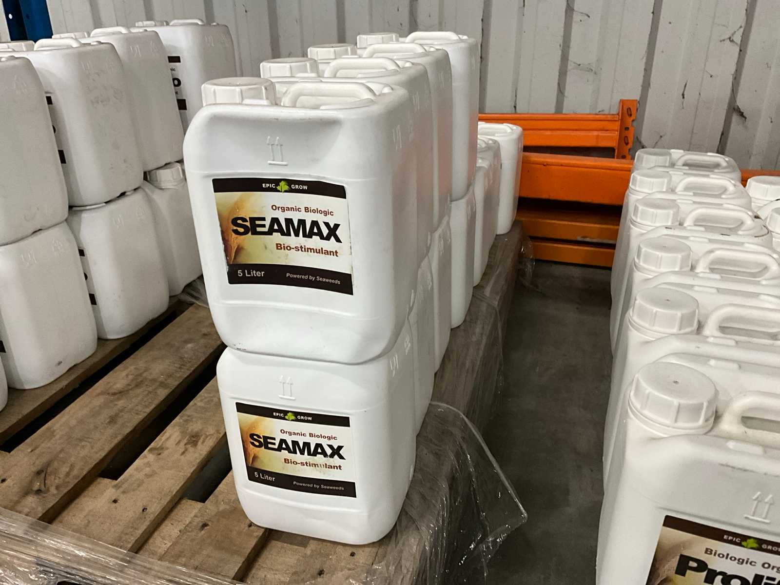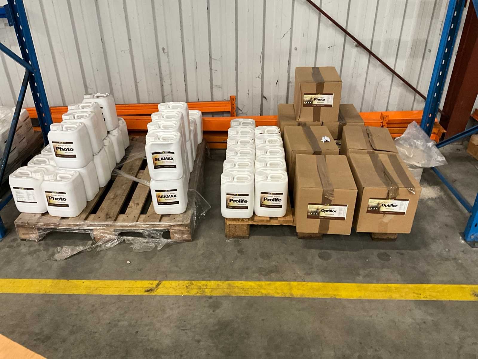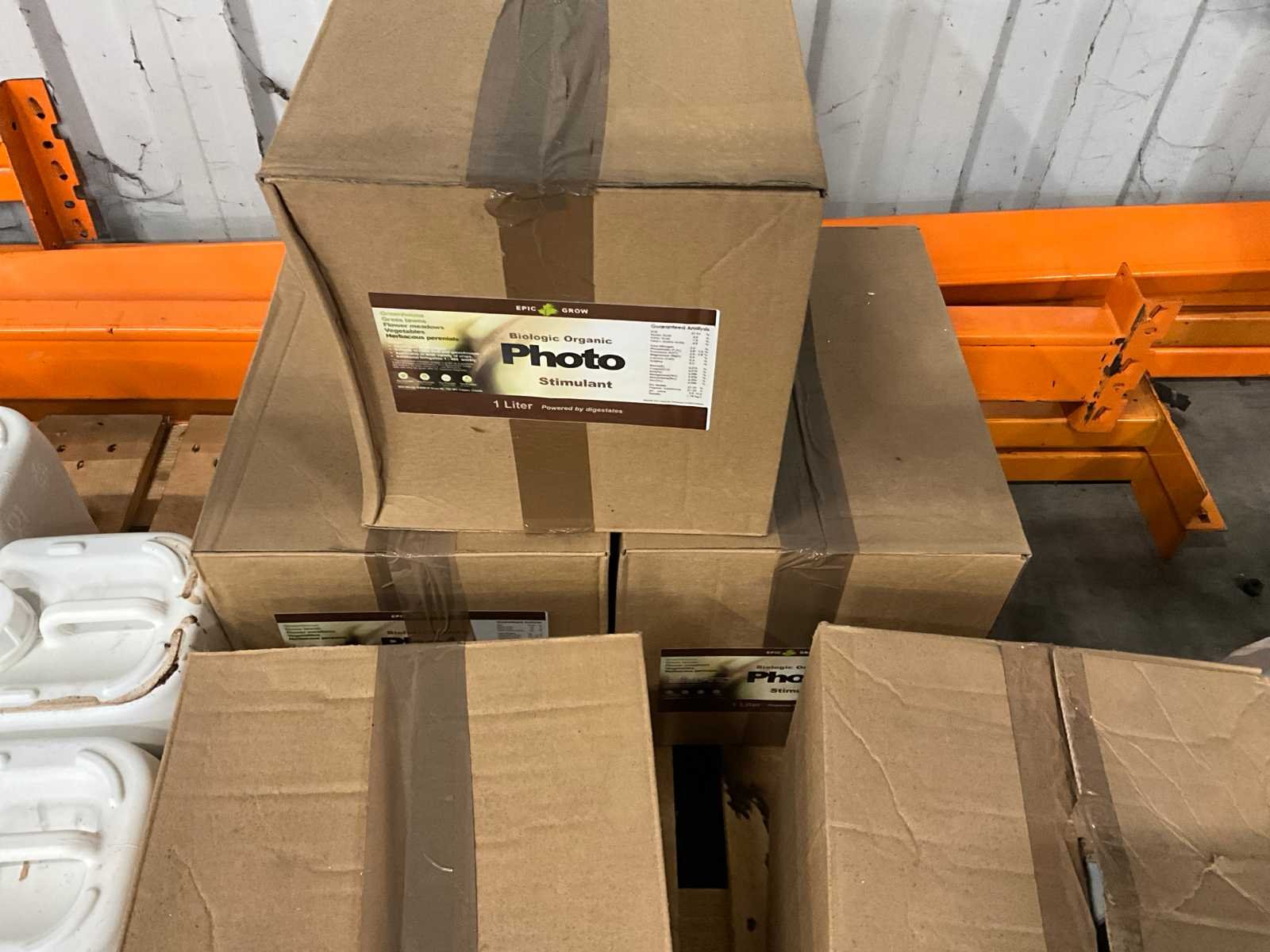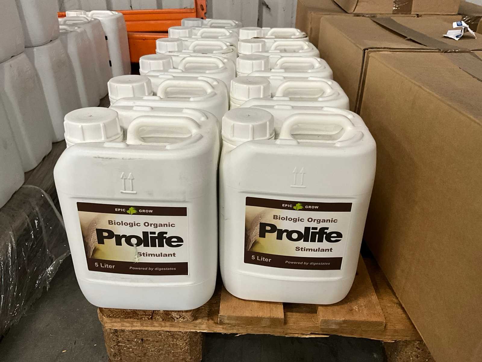 Waaronder 3 dozen Photo stimulant, 2 dozen Optiflor stimulant, 1 doos Floral stimulant, 1 doos st ohm 700, 11x5 ltr Prolife stimulant, 11x5Ltr Seamax bio stimulant, 16x 5 ltr Photo stimulant op 2 pallets Merk: Epic Grow Product type: Vloeibaar