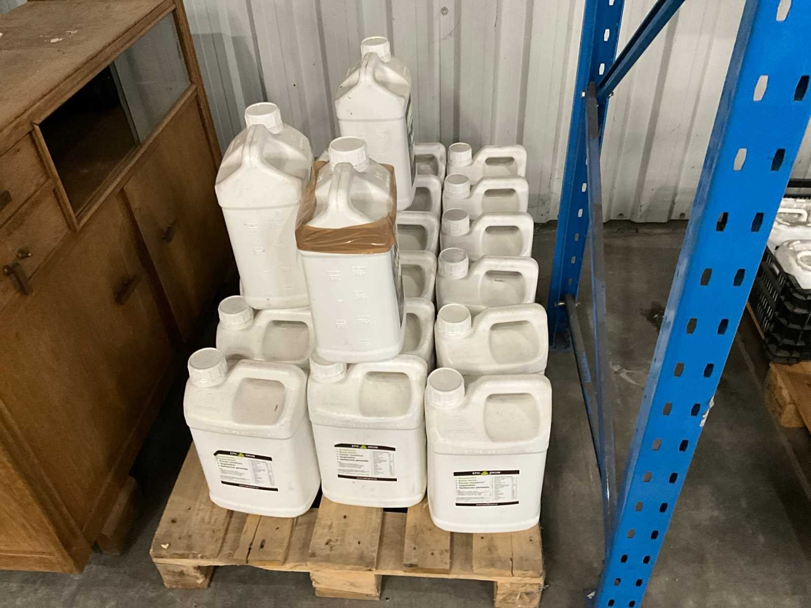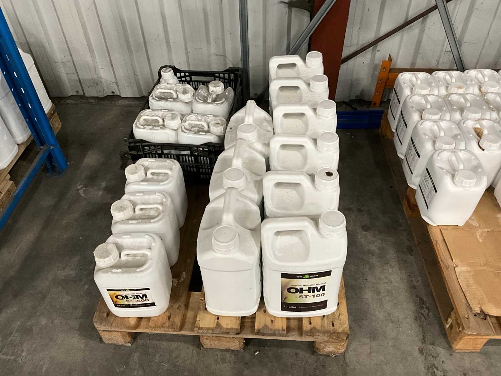 Waaronder 22x5Ltr st Ohm 400, 9x10 Ltr st Ohm 100, 21x10Ltr st Ohm 800 en divers in krat op 3 pallets Merk: Epic Grow Product type: Vloeibaar