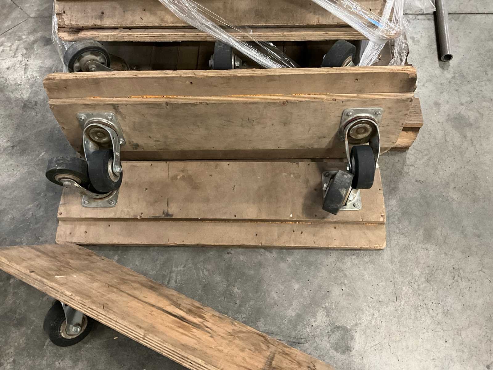Voorzien van houten blad en 2 zwenkwielen, totaal circa 12 stuks op 1 pallet Totale afmeting L: 1000mm Totale afmeting Breedte: 350mm