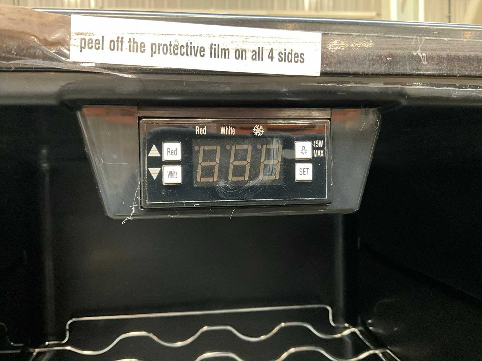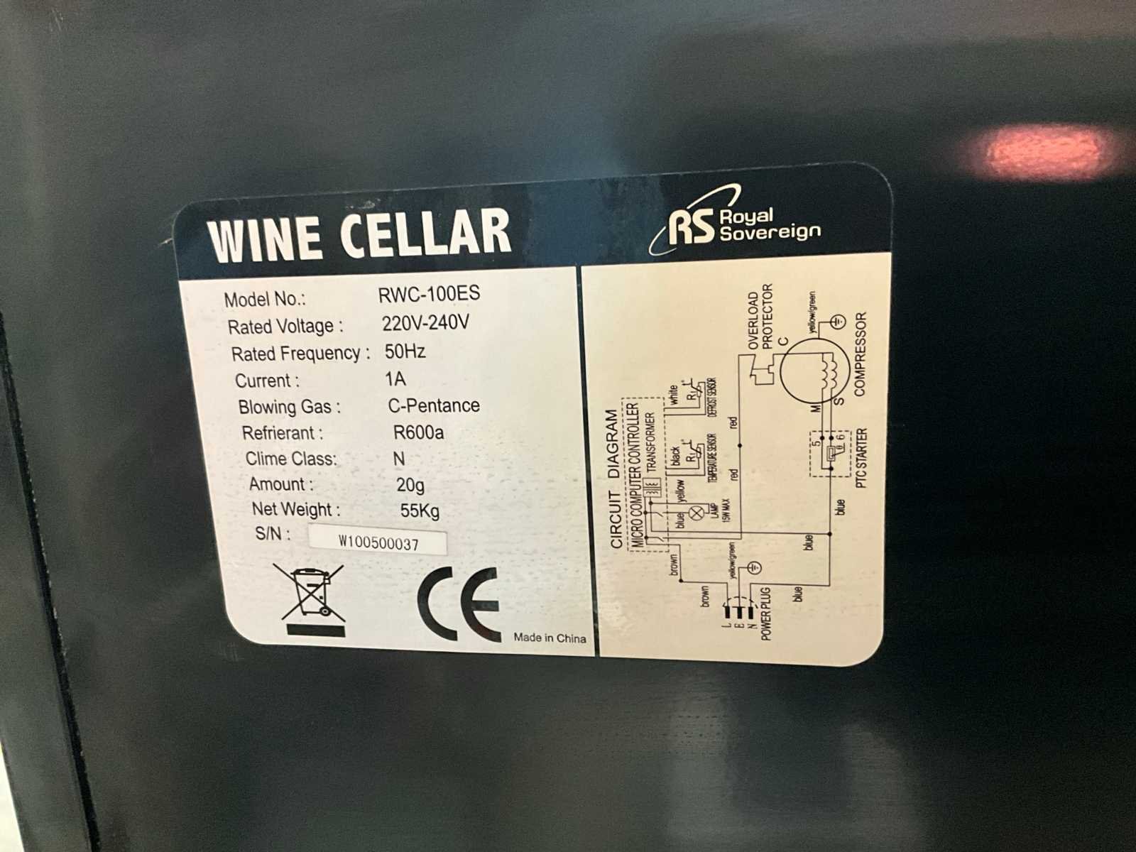Ongebruikt Merk: Royal souvereign Type: RWC-100ES Capaciteit flessen: 34 Digitale uitlezing: true Eigen gewicht: 55kg Regelbare thermostaat: true Aansluiting: 220V Totale afmeting L: 57cm Totale afmeting Breedte: 58cm Totale afmeting Hoogte: 149cm