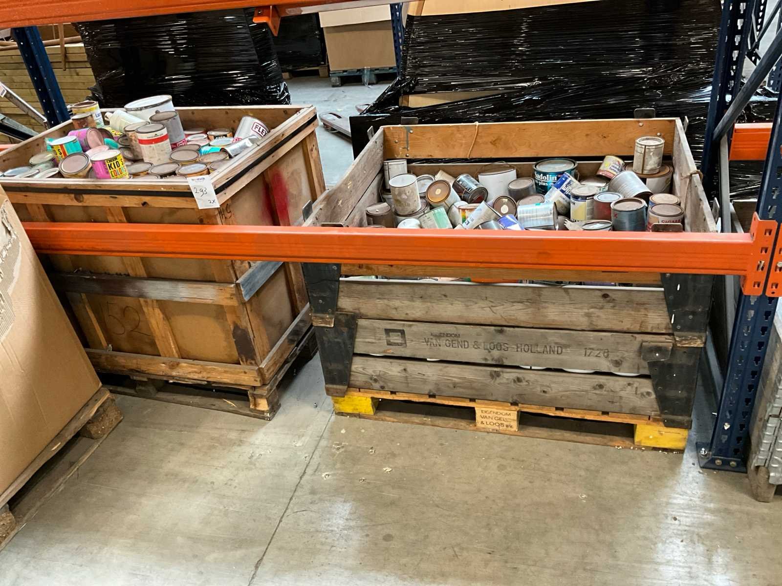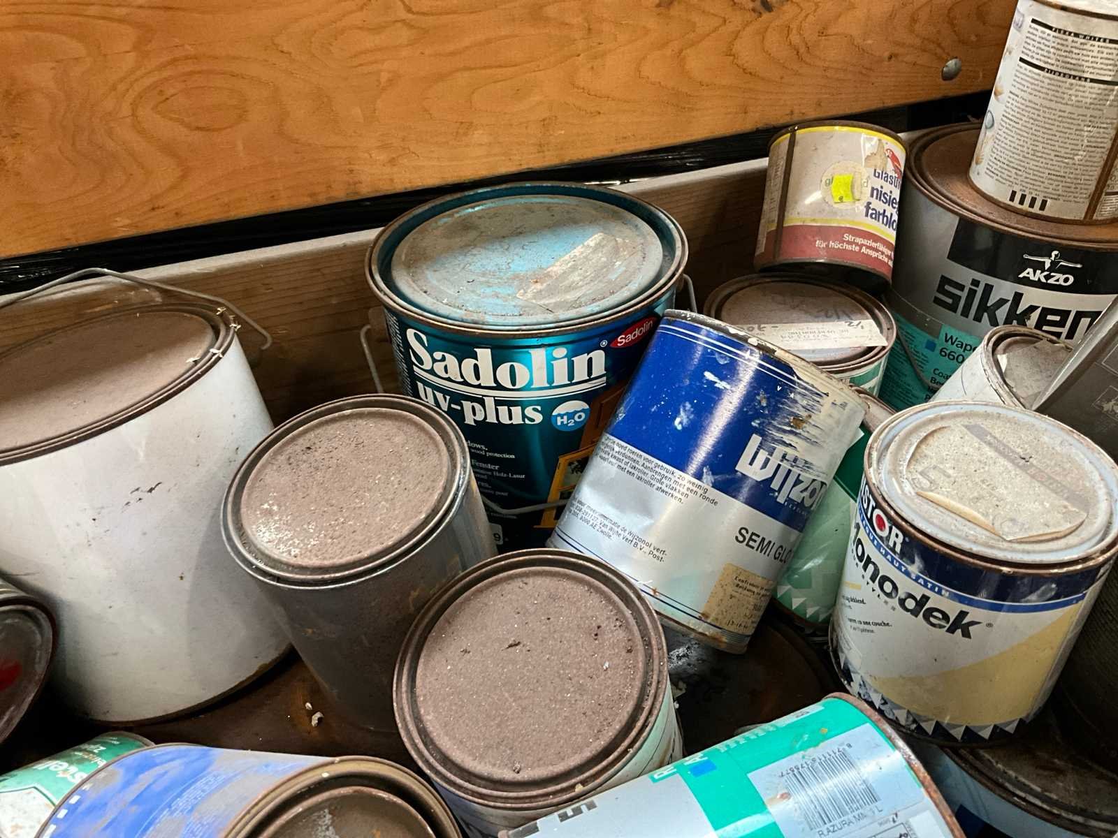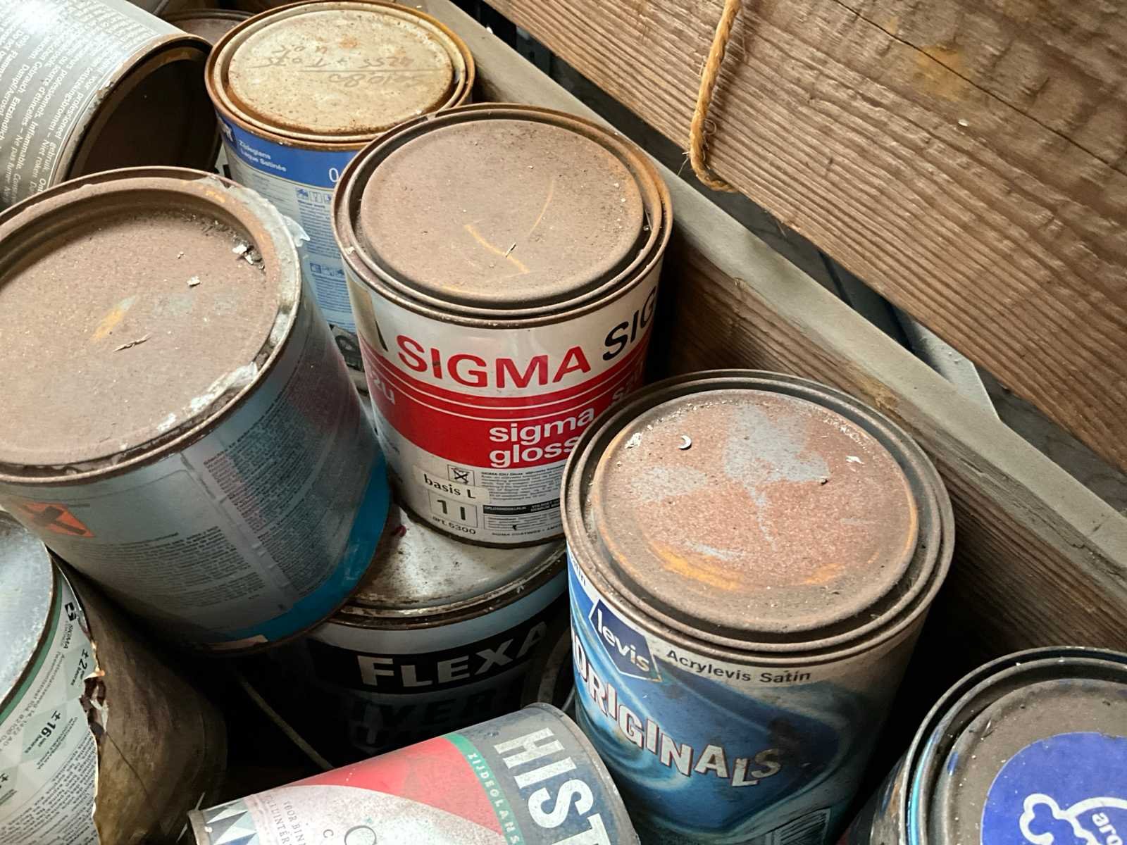 In verschillende kleuren, uitvoeringen en toepassingen, van de merken cetabever, sadolin, flexa, sigma, sikkens, wijzonol en divers in en met 3 palletboxen Kleur: Divers