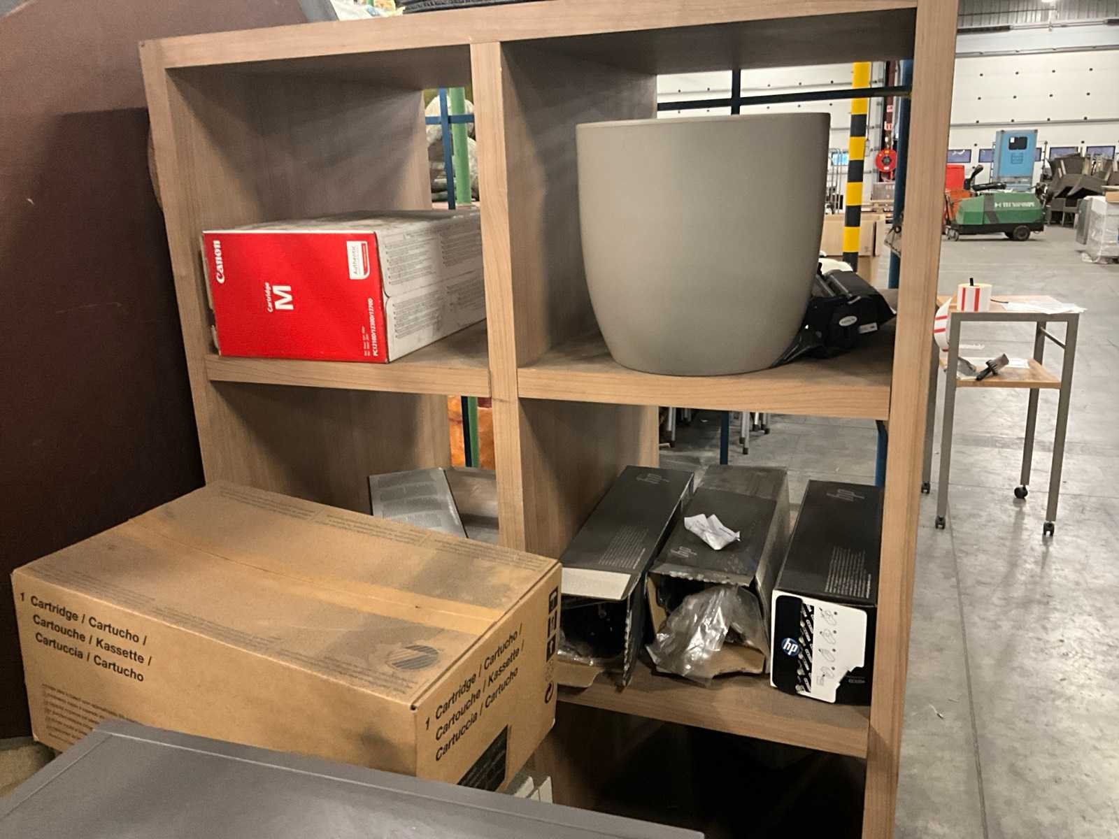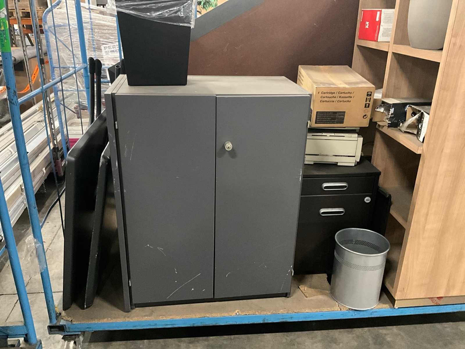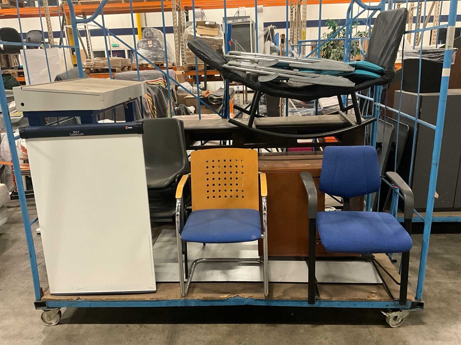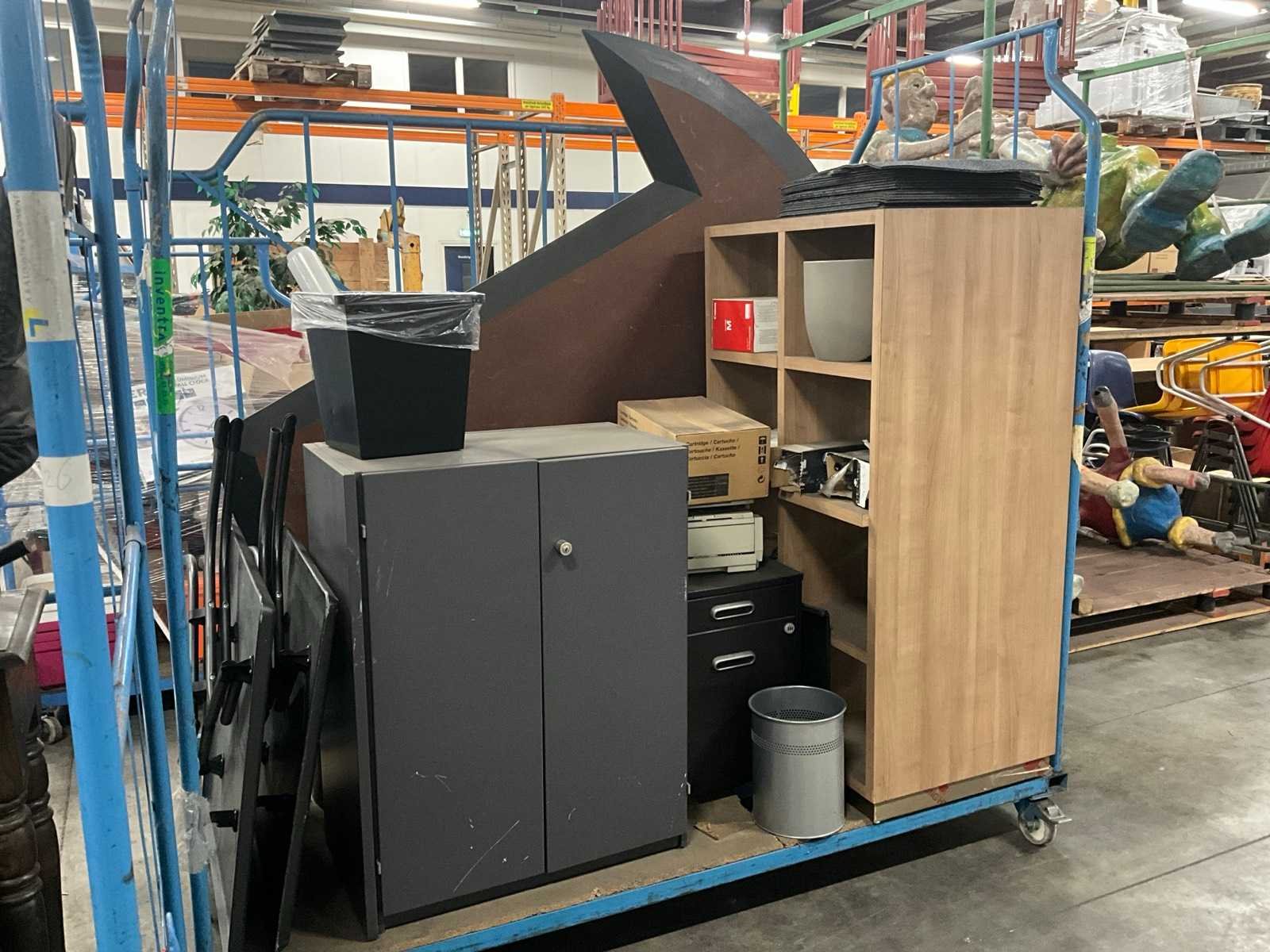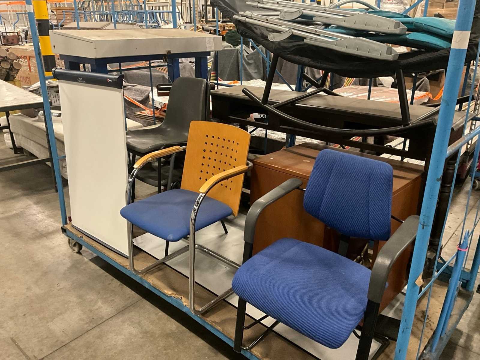 Waaronder vakkenkast, vergadertafel, stoelen, flipover en divers uit 2 meubelkarren