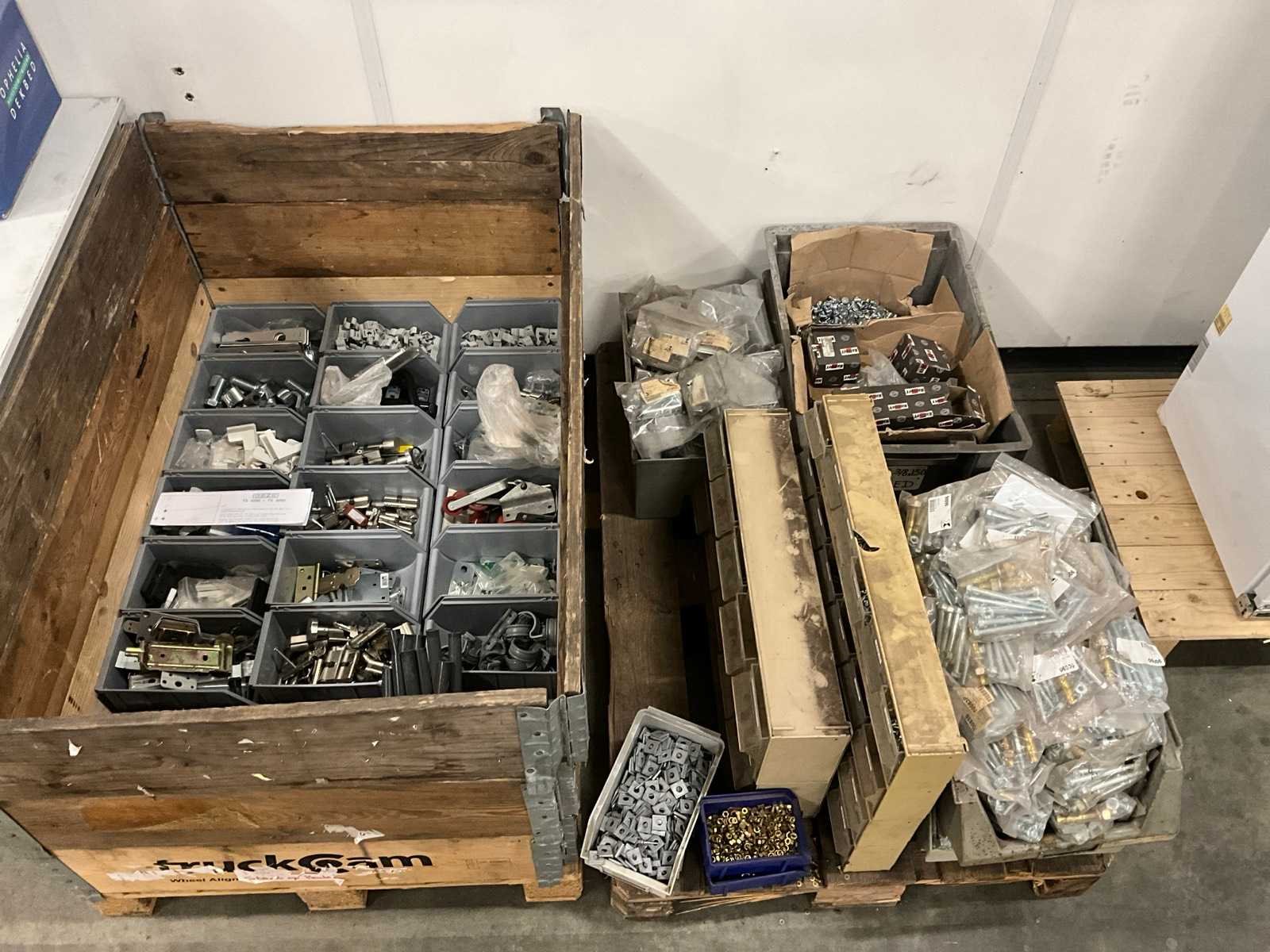 Waaronder bouten, leren, leidingbeugels, sloten en divers op 2 pallets